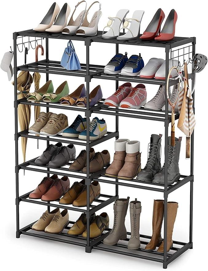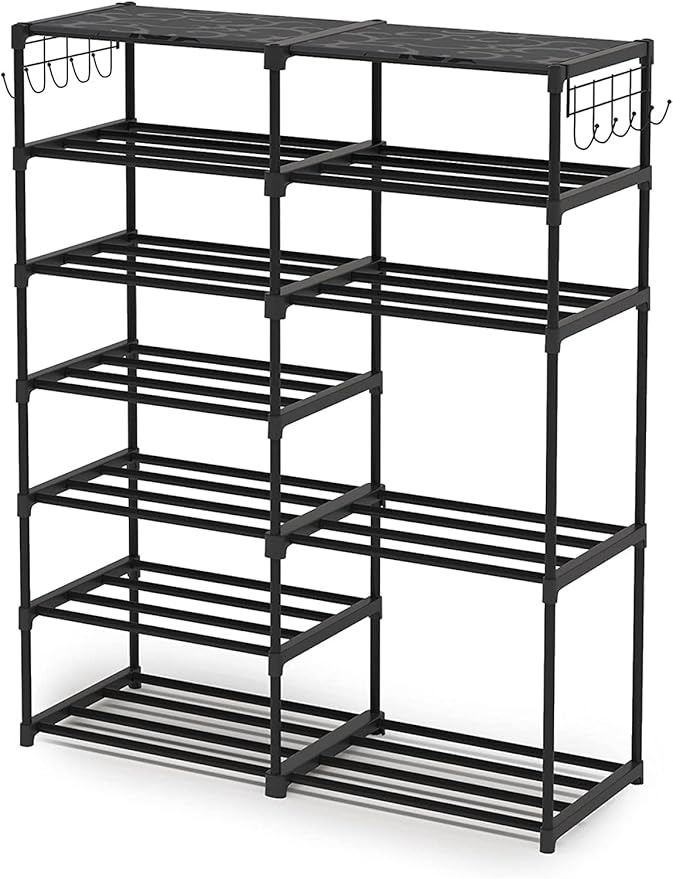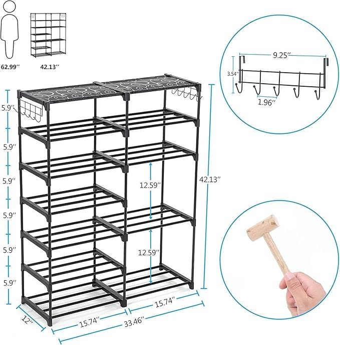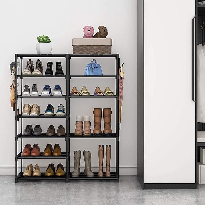 - 7 Tier Shoe Rack/Shoe Tower/Shoe Shelf Shoe Storage Organizer Unit; Durable Metal Shoe Rack; Holds 24-30 Pairs; Organizer Shelf Stackable Cabinet