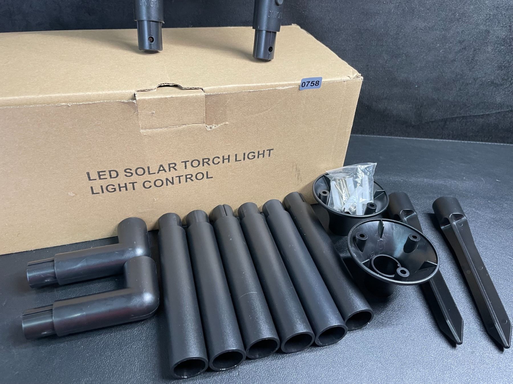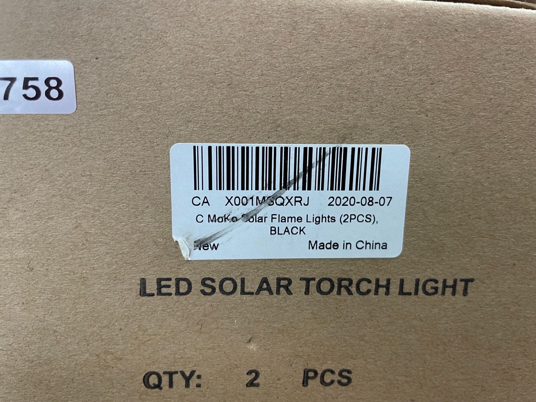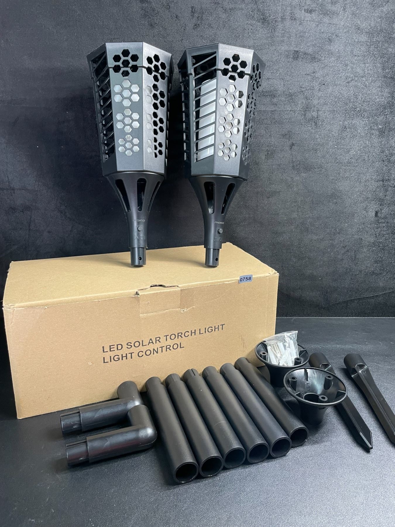 Lot 758 2-Pack LED Solar Flame Torchlights for Lawn/Garden - New in Box