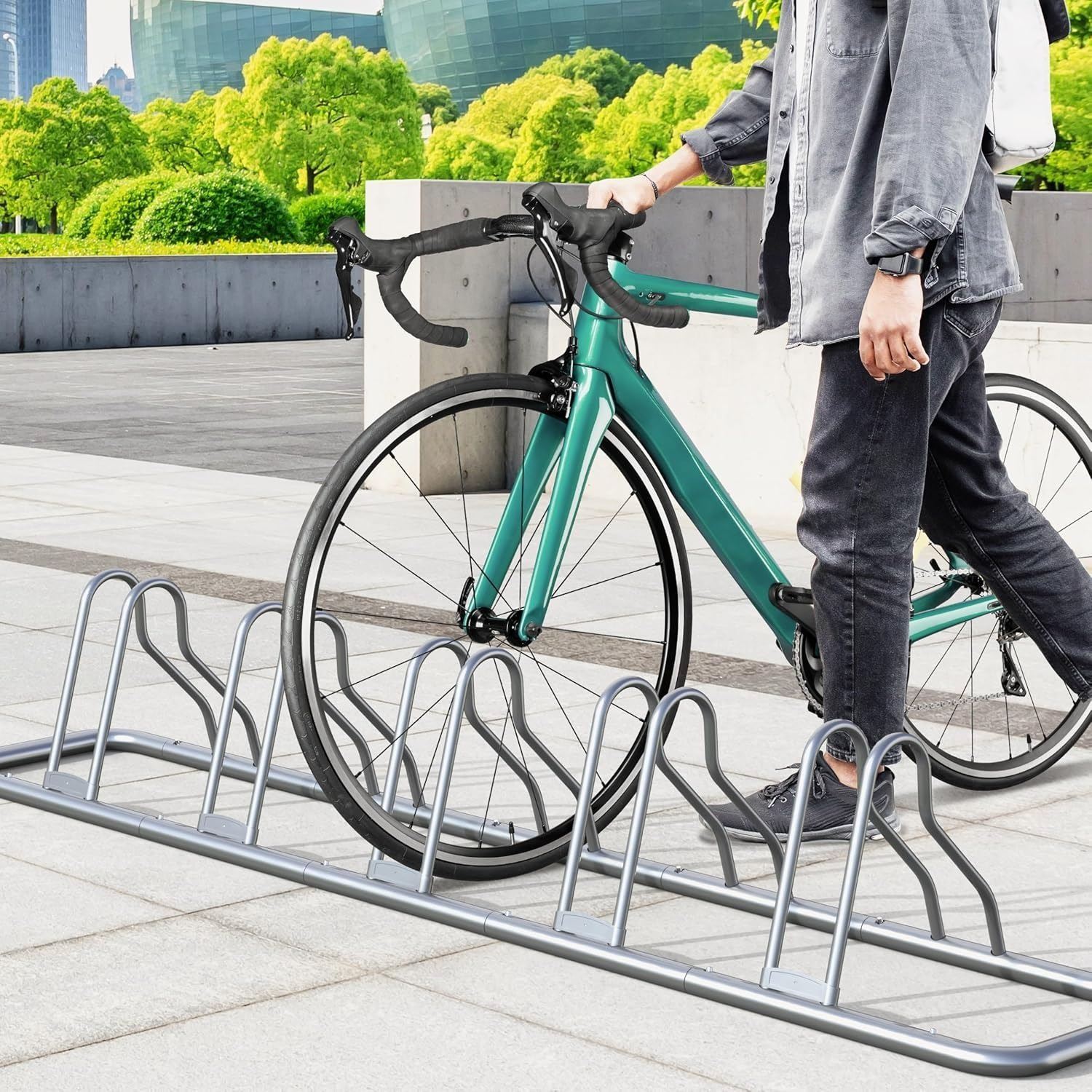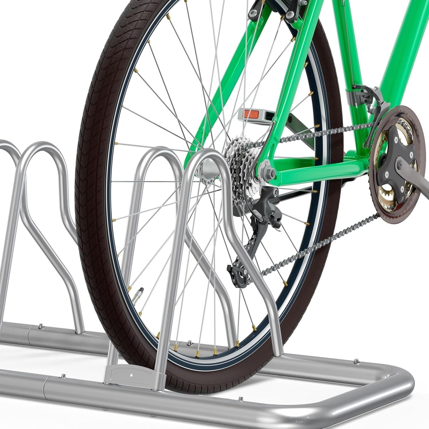 - Stable floor rack for holding up to 5 bicycles, good for 12" to 26" bikes.