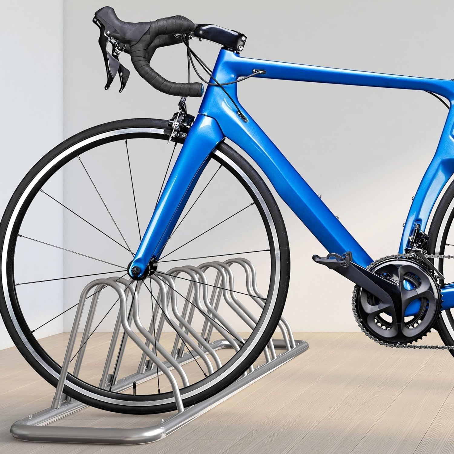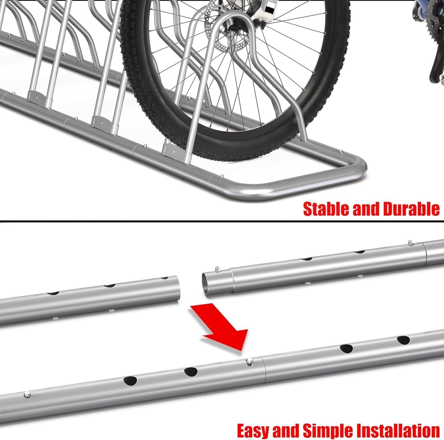 - Stable floor rack for holding up to 5 bicycles, good for 12" to 26" bikes.