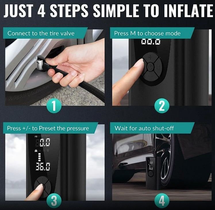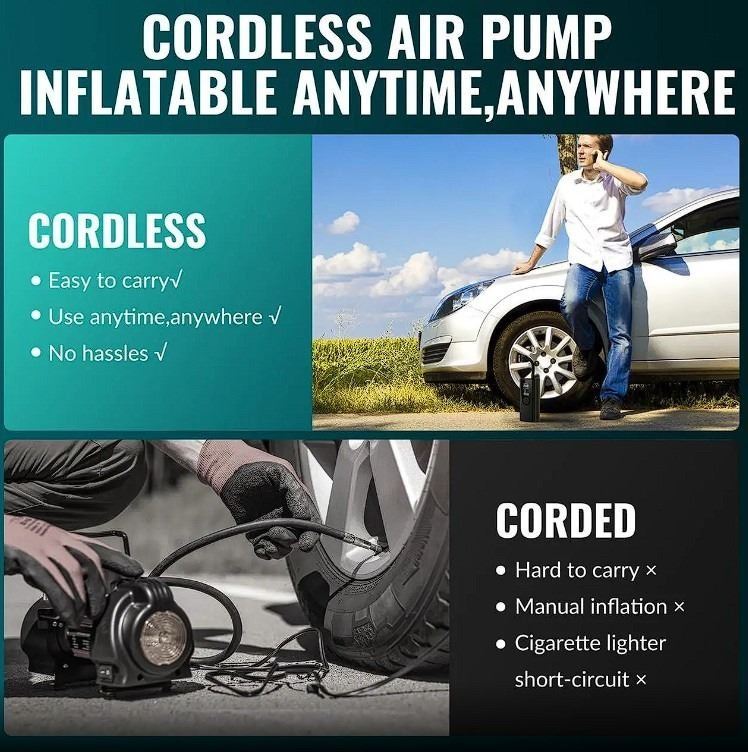 - Upgraded Tire Inflator Portable Air Compressor-180PSI Air Pump for Car Tires-Electric 3X Faster Tire Inflation-Cordless Tire Pump with Pressure Gauge for Car, Motorcycle, Bicycle, Balls and More