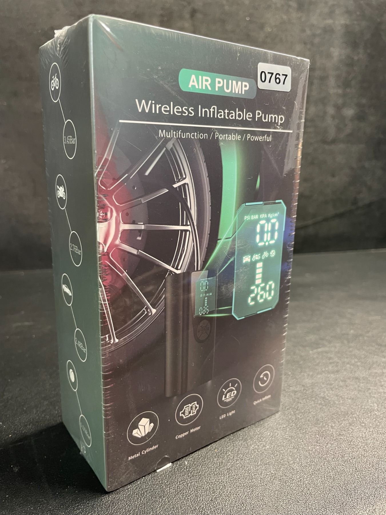 Lot 767 Portable Rechargeable Tire Inflator/Air Pump - Cordless Powerbank/Tire Pump with LED Screen - New!