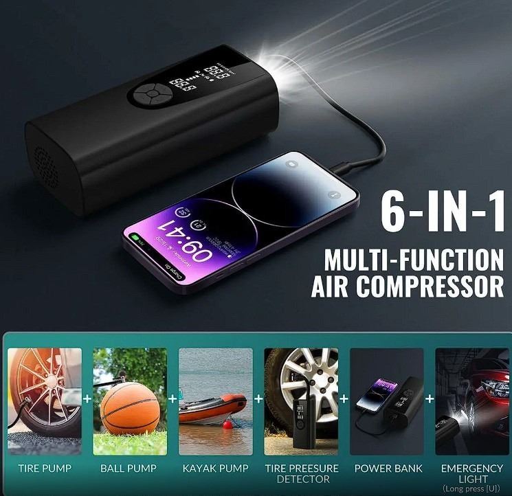 - This portable air compressor supports USB-C fast charging and is equipped with dual-function LCD digital backlight display. Even in low-light conditions, it can clearly show the tire pressure, ensuring convenient use at night