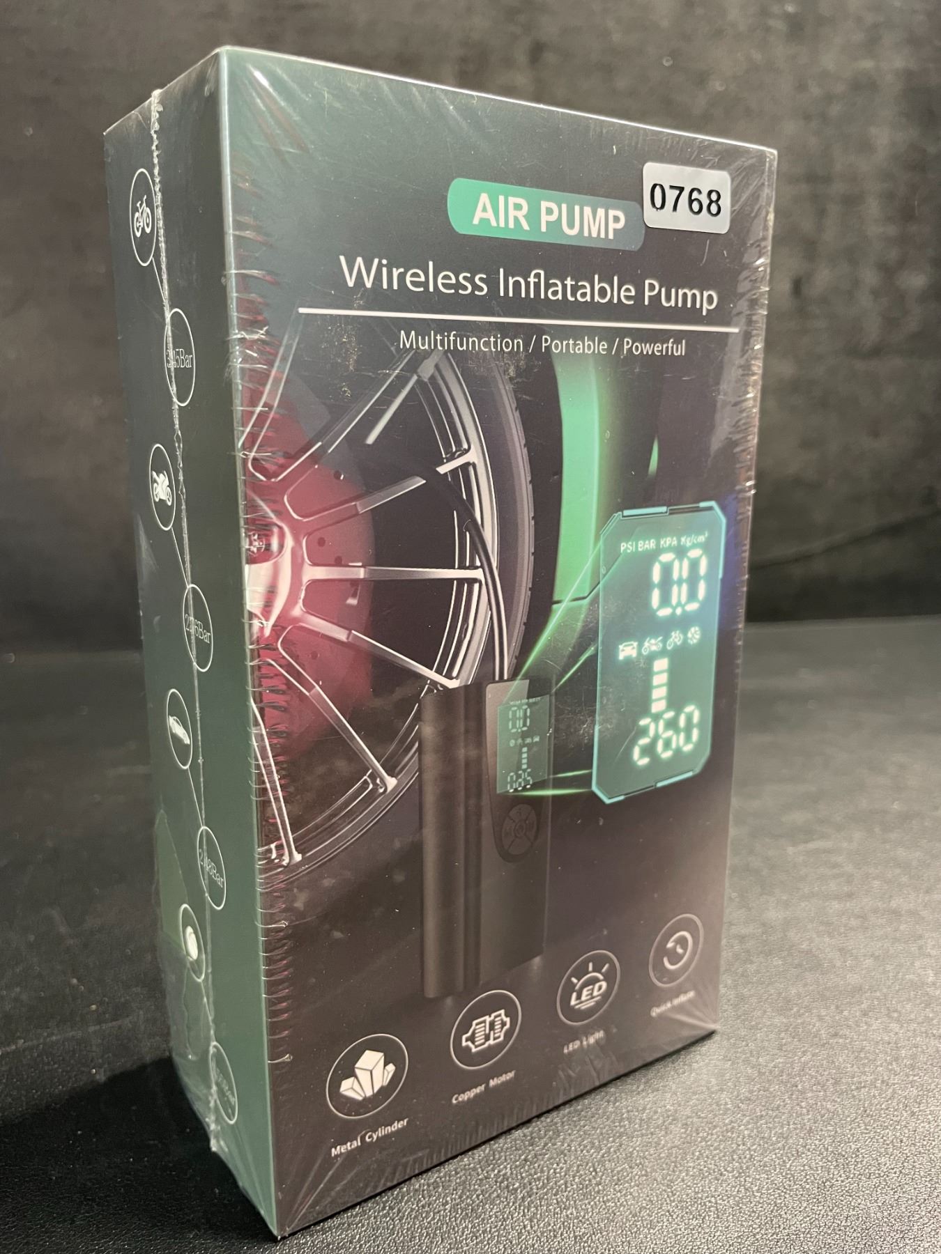Lot 768 Portable Rechargeable Tire Inflator/Air Pump - Cordless Powerbank/Tire Pump with LED Screen - New!