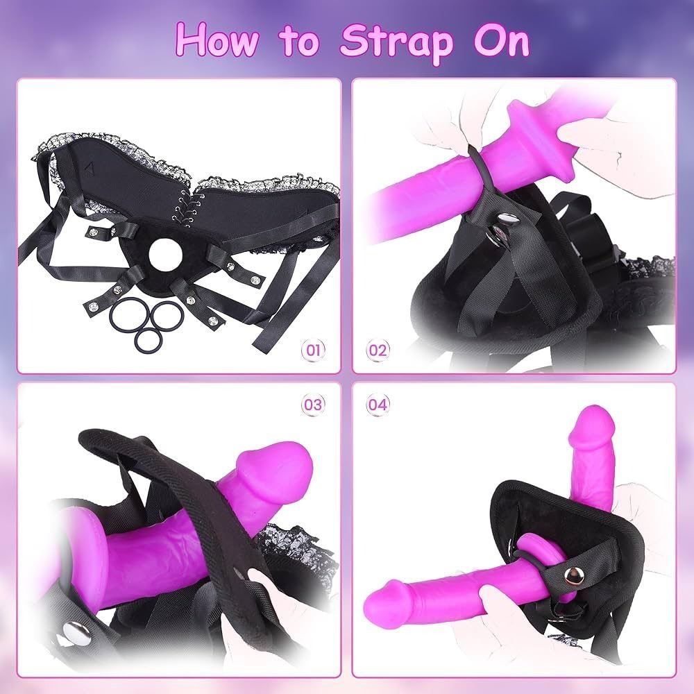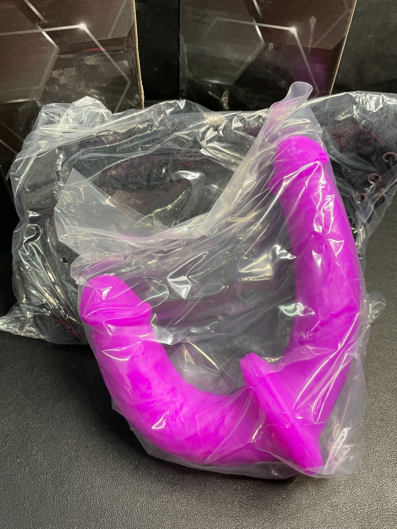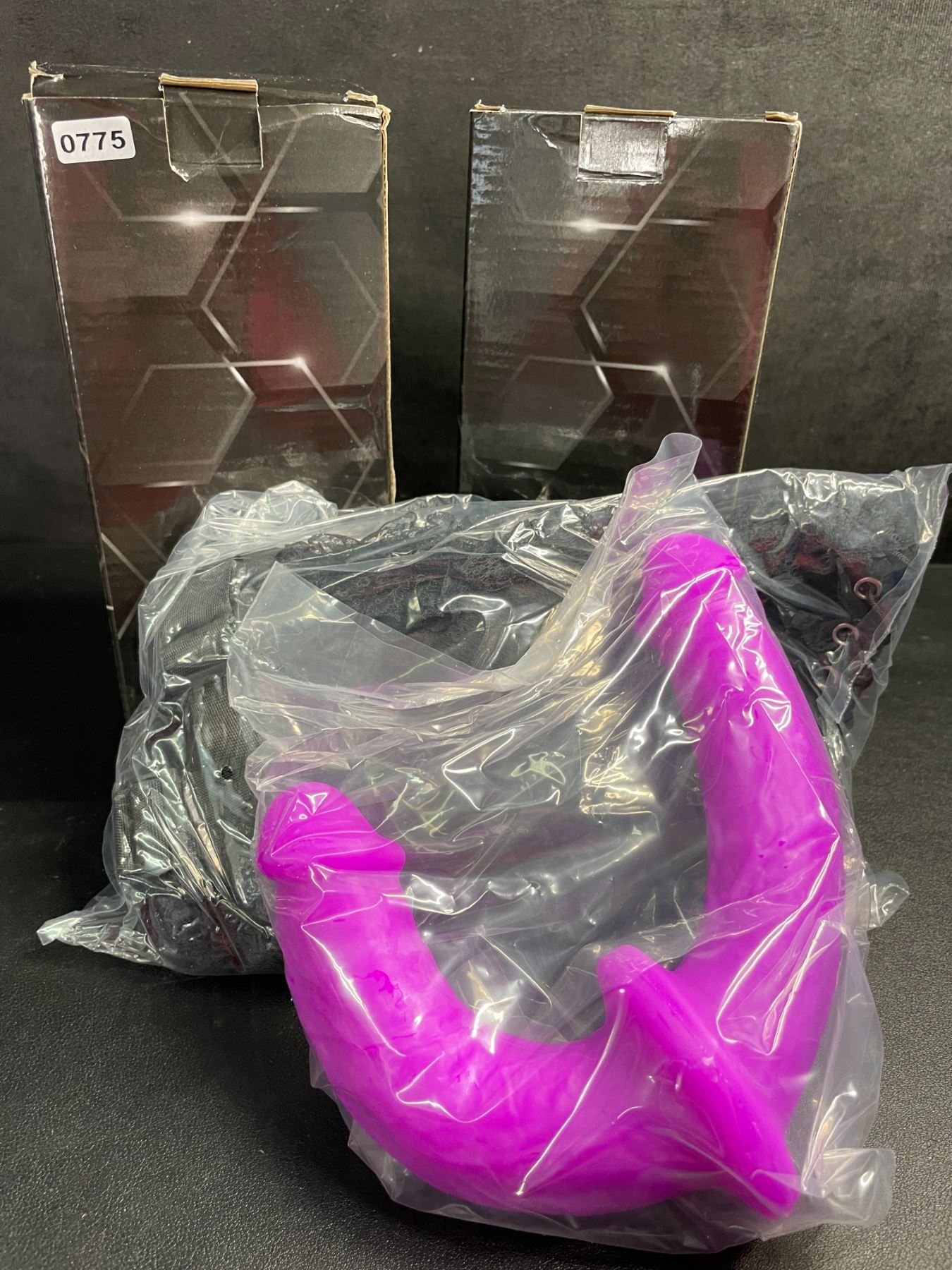 Lot 775 Lot of 2 Double-Sided Strap On Dildos with Velvet Lined Adjustable Harness and Lining - Brand New!