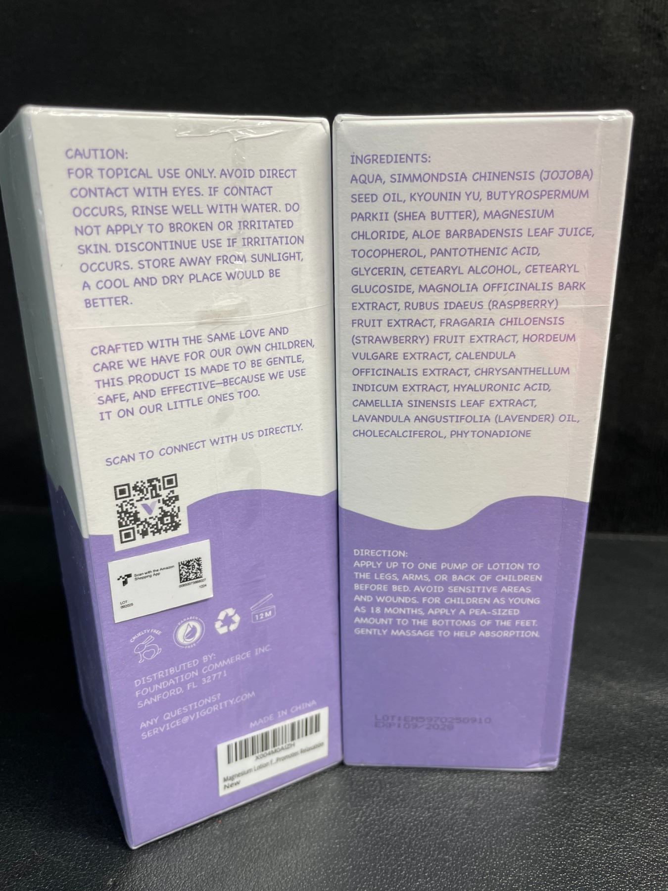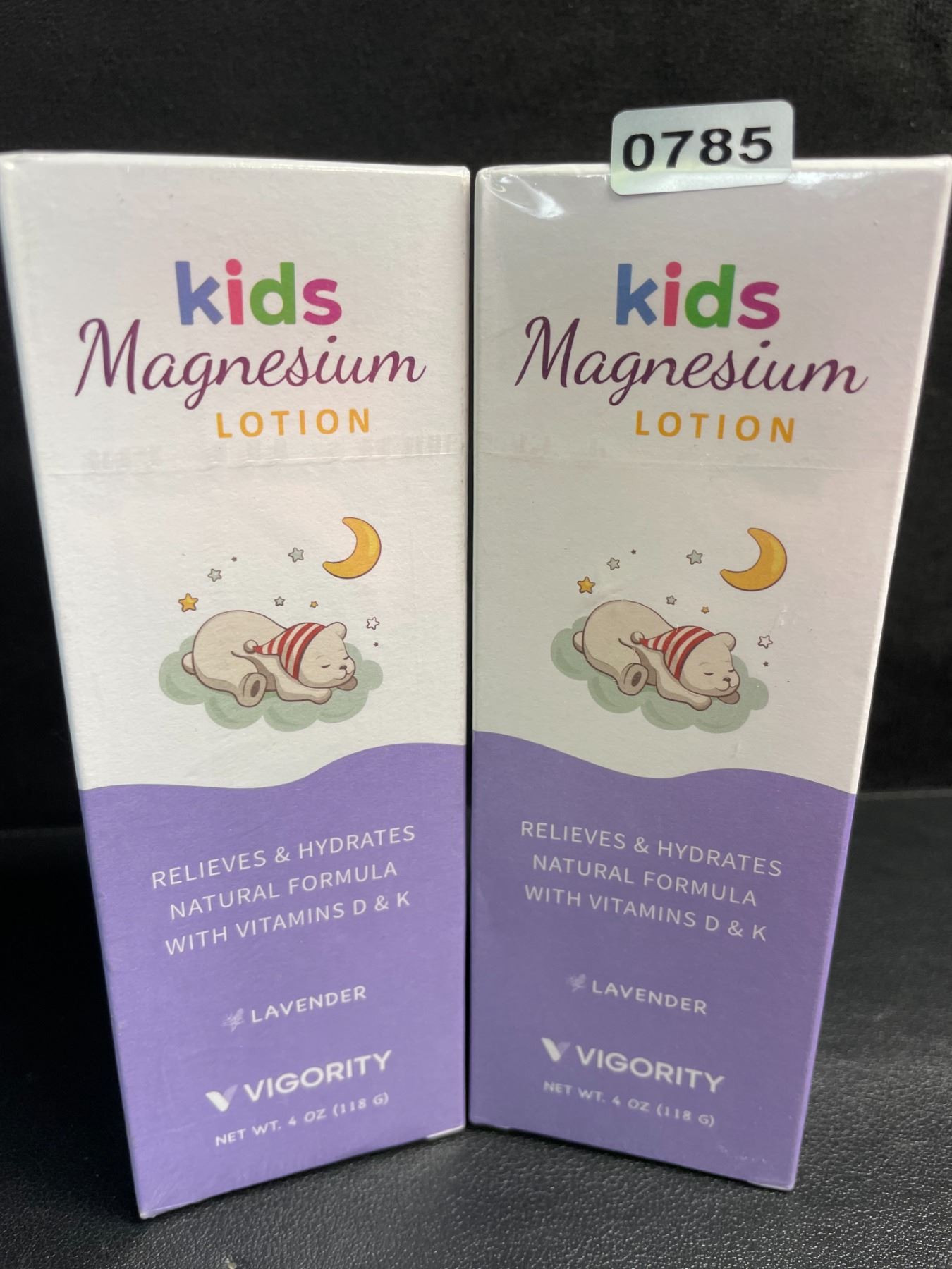 Lot 785 2 Boxes of Vigority Kids Magnesium Sleep Lotions (Lavender) 118g - For Kids/Toddlers - New Sealed
