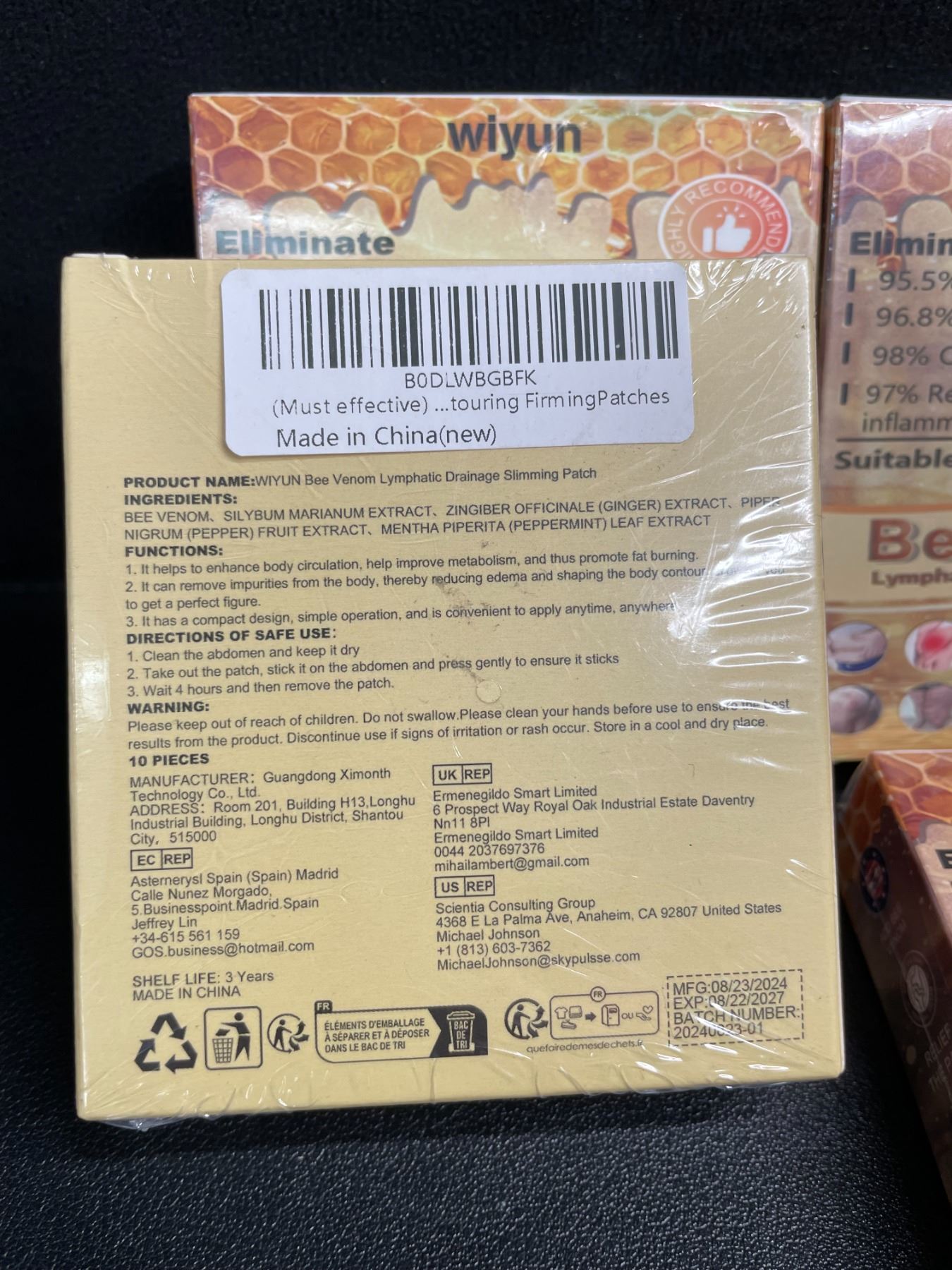 Lot 792 6 Boxes of Bee Venom Lymphatic Drainage Slimming Patches (10PCS Each) - New Sealed