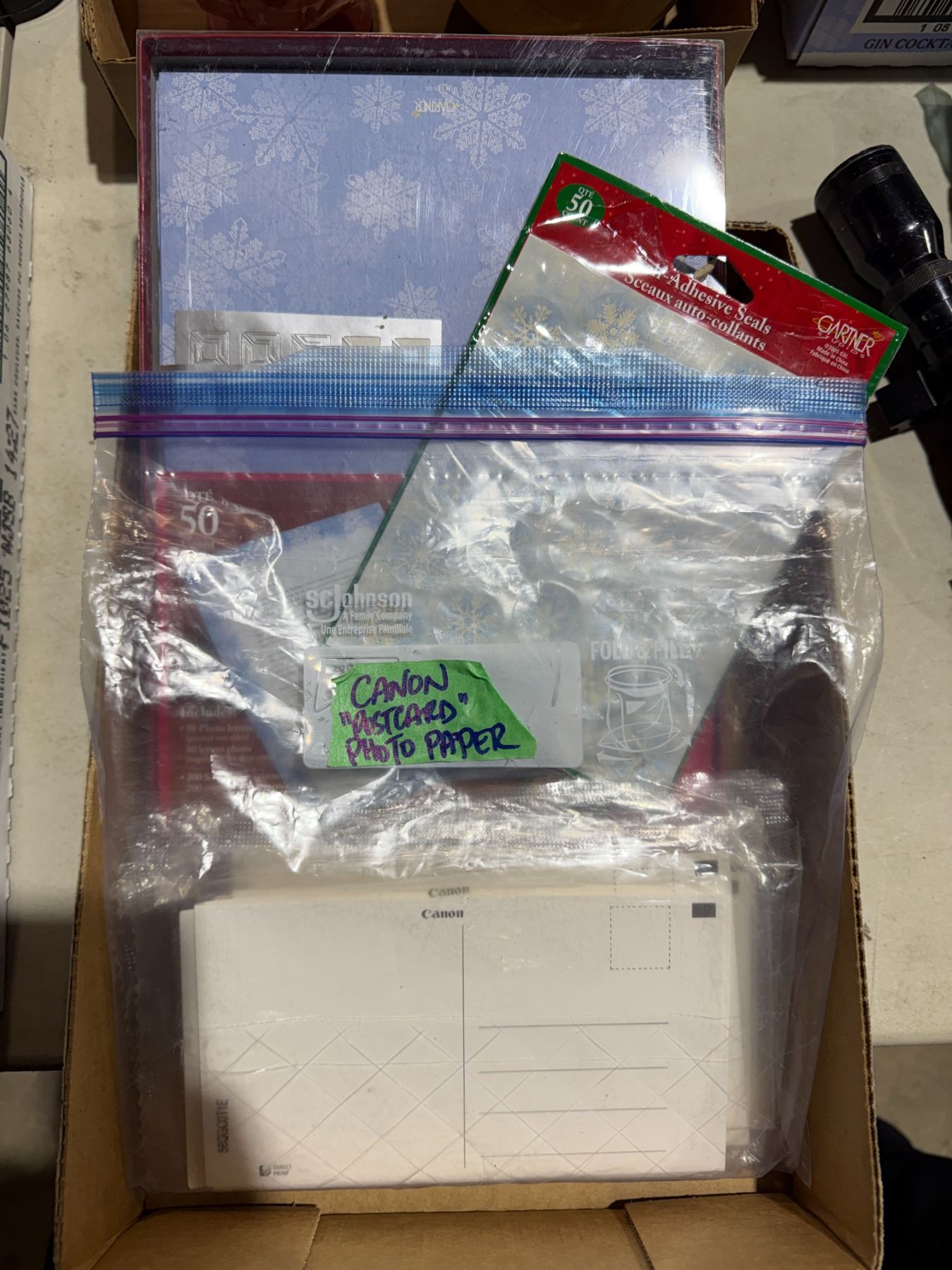 Canon postcard, photo paper, self adhesive seals, and photo letters