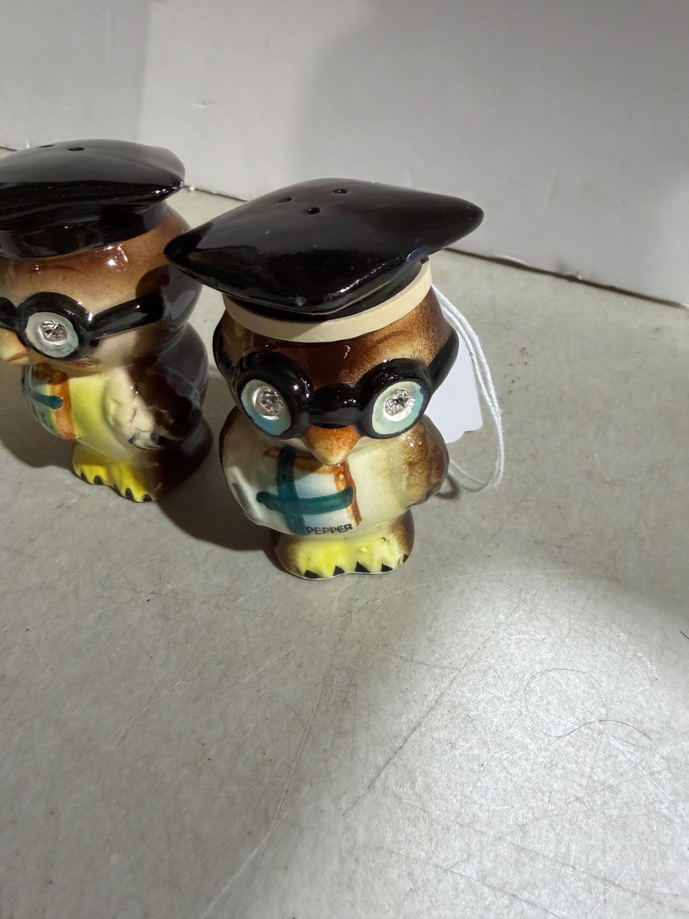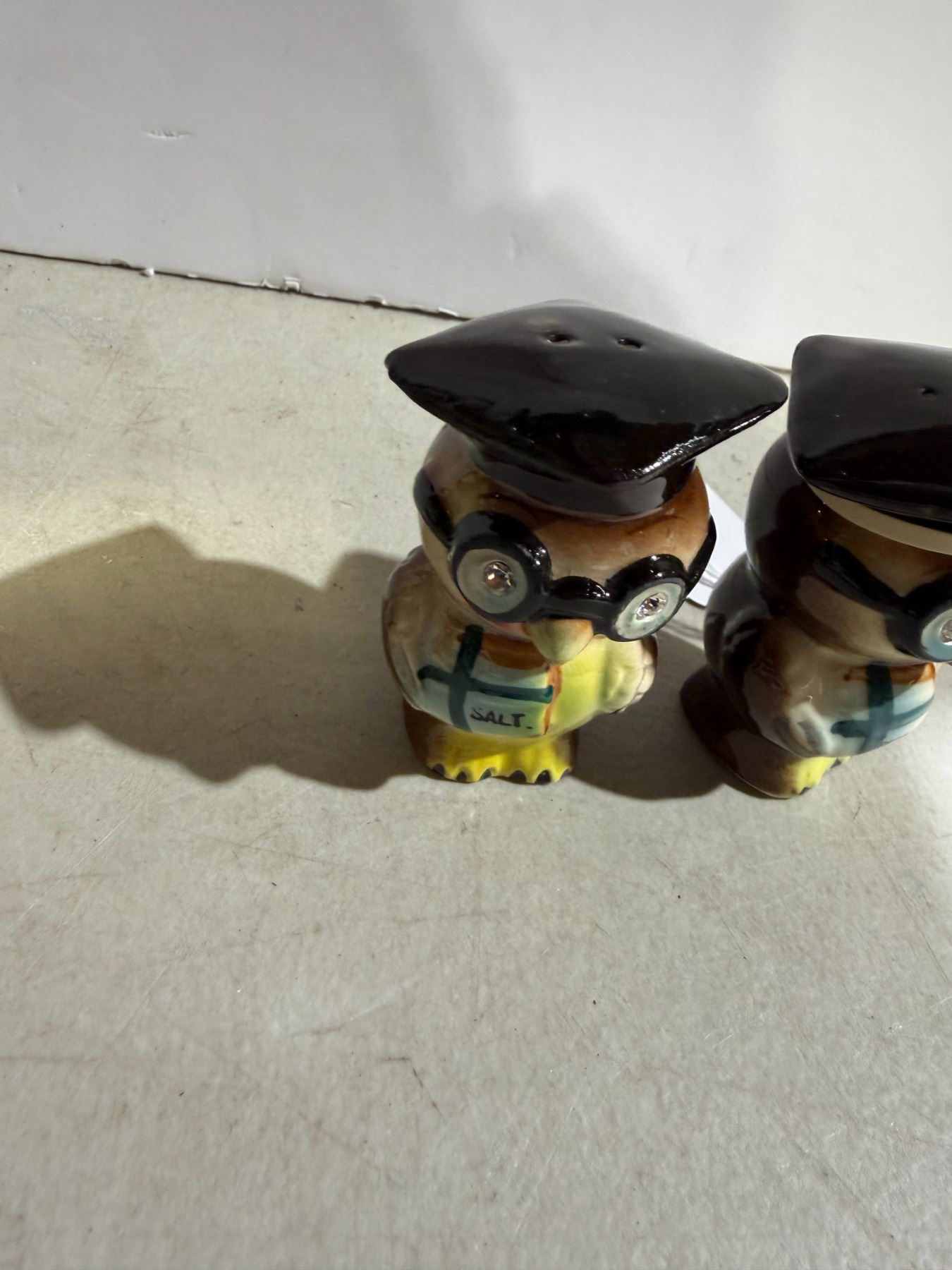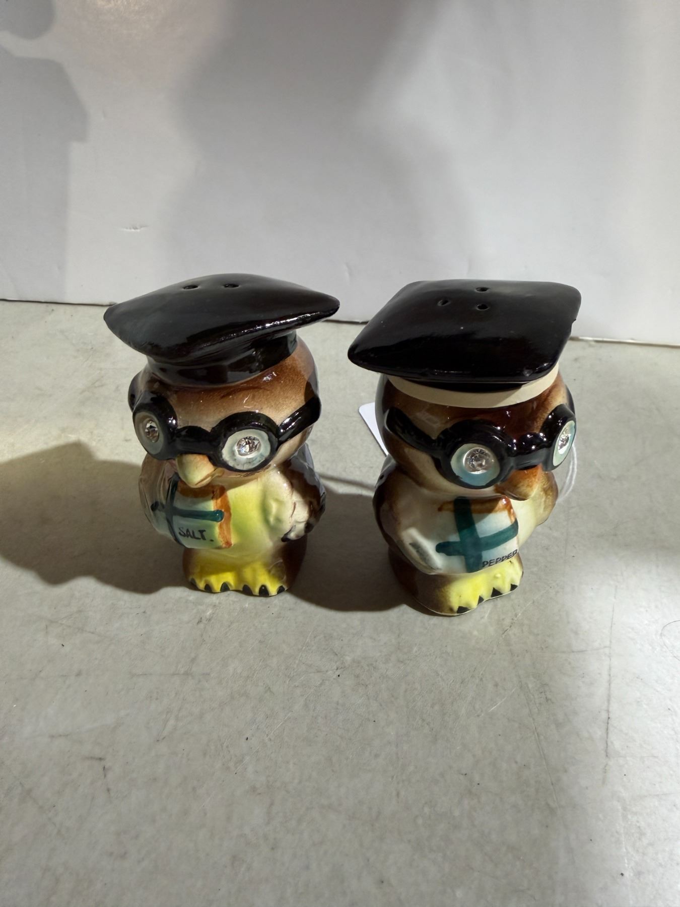 Lot 986 NAPCO Owl, salt and pepper with rhinestone eyes