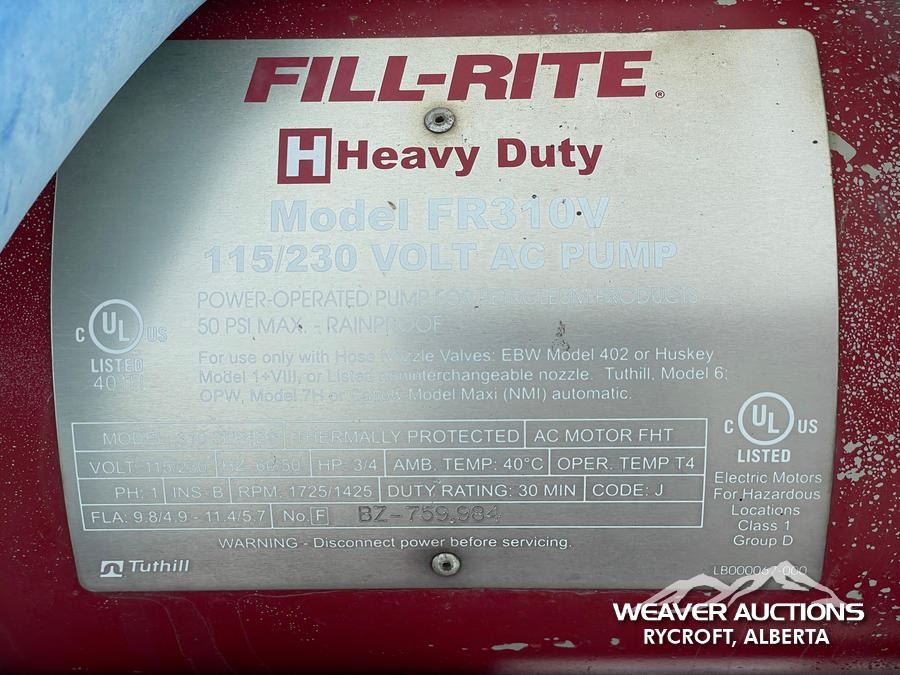 Lot 297 FUEL TANK ON SKID W/FILL RITE PUMP & NOZZLE