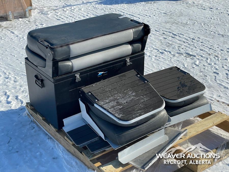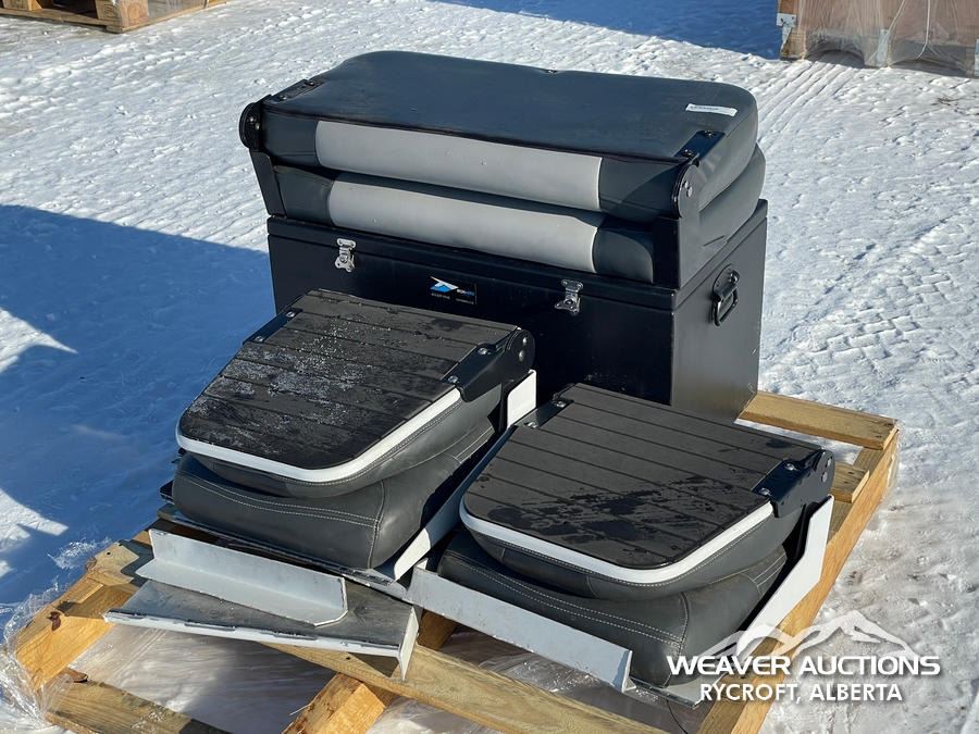 Specifications: (1) 2 SEATER BOAT SEAT W/STORAGE, (2) SINGLE SEATER BOAT SEATS