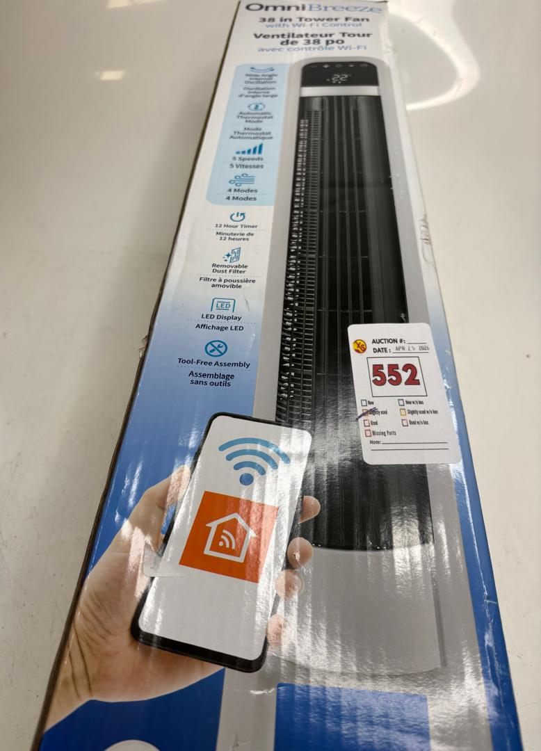 Lot 552 OMNIBREEZE 97.3 CM (38 IN.) TOWER FAN WITH INTERNAL OSCILLATION AND WIFI -SU