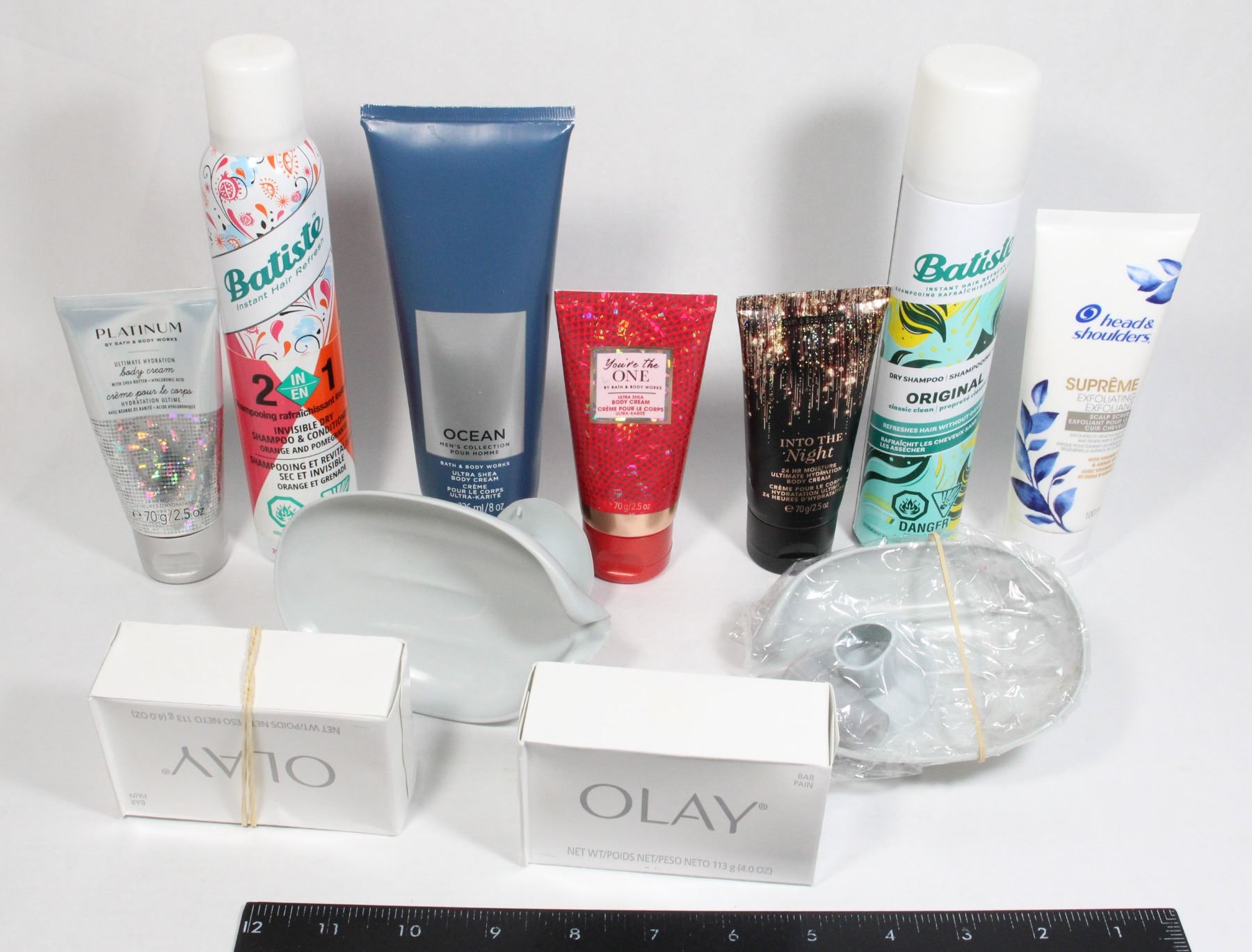 PRODUCTS. TWO BATISTA HAIR REFRESH NO BEST BEFORE BODY CREAMS (ALL SEEM USED NOE BEST BEFORE DATES FOUND) HEAD & SHOULDERS EXFOLIATING SCALP CREAM. ONE SOAP HOLDER MISSING SUCTION FOOT
