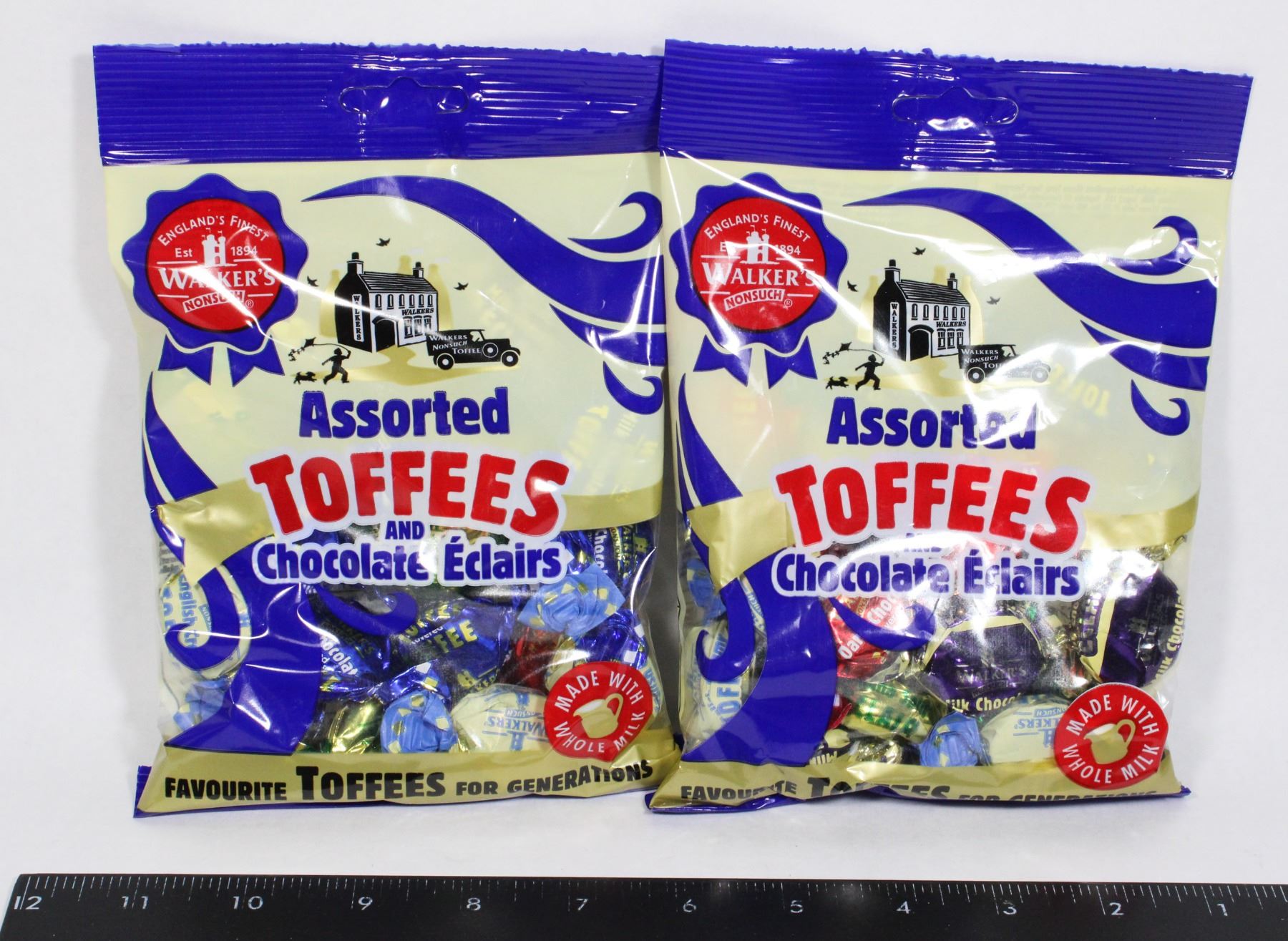 ENGLAND'S FINEST WALKER'S ASSORTED TOFFEES AND CHOCOLATE ECLAIRS BEST BY: 08/10/26