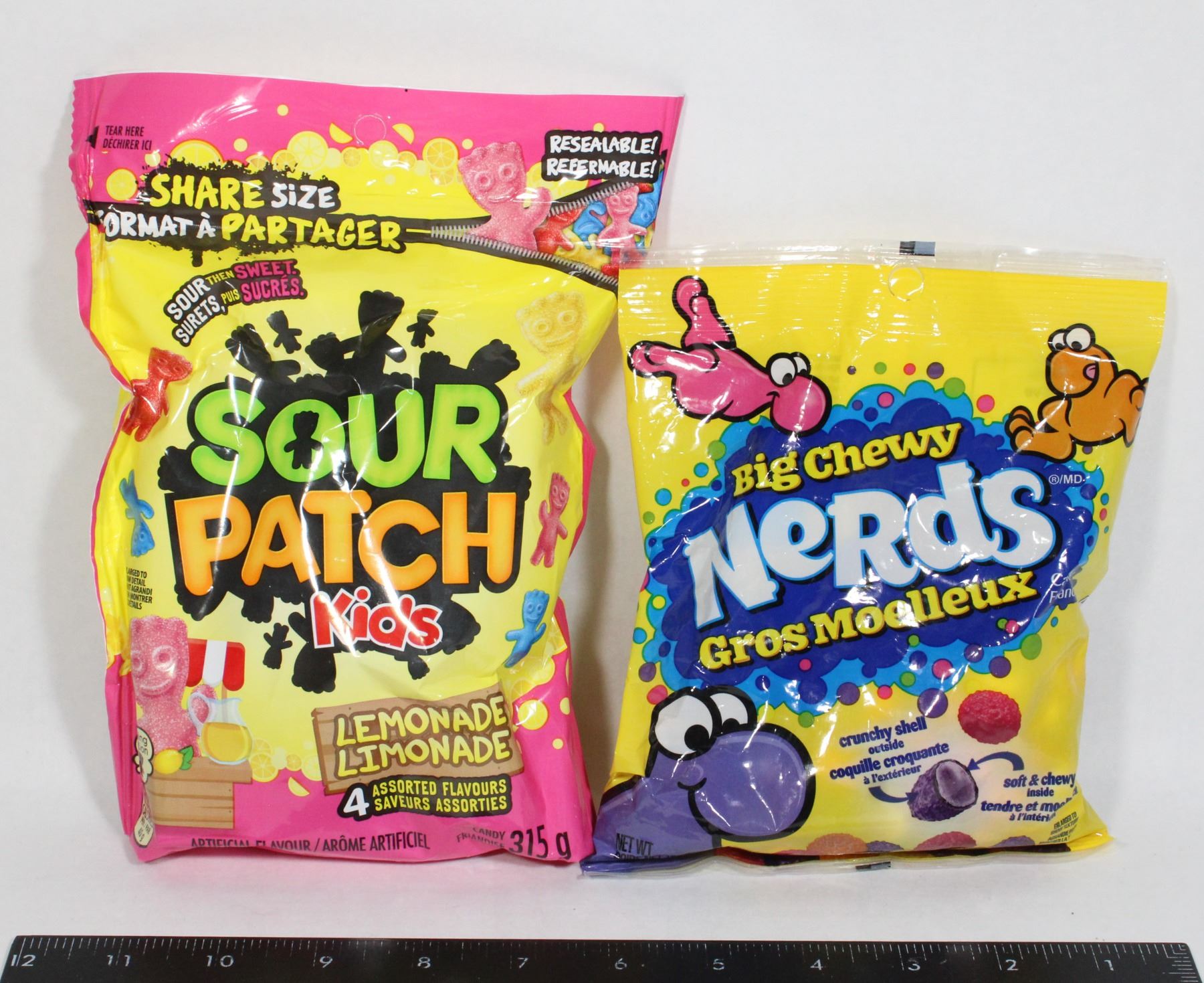 BIG CHEWY NERDS BEST BEFORE 2025 JL 11, SOUR PATCH KIDS LEMONADE BEST BEFORE 2026 JA 08