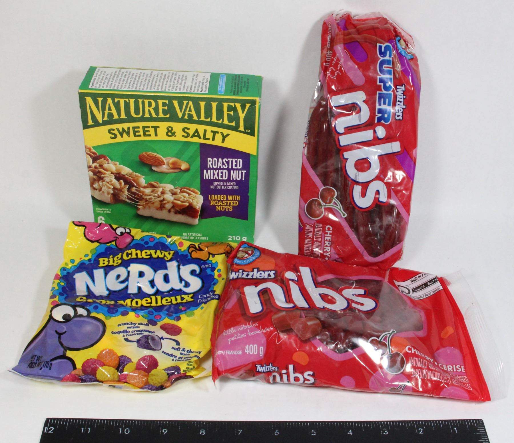NATURE VALLEY SWEET AND SALTY ROASTED NUTS BEST BEFORE 14 JN 2025, NIBS BEST BEFORE 07 2026, NERDS BEST BEFORE 2025 JL 11