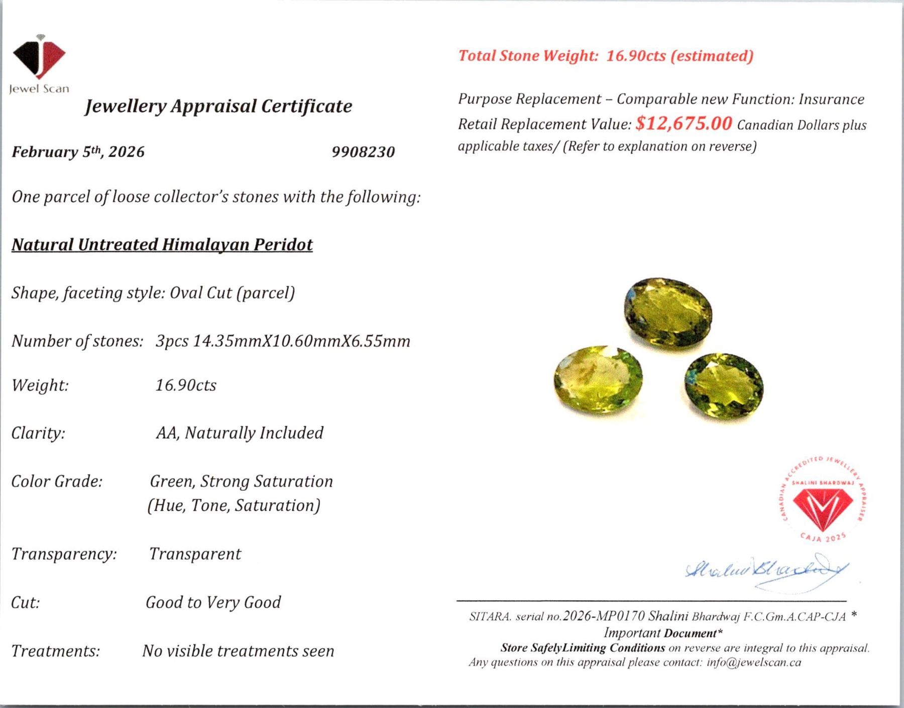 Lot 4021 *^16.9 ct Certified Himalayan Peridot gemstone Parcel ($12,675 Appraisal)