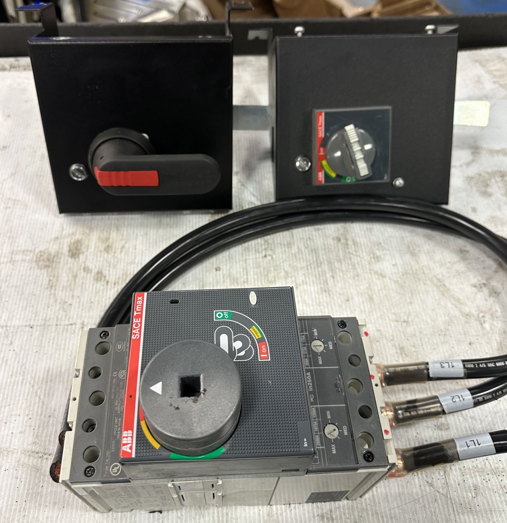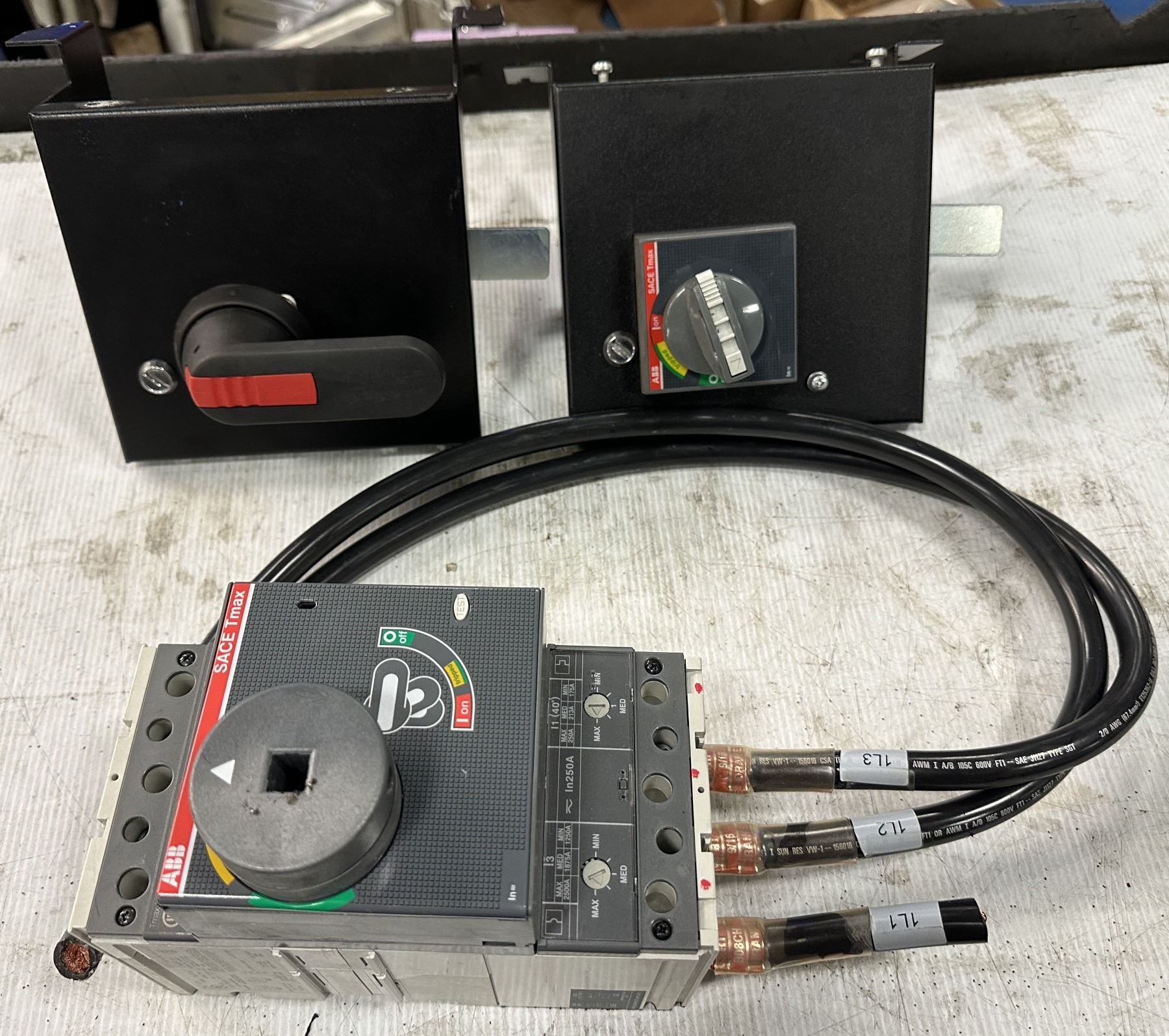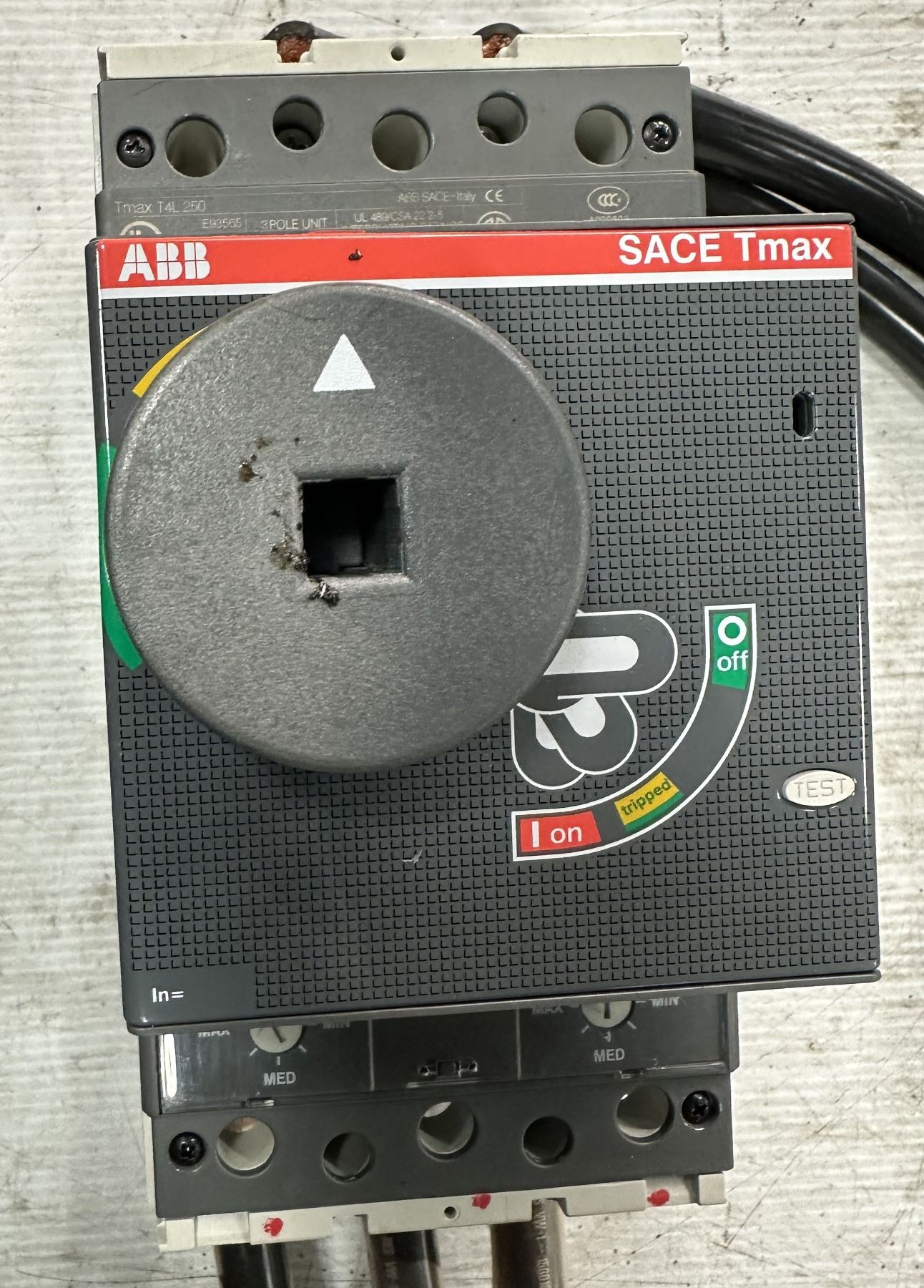 Lot of (3) ABB #Tmax T4L 250 Circuit Breaker & 2 - Shut Off Handles