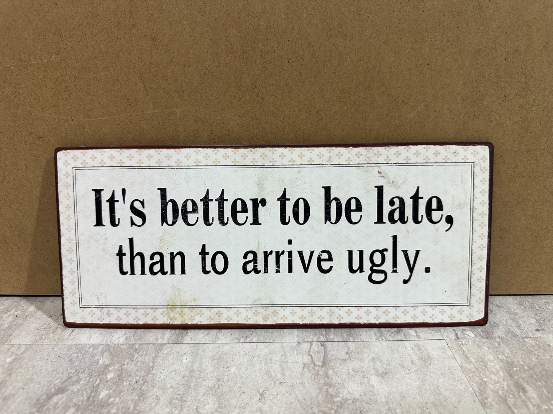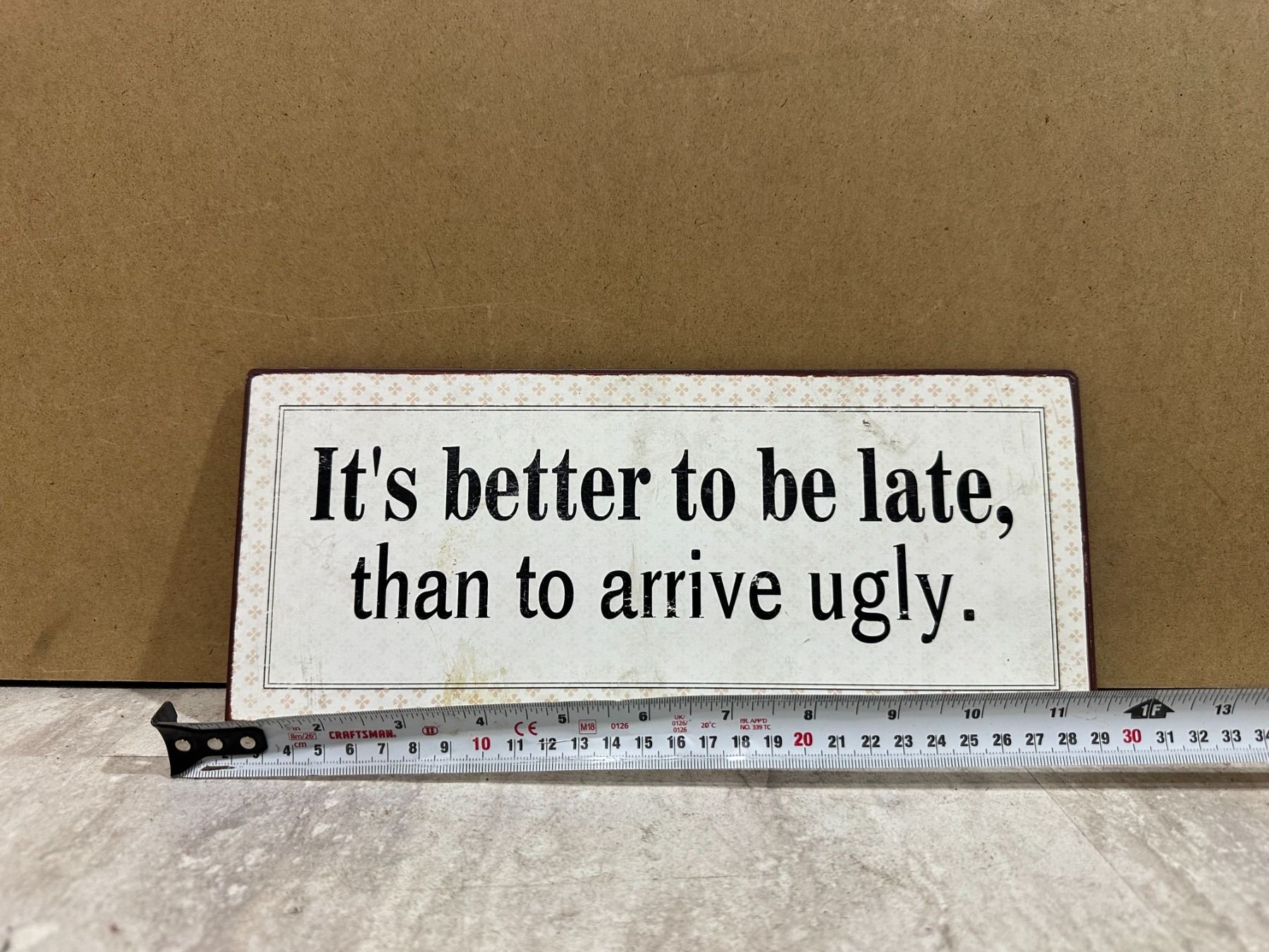 Lot 120 It's Better To Be Late Than To Arive Ugly Metal Sign