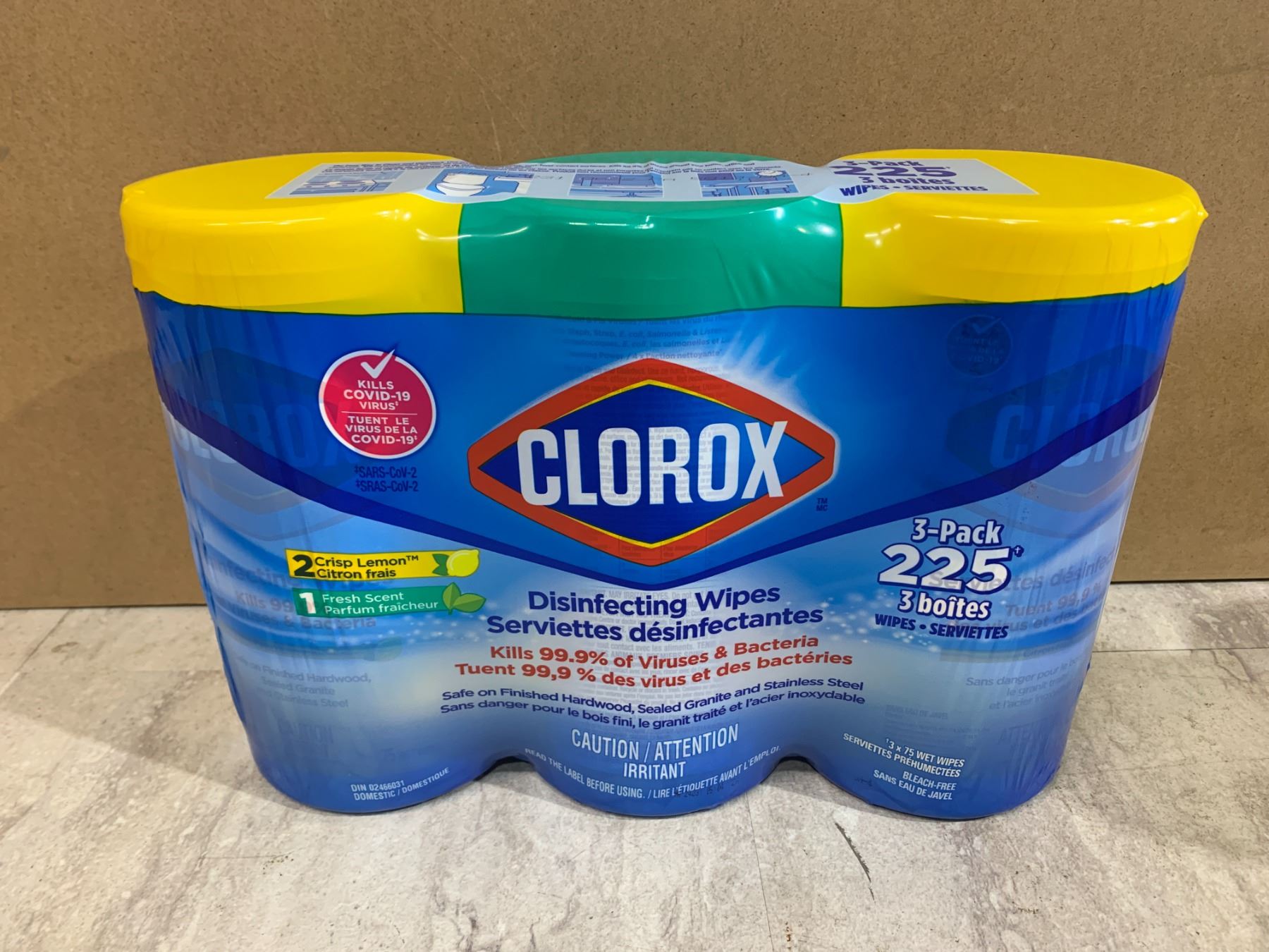 Lot 183 3 Pack Clorox Disinfecting Wipes 225 Wipes 2 Crisp Lemon Scent 1 Fresh Scent