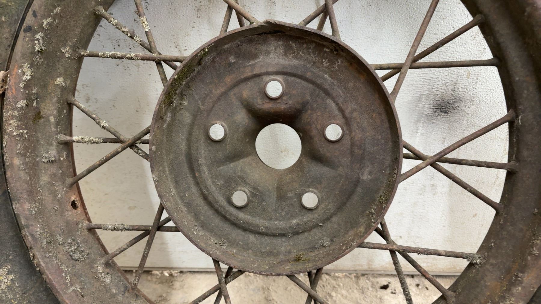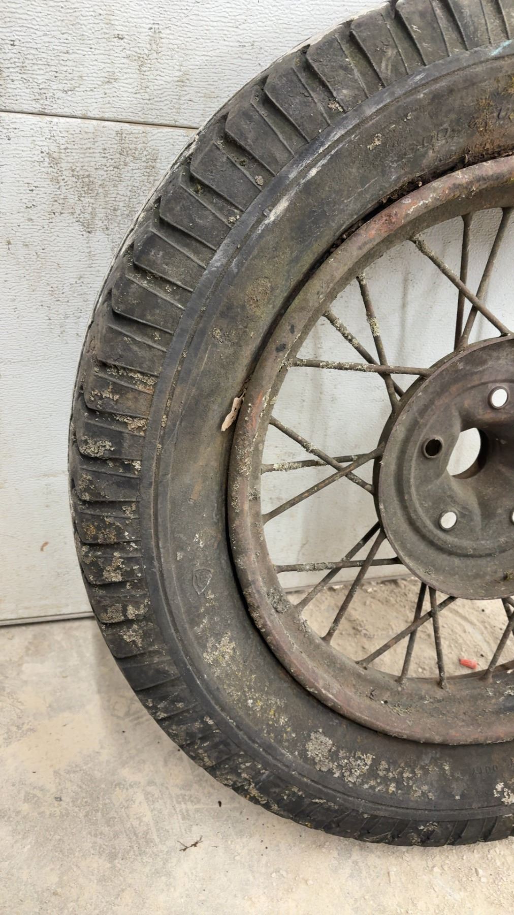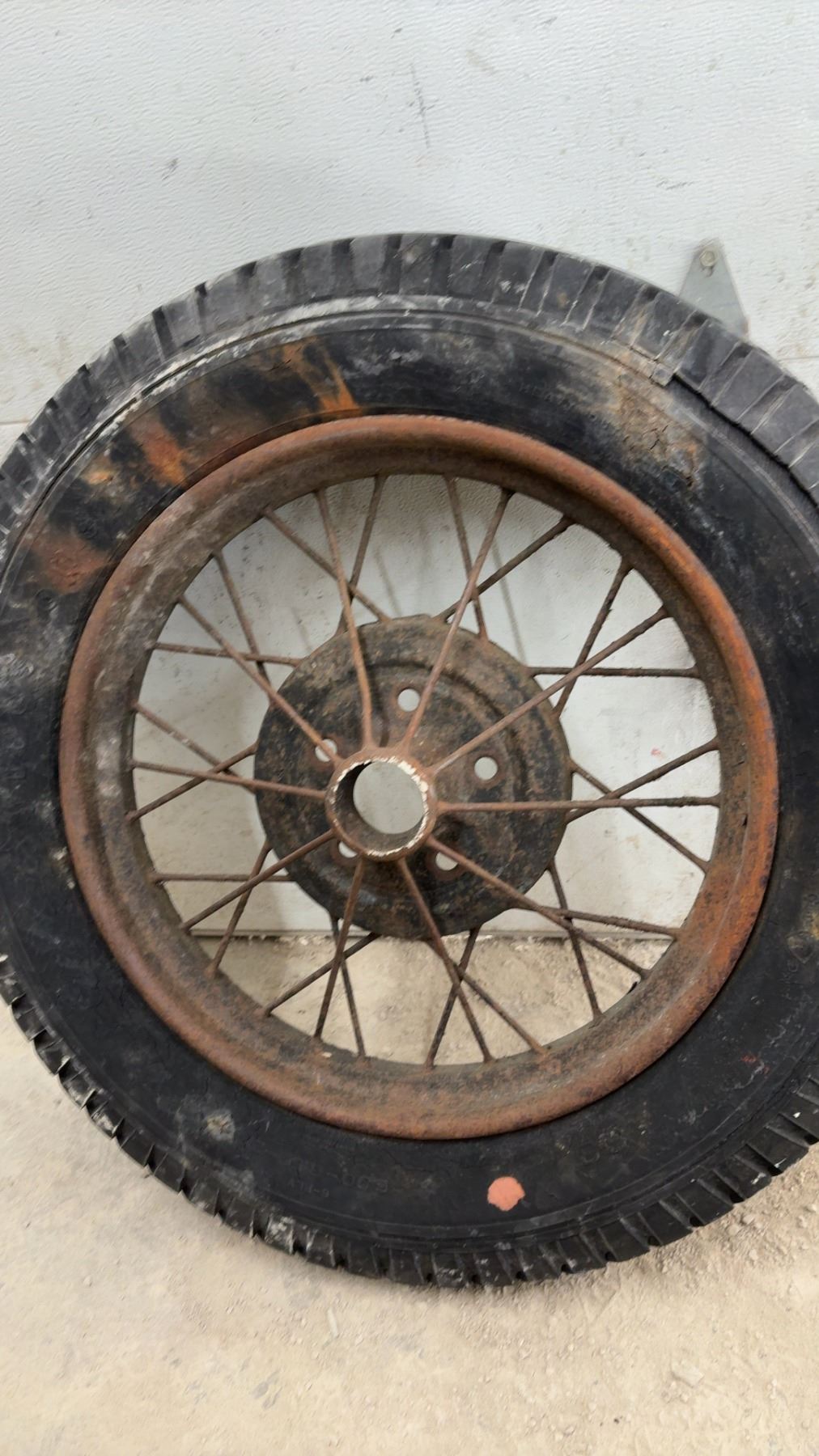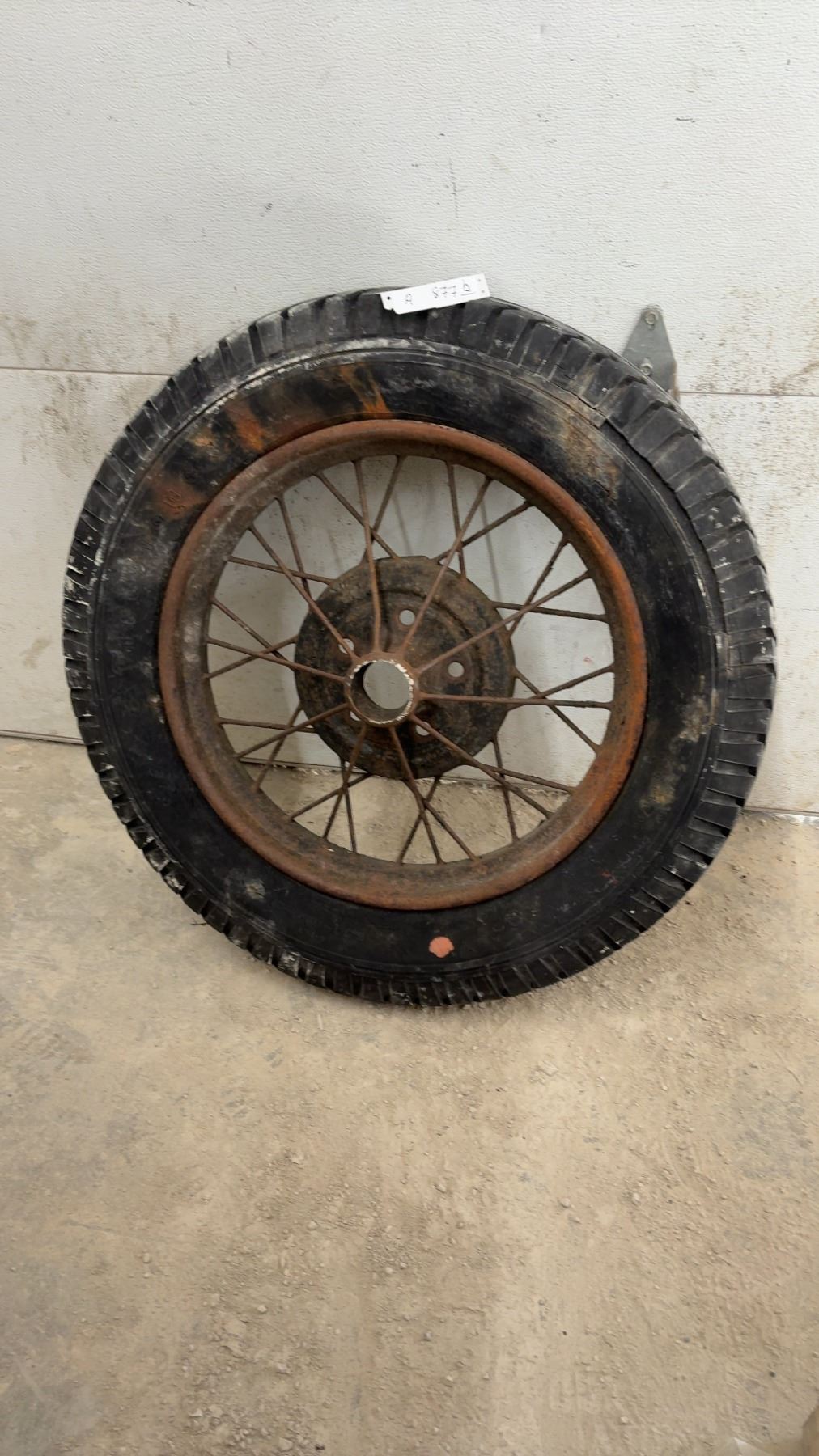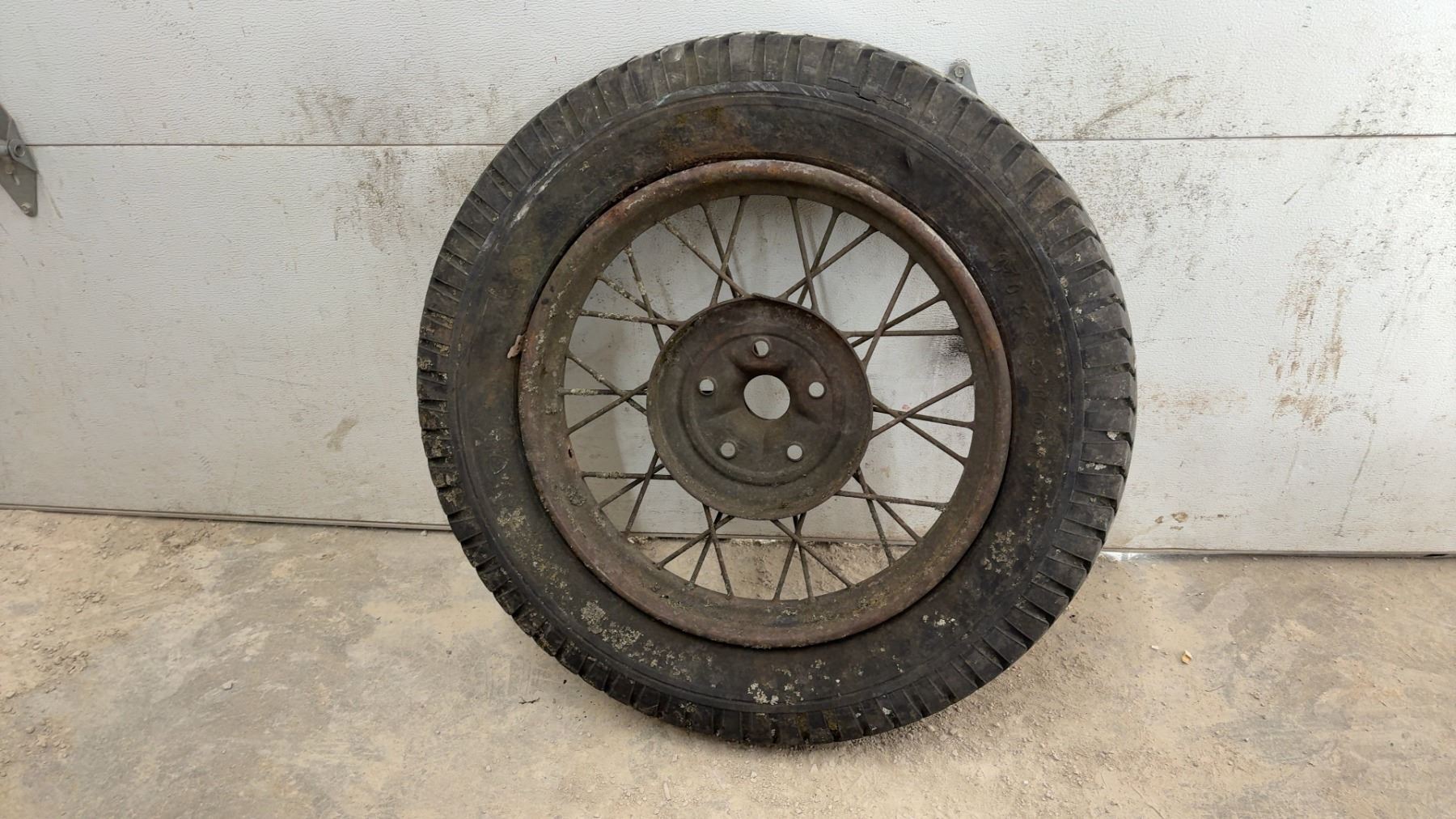 Lot 877B Vintage 1930s Truck Wire Spoke Wheel w/ Tire, 22" Rim, 33" Diameter