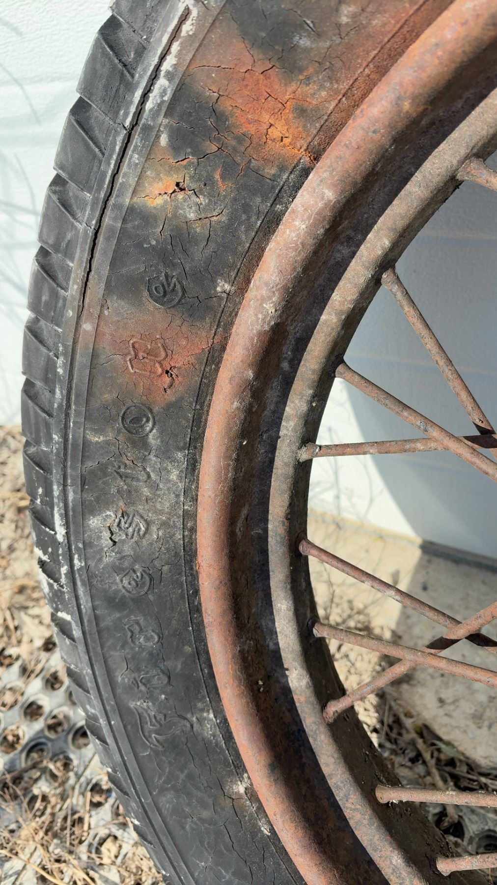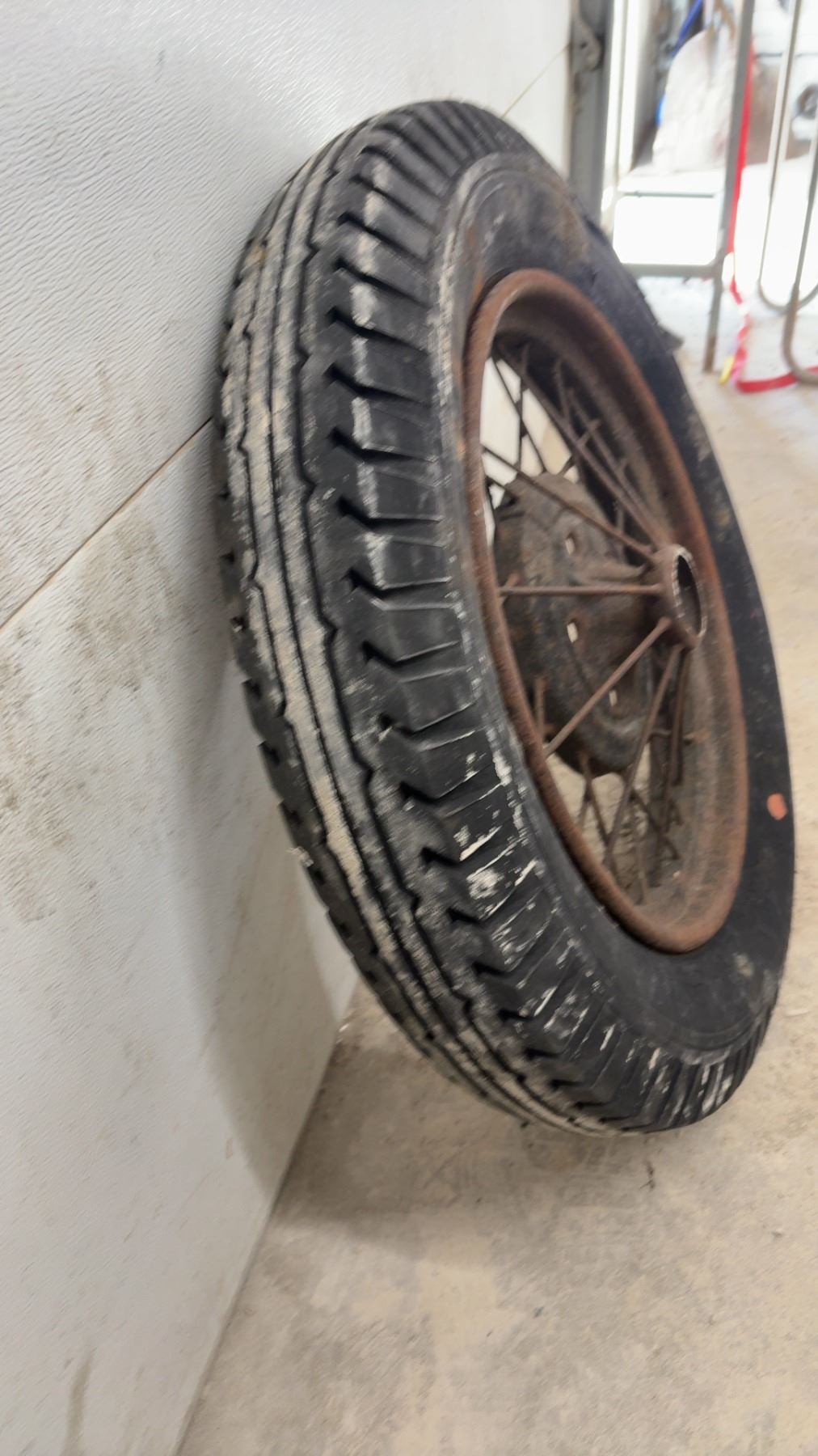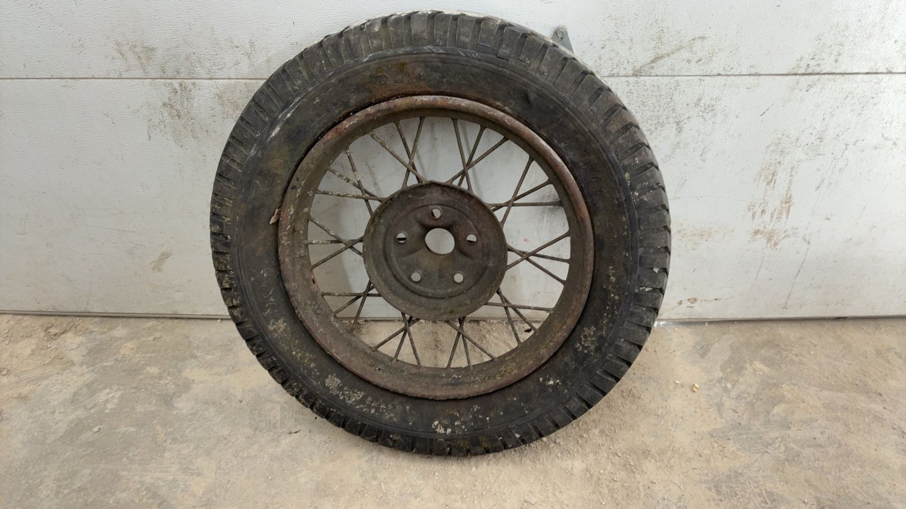 Vintage 1930s Truck Wire Spoke Wheel w/ Tire, 22" Rim, 33" Diameter