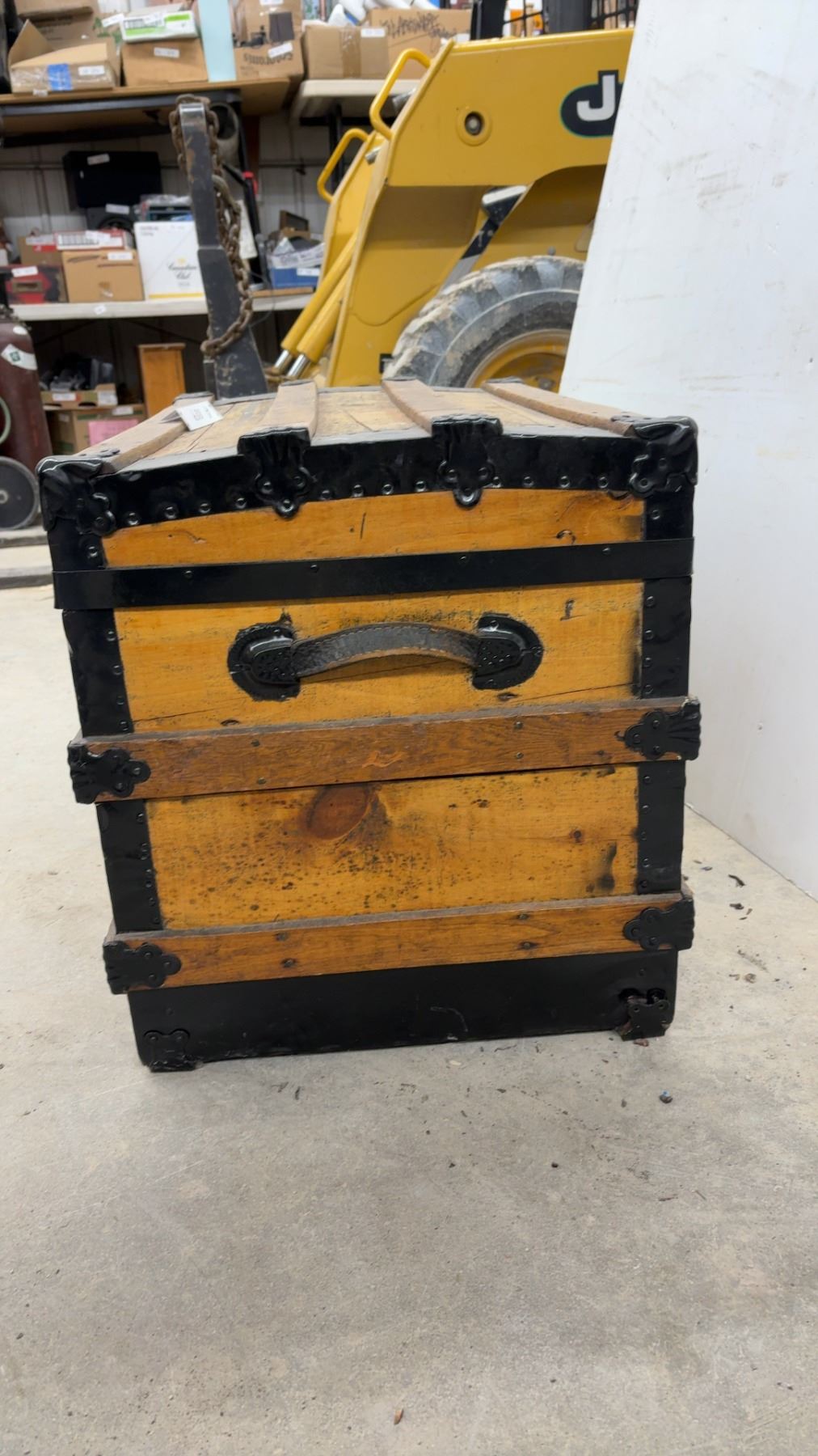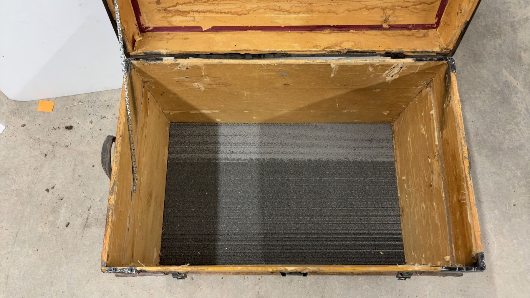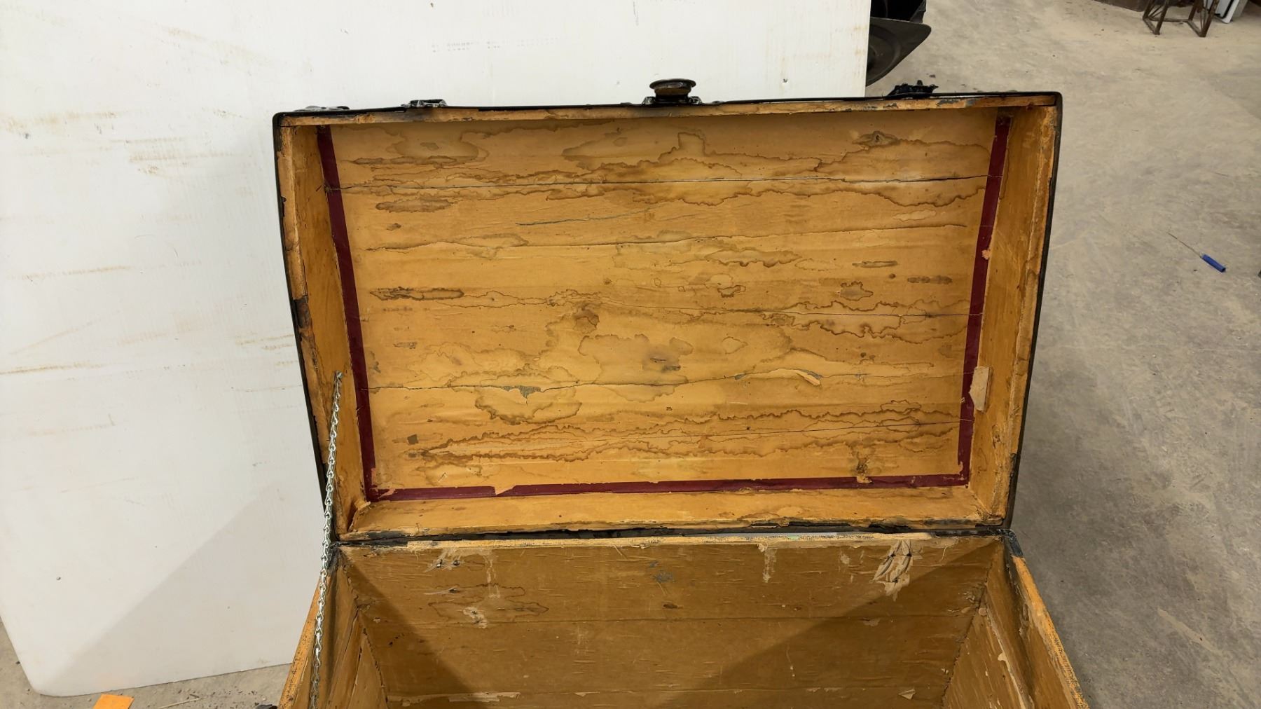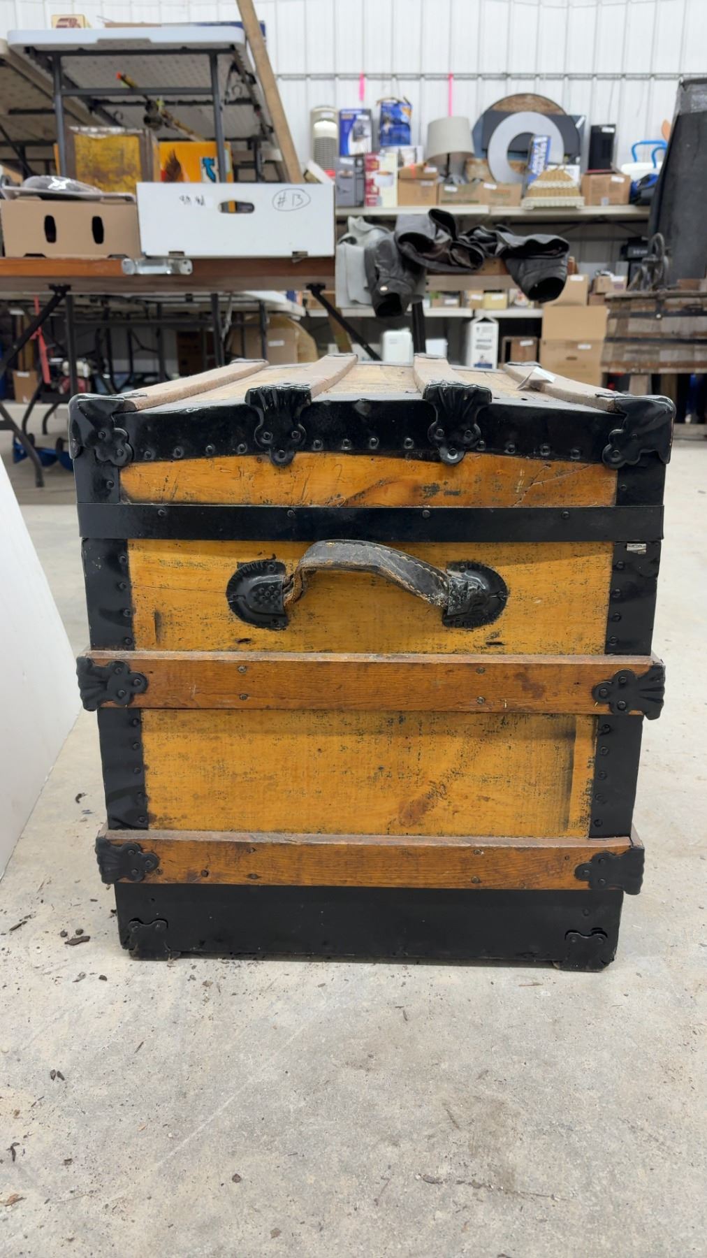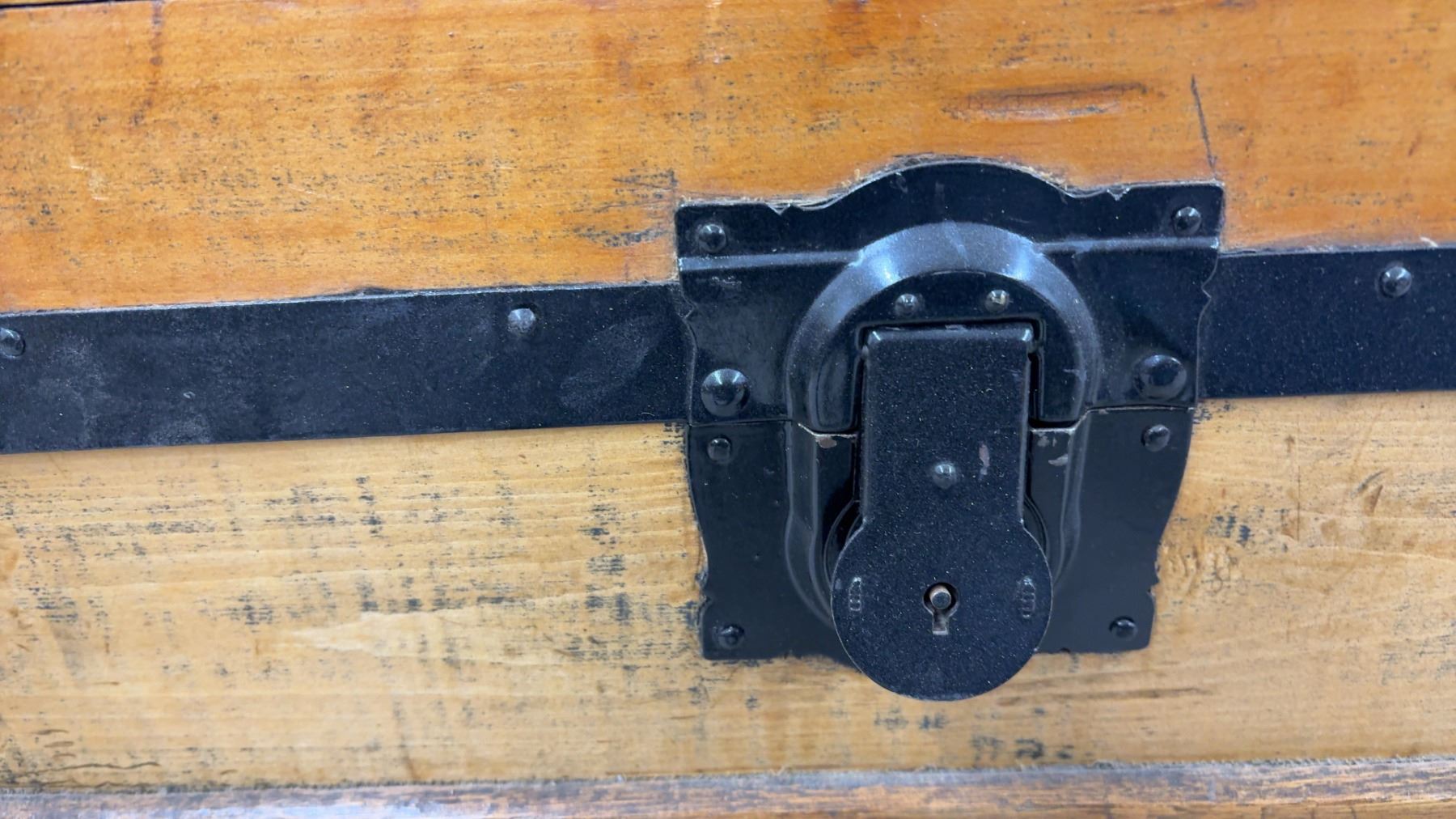 Lot 889 Antique Wooden Steamer Trunk w/ Black Metal Hardware and Latches, 21-1/2x30-1/2x20"