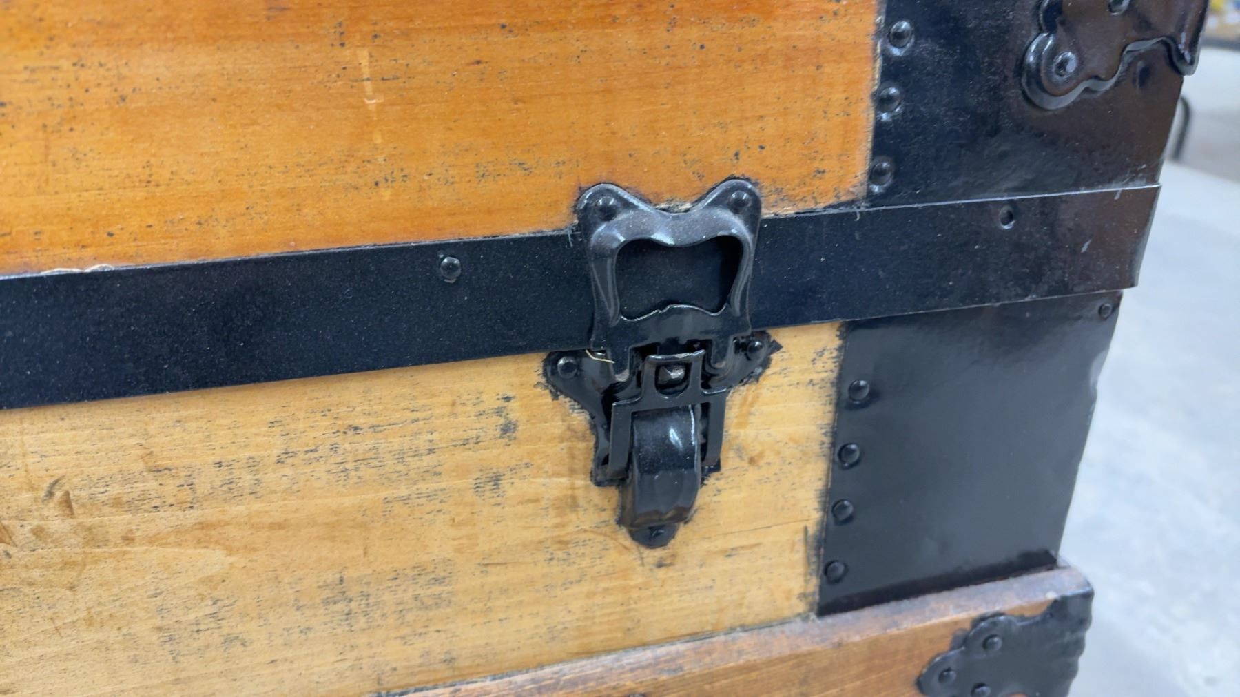 Antique Wooden Steamer Trunk w/ Black Metal Hardware and Latches, 21-1/2x30-1/2x20"