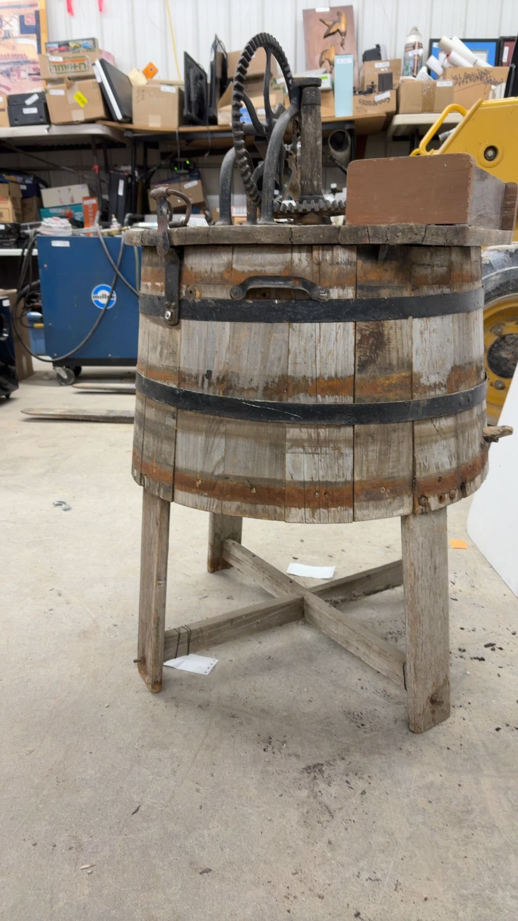 Lot 893B Antique Wooden Barrel Hand-Crank Washing Machine on Wooden Stand