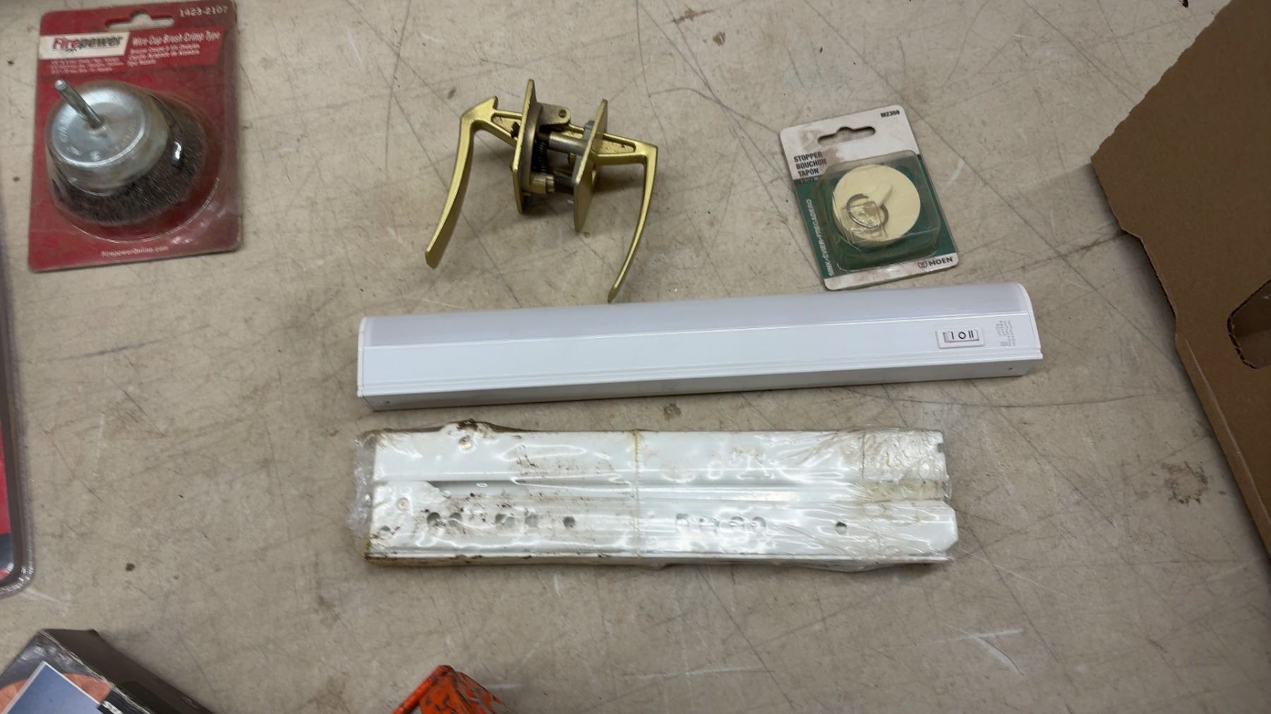 Assorted Grinding Wheels, Wire Brush Cups, Scraper, Door Hardware, Caulking Gun and More
