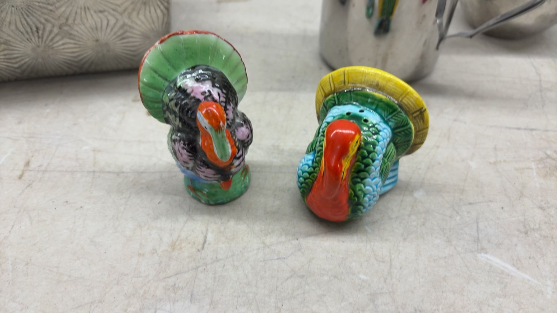 Stainless Steel Coffee Pots, Loaf Pan, Stained Glass Panda, Coca-Cola Tin, Salt and Pepper
