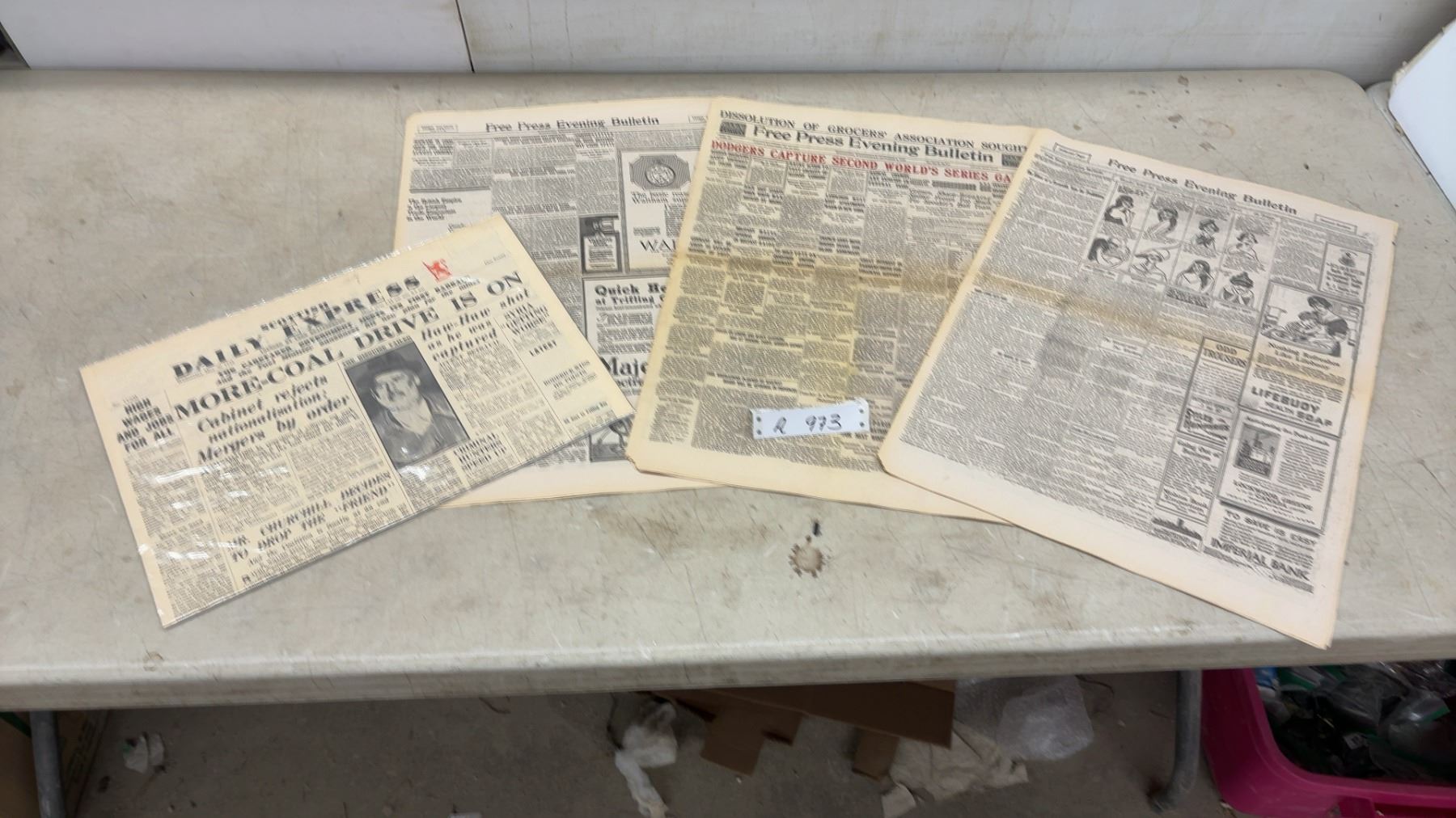 Lot 973 4 Vintage Newspapers – Daily Express 1945 and Free Press Evening Bulletin 1920