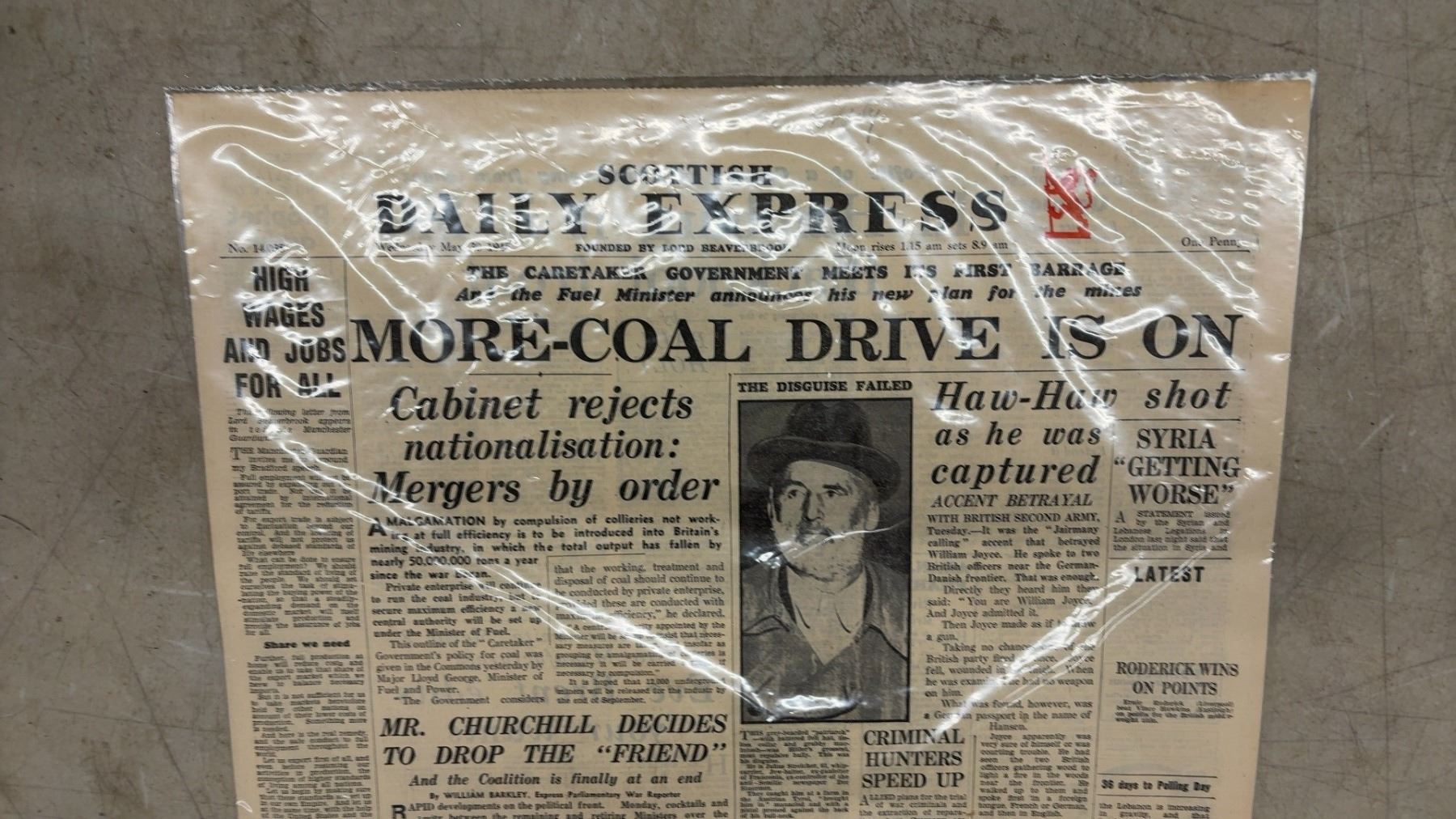 4 Vintage Newspapers – Daily Express 1945 and Free Press Evening Bulletin 1920