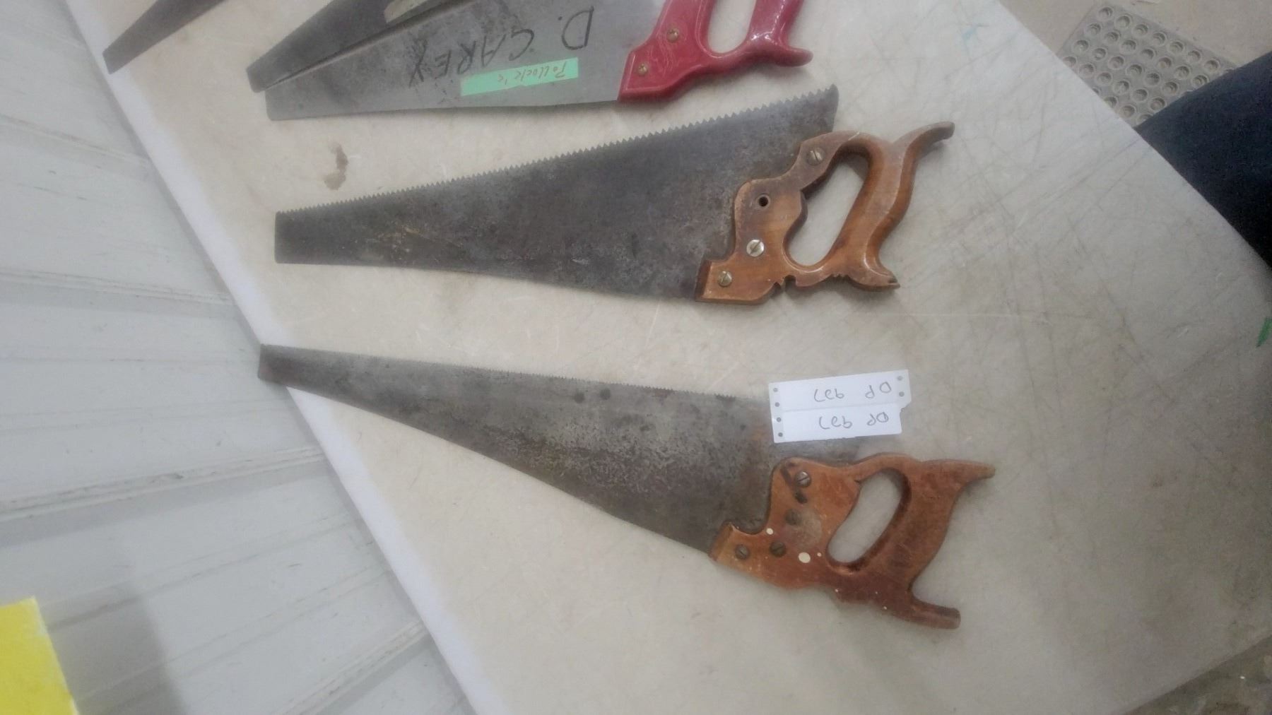 Lot 927 5 Hand Saws w/ Wood and Plastic Handles, Various Sizes