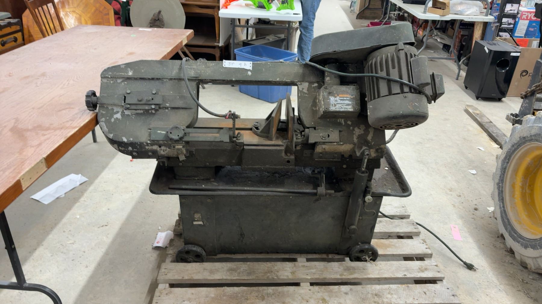 Lot 9B Horizontal Metal Cutting Band Saw on Rolling Base w/ Electric Motor