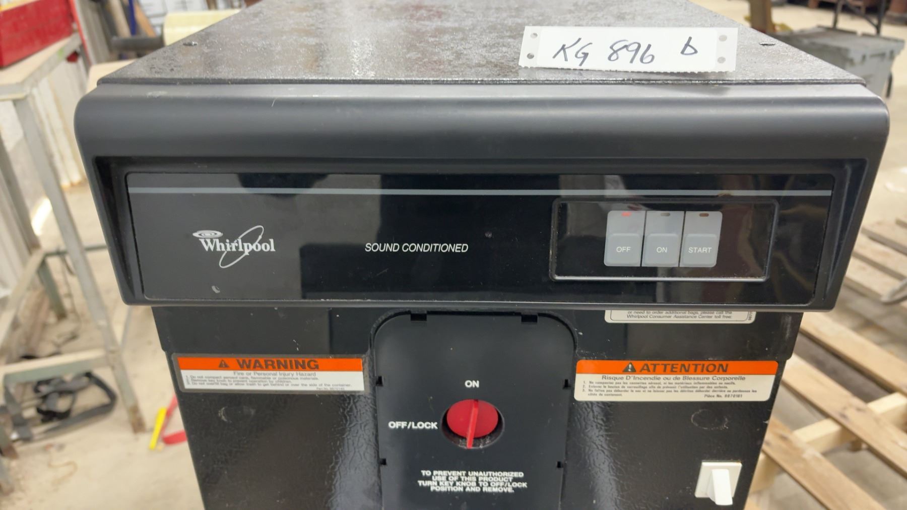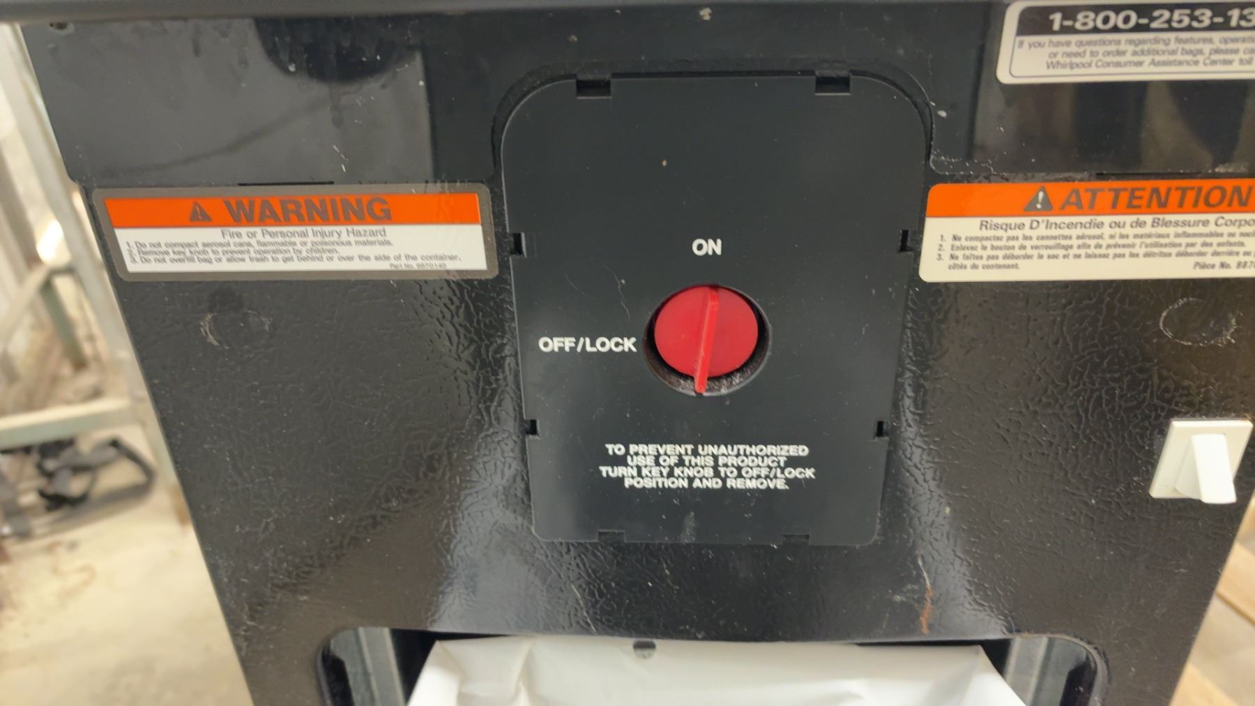 Lot 896B Whirlpool Trash Compactor w/ Slip-N-Grip Plastic Compactor Bags