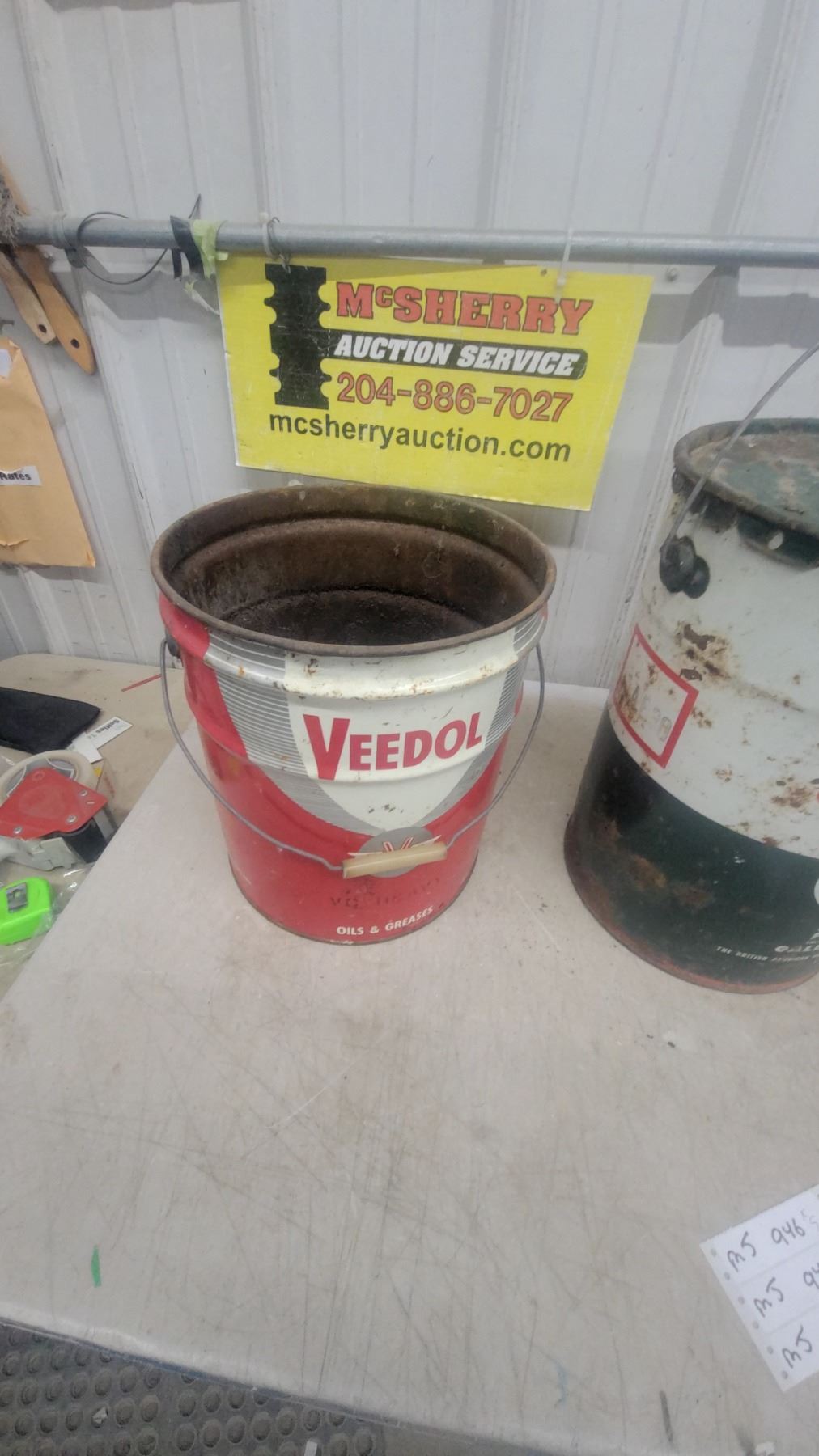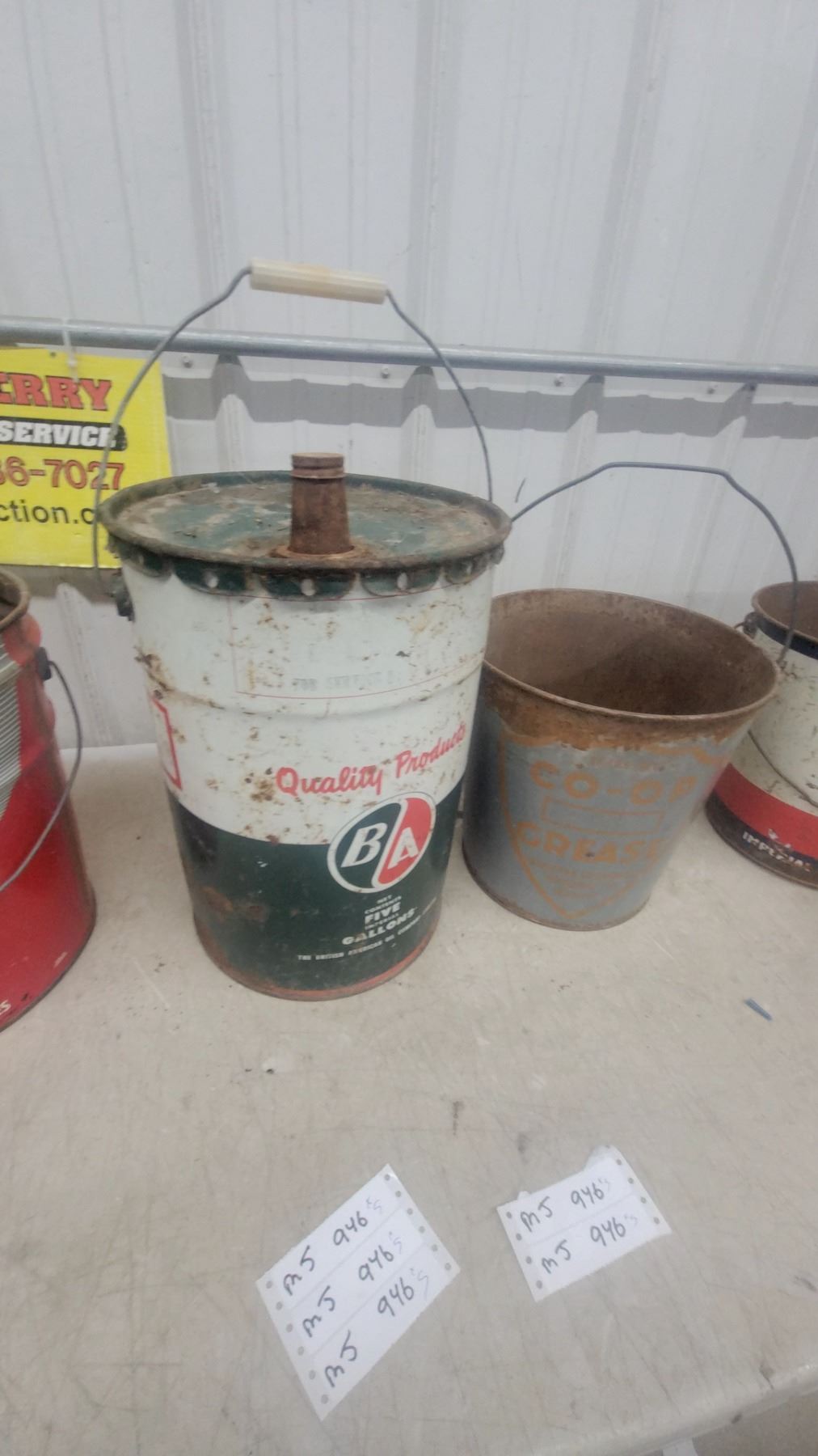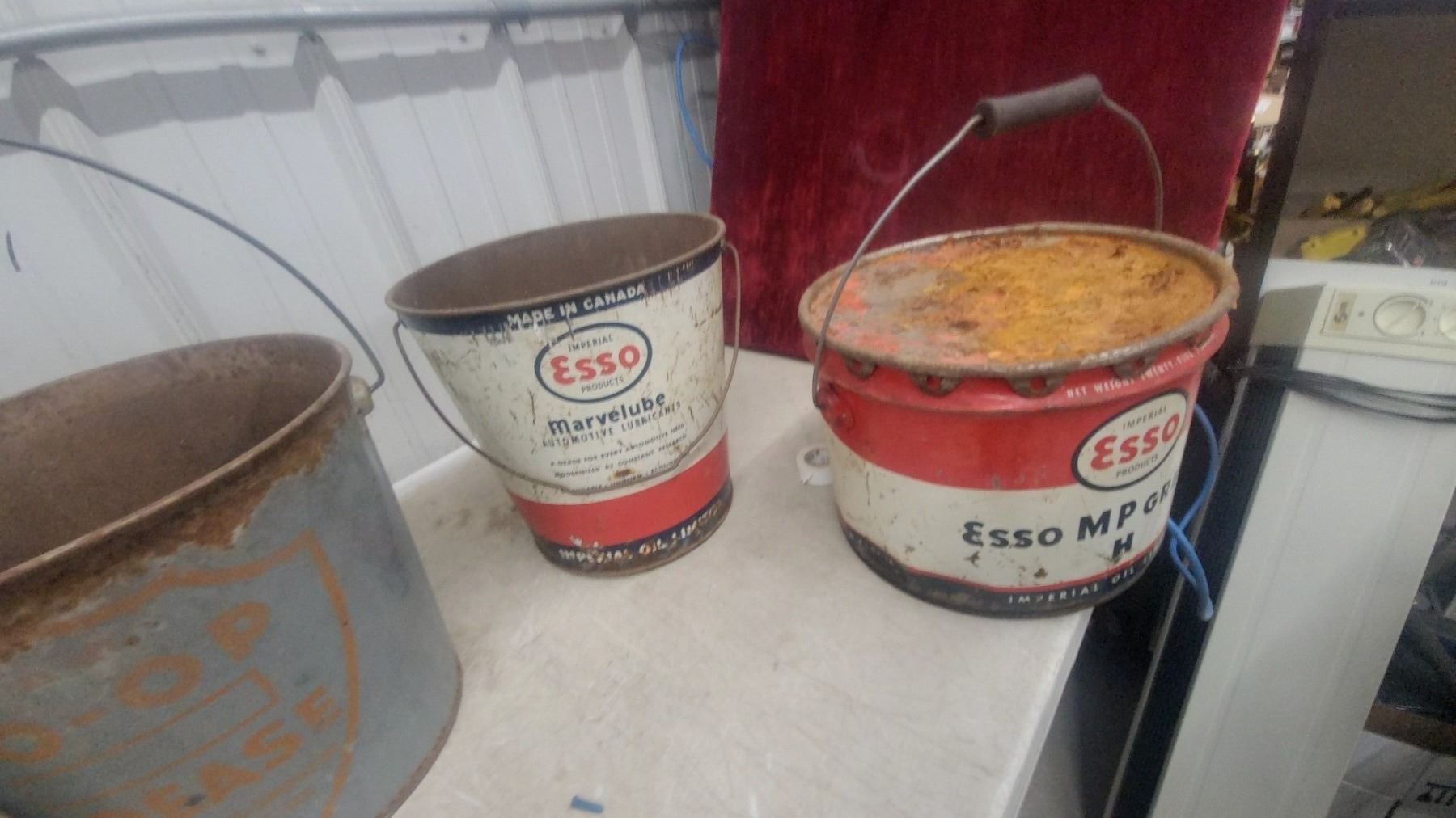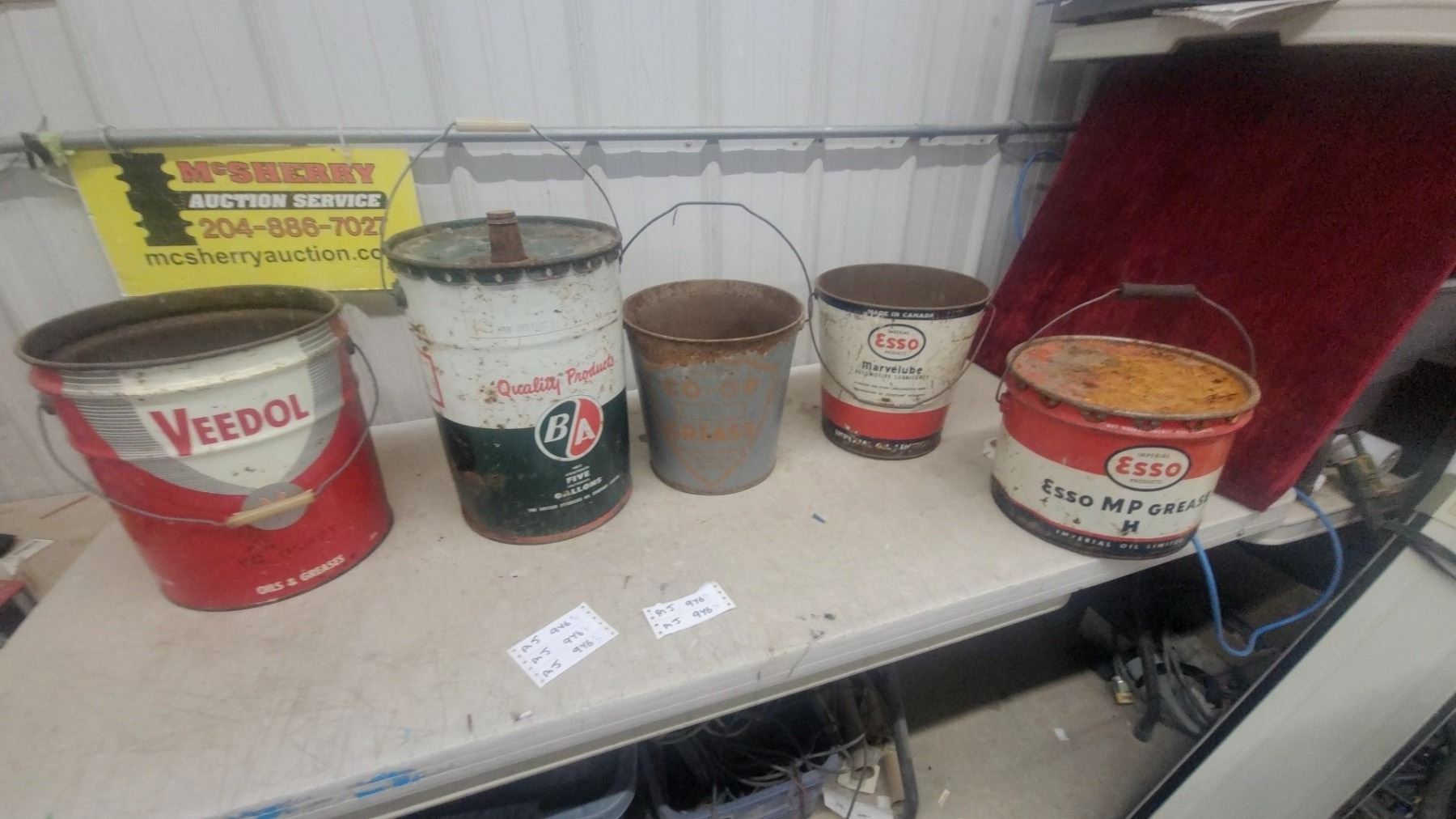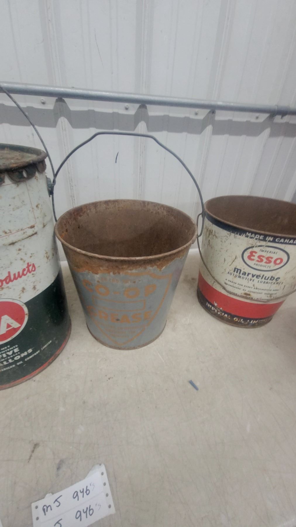 Lot 946 5 Vintage Oil and Grease Pails – Veedol, B/A, Esso MP Grease, Co-op
