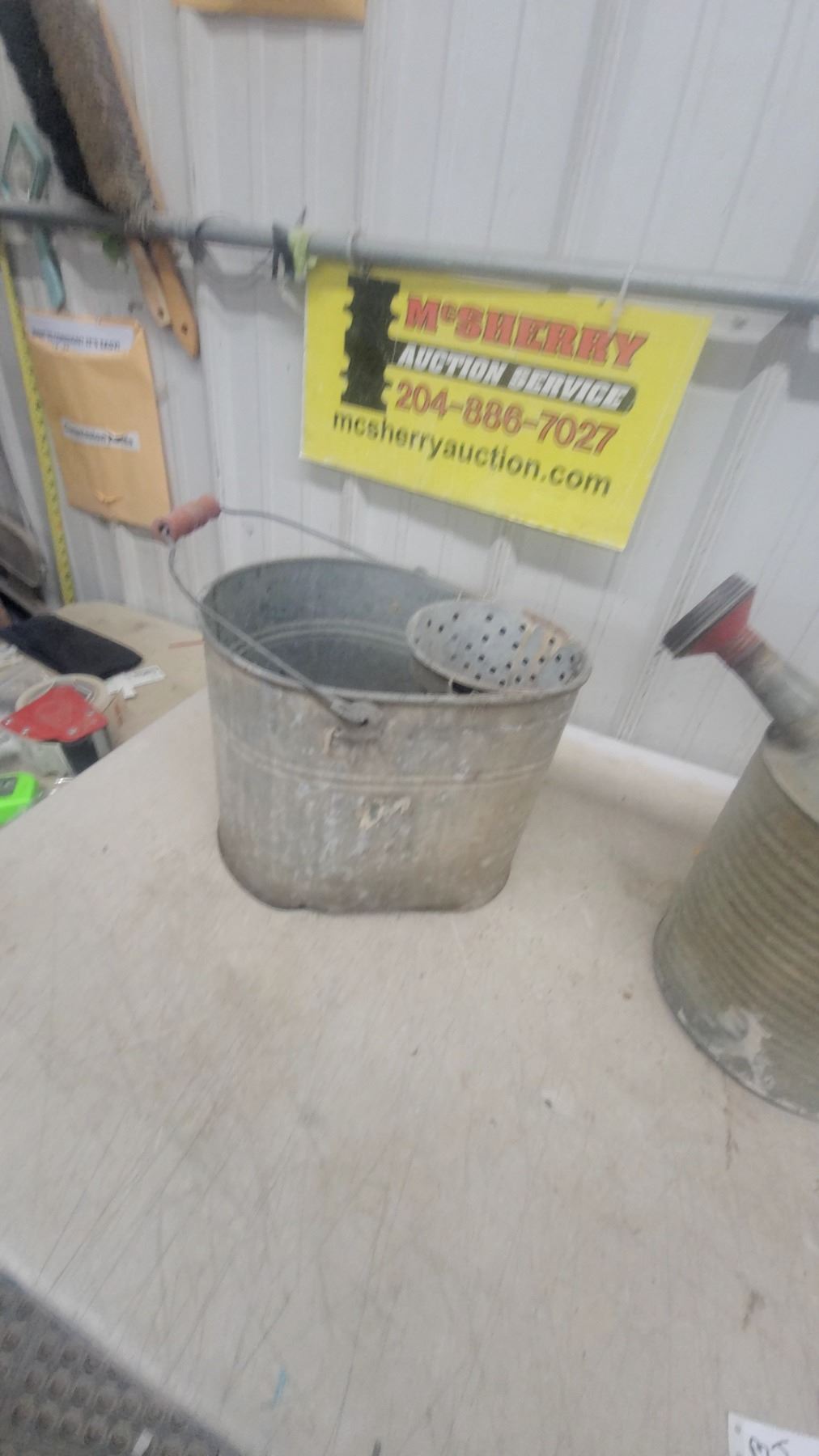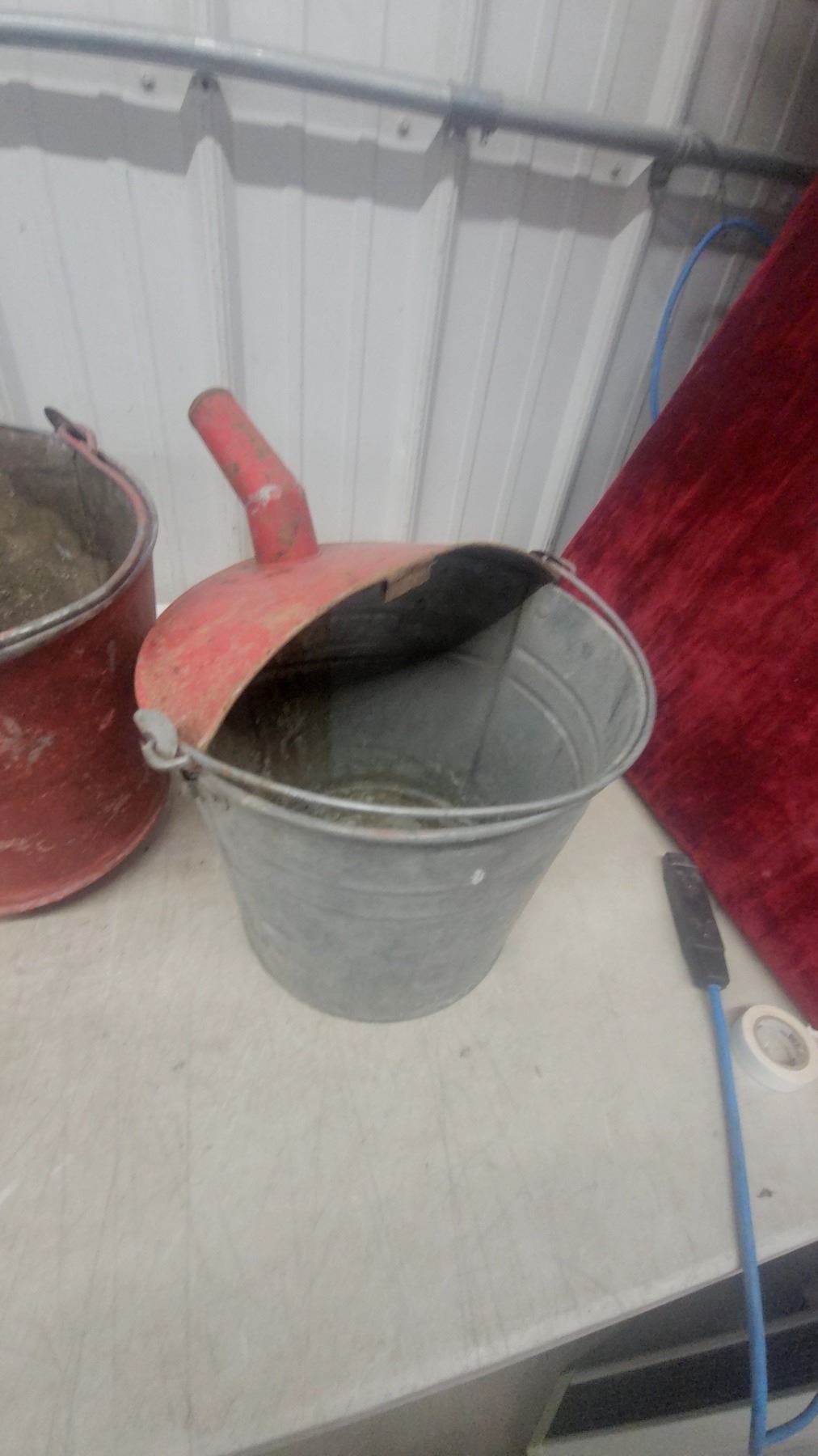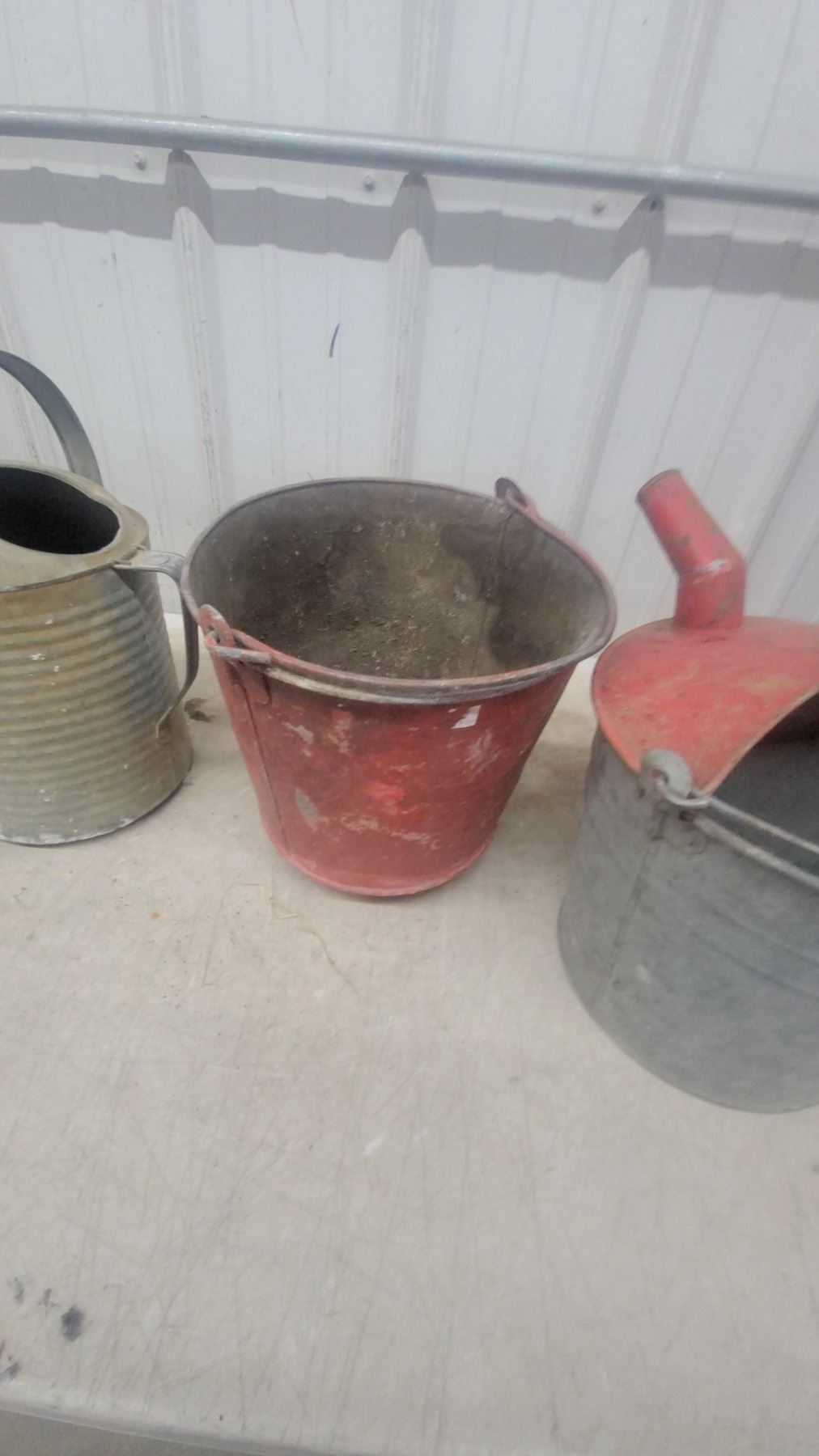 Galvanized Buckets, Watering Can, and Red Fireman Bucket Lot