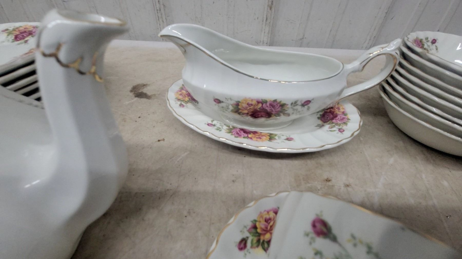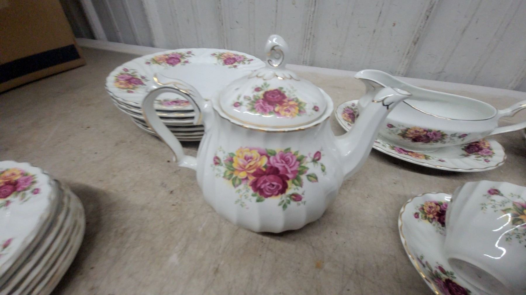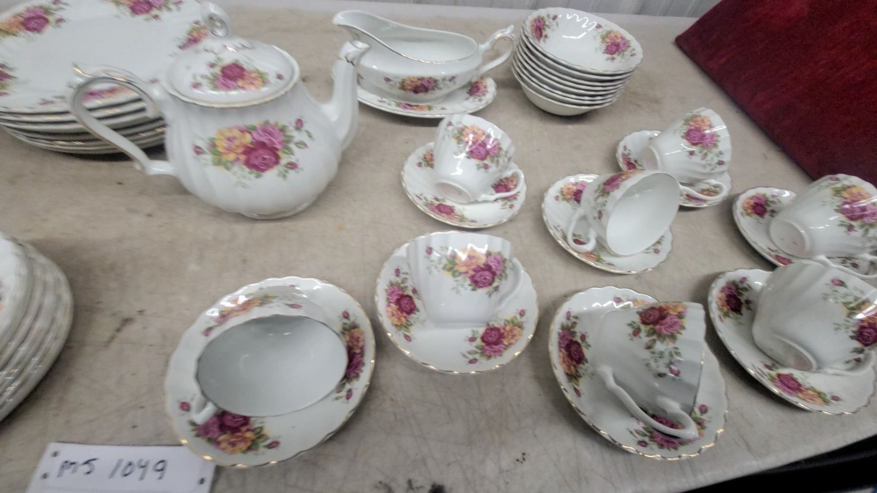 Lot 1049 Myott Rose Garden Floral China Tea Set – 43-Piece Place Setting w/ Teapot, Sugar Bowl, Creamer