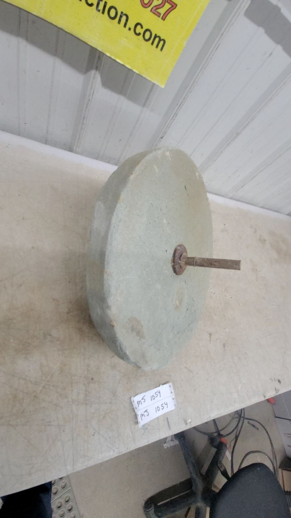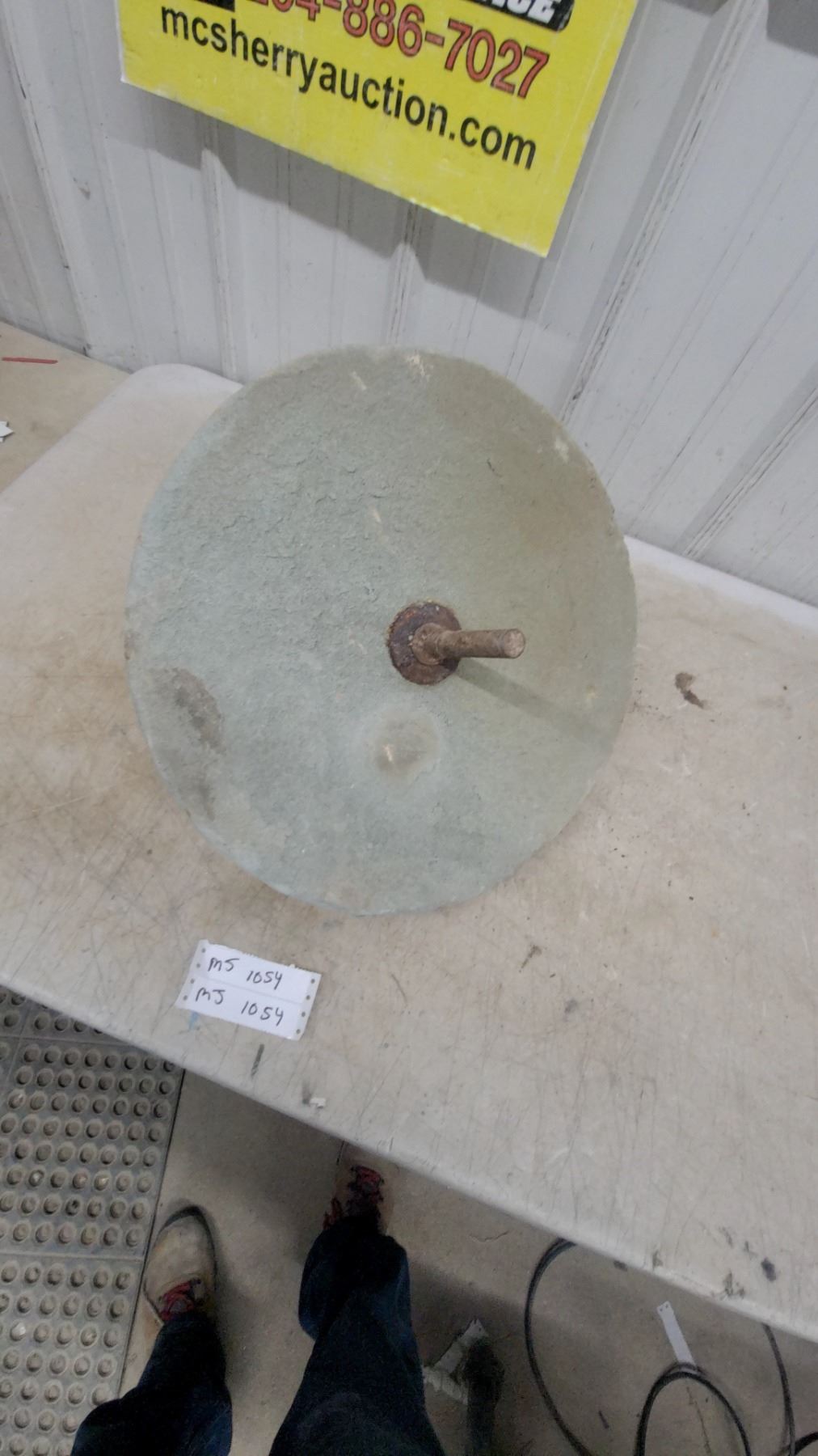 Lot 1054 Vintage Grinding Wheel w/ Metal Shaft/Arbor, 18" Diameter