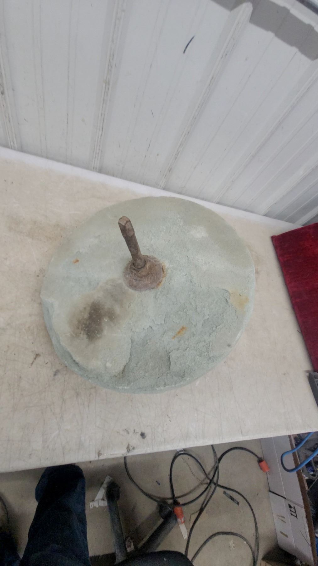 Vintage Grinding Wheel w/ Metal Shaft/Arbor, 18" Diameter