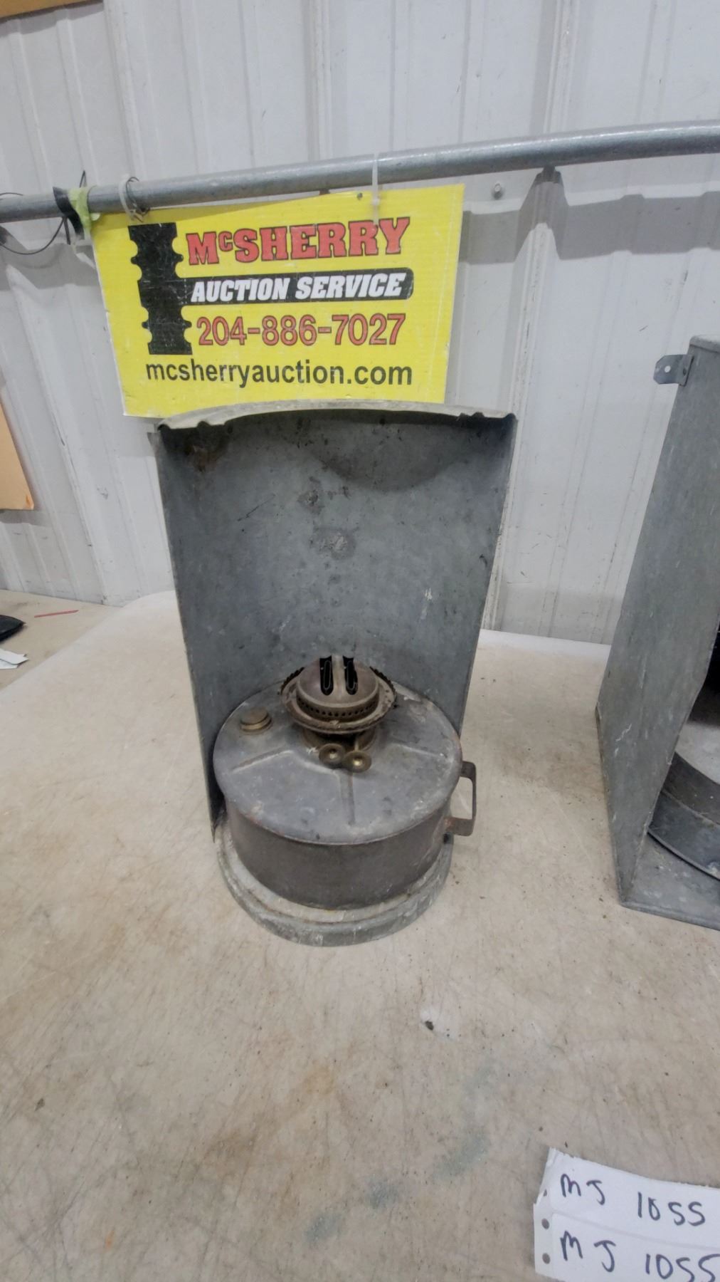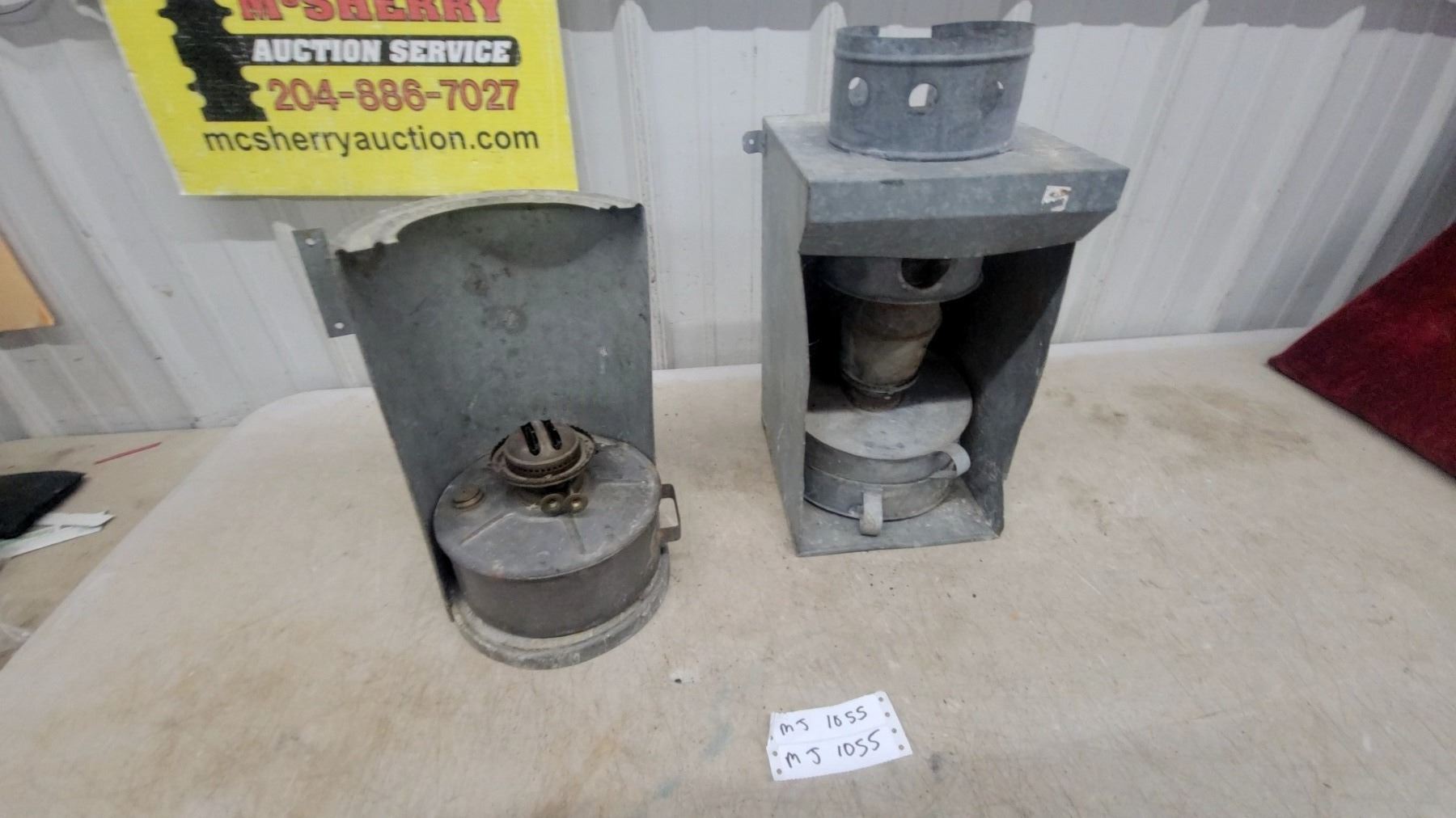 Lot 1055 2 Galvanized Metal Oil Lamp Heaters w/ Reflector Backs
