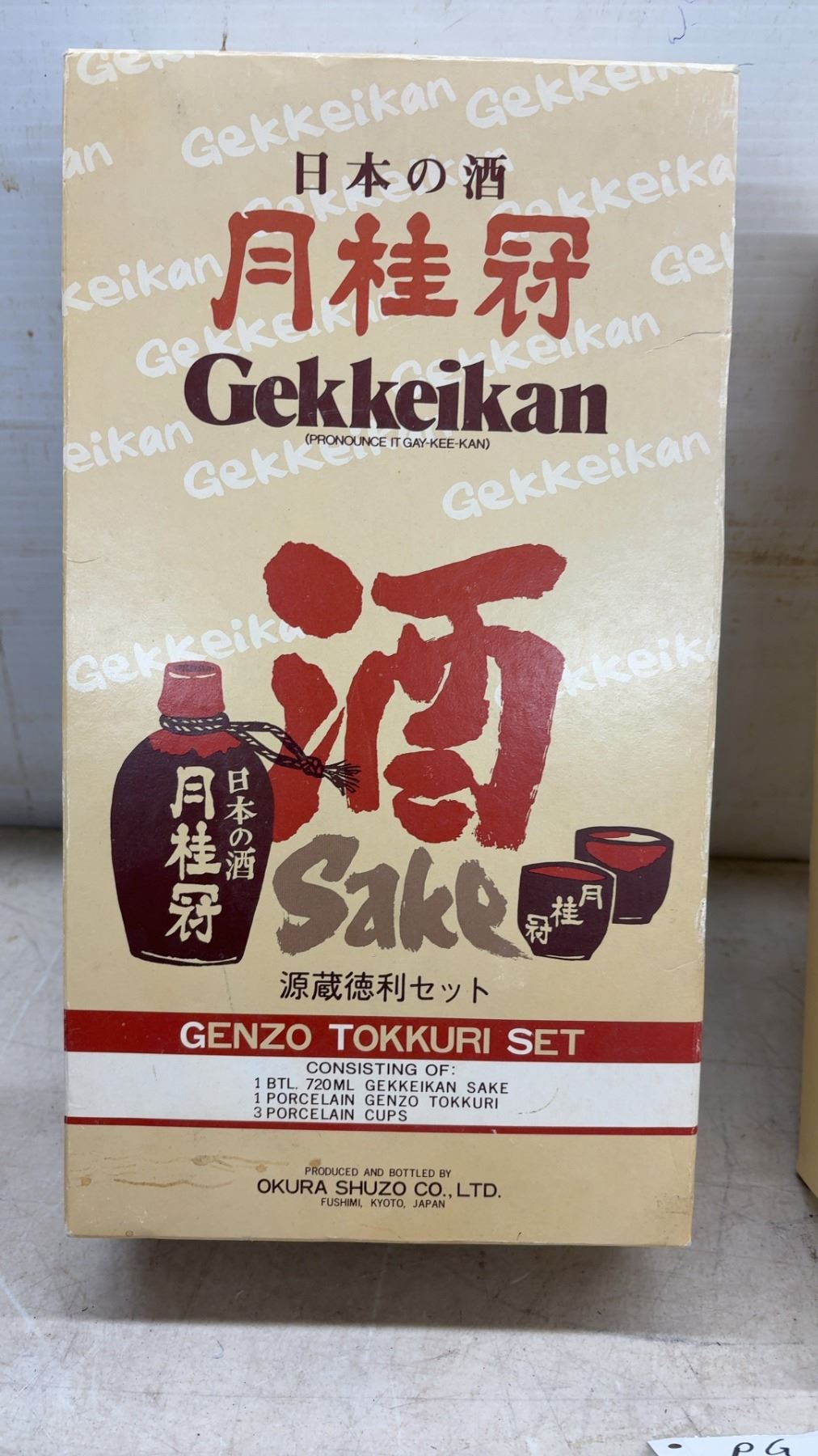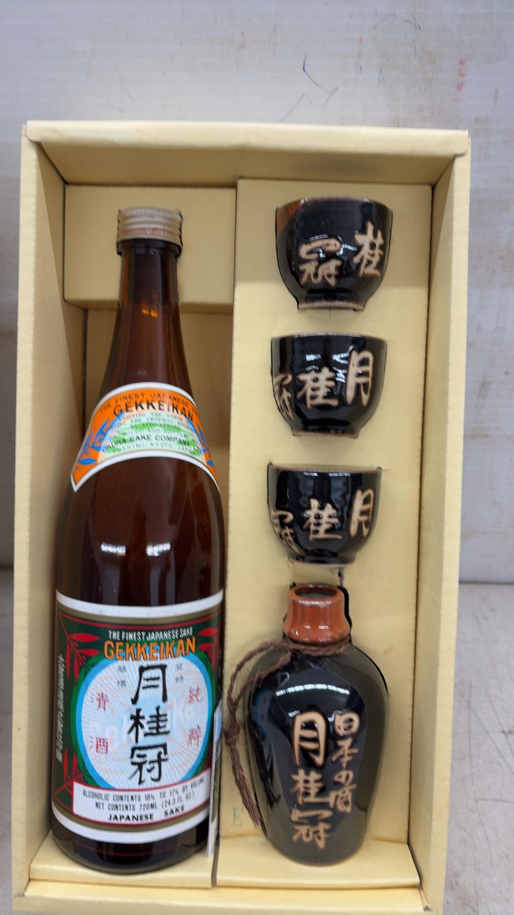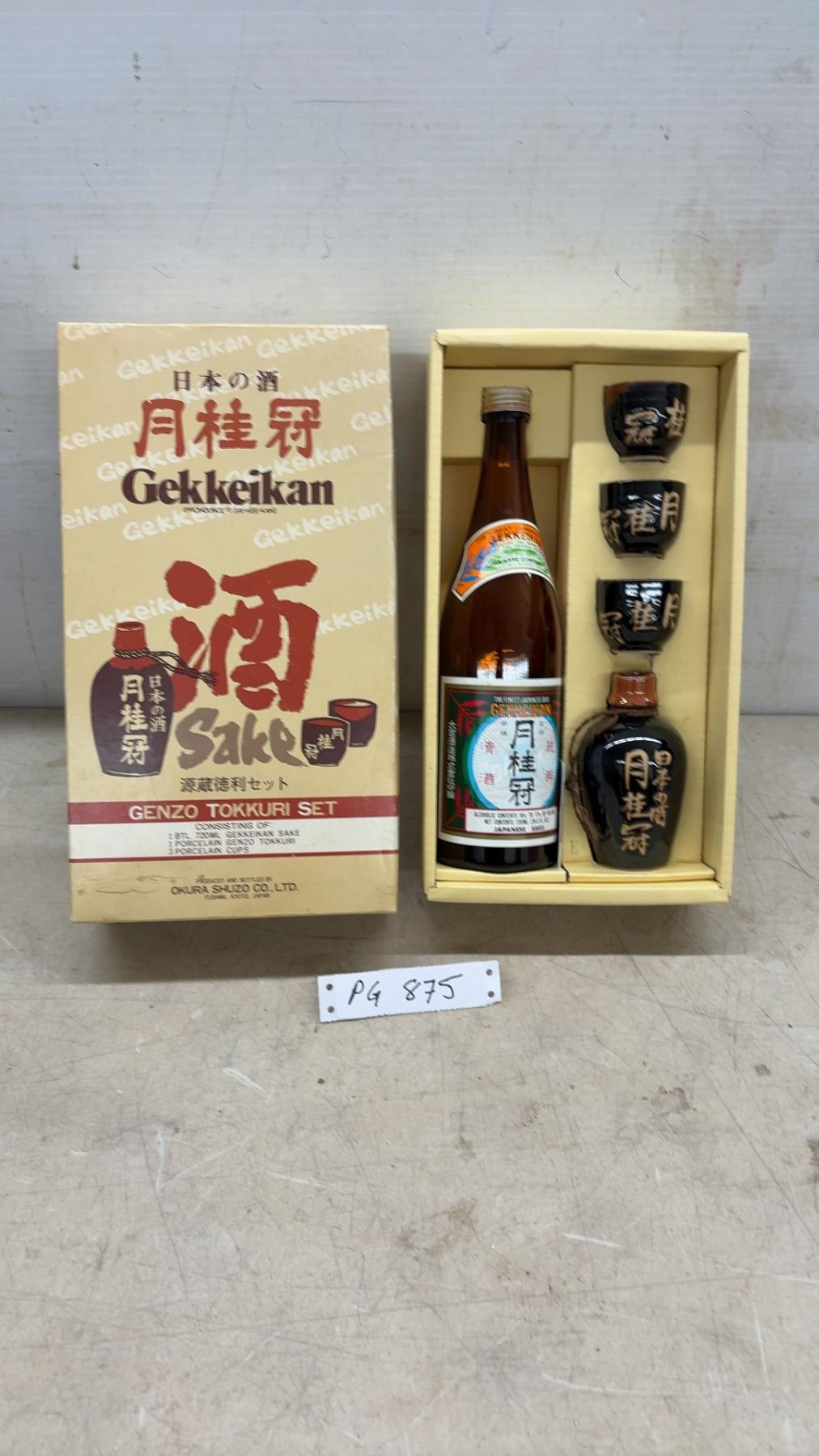 Lot 875 Gekkeikan Genzo Tokkuri Set – Japanese Sake w/ Porcelain Tokkuri and 3 Cups