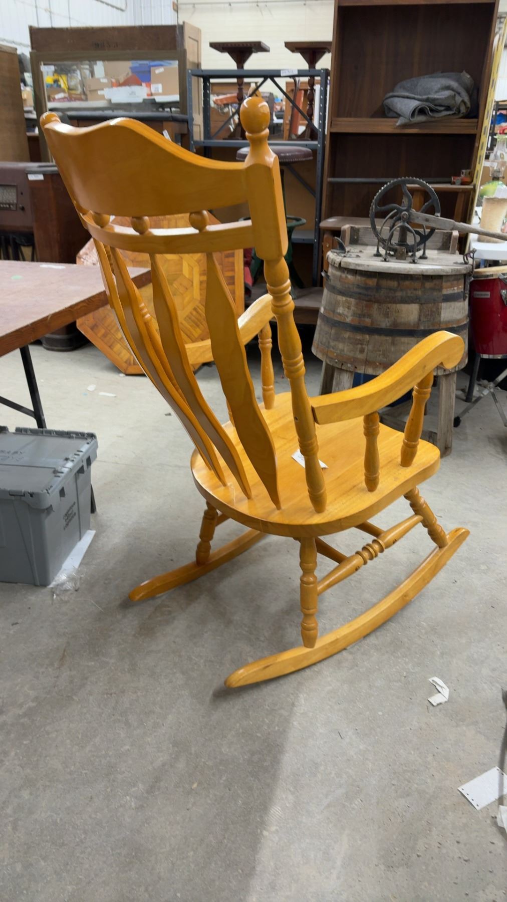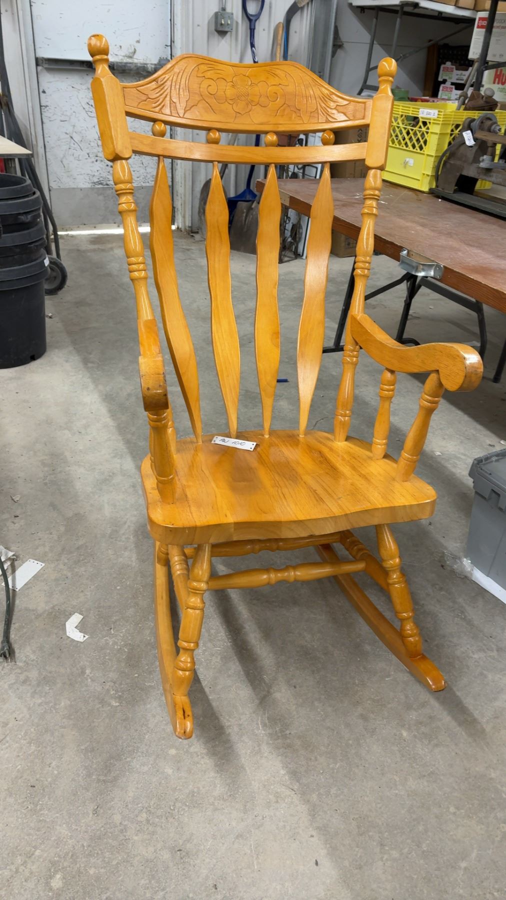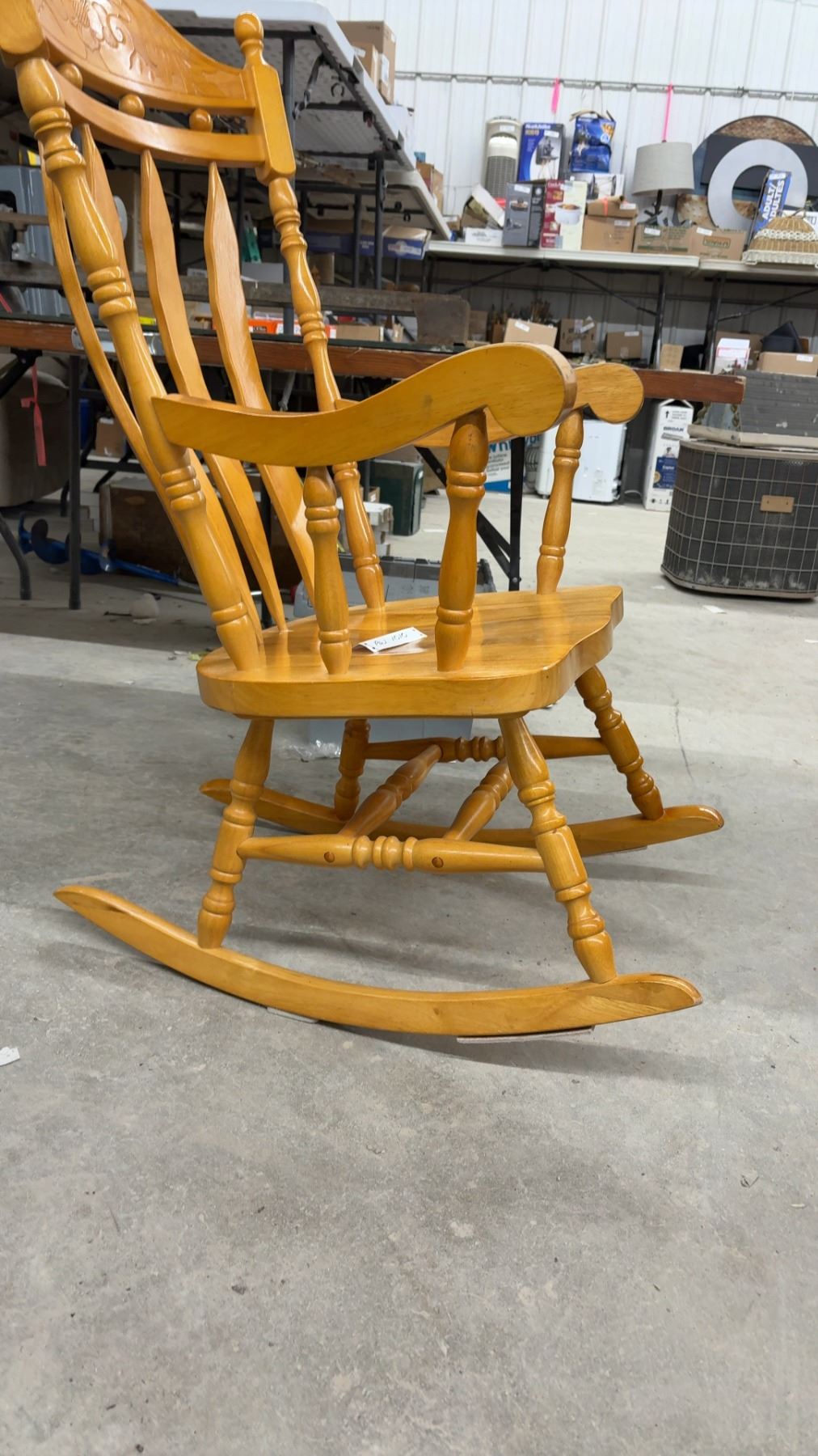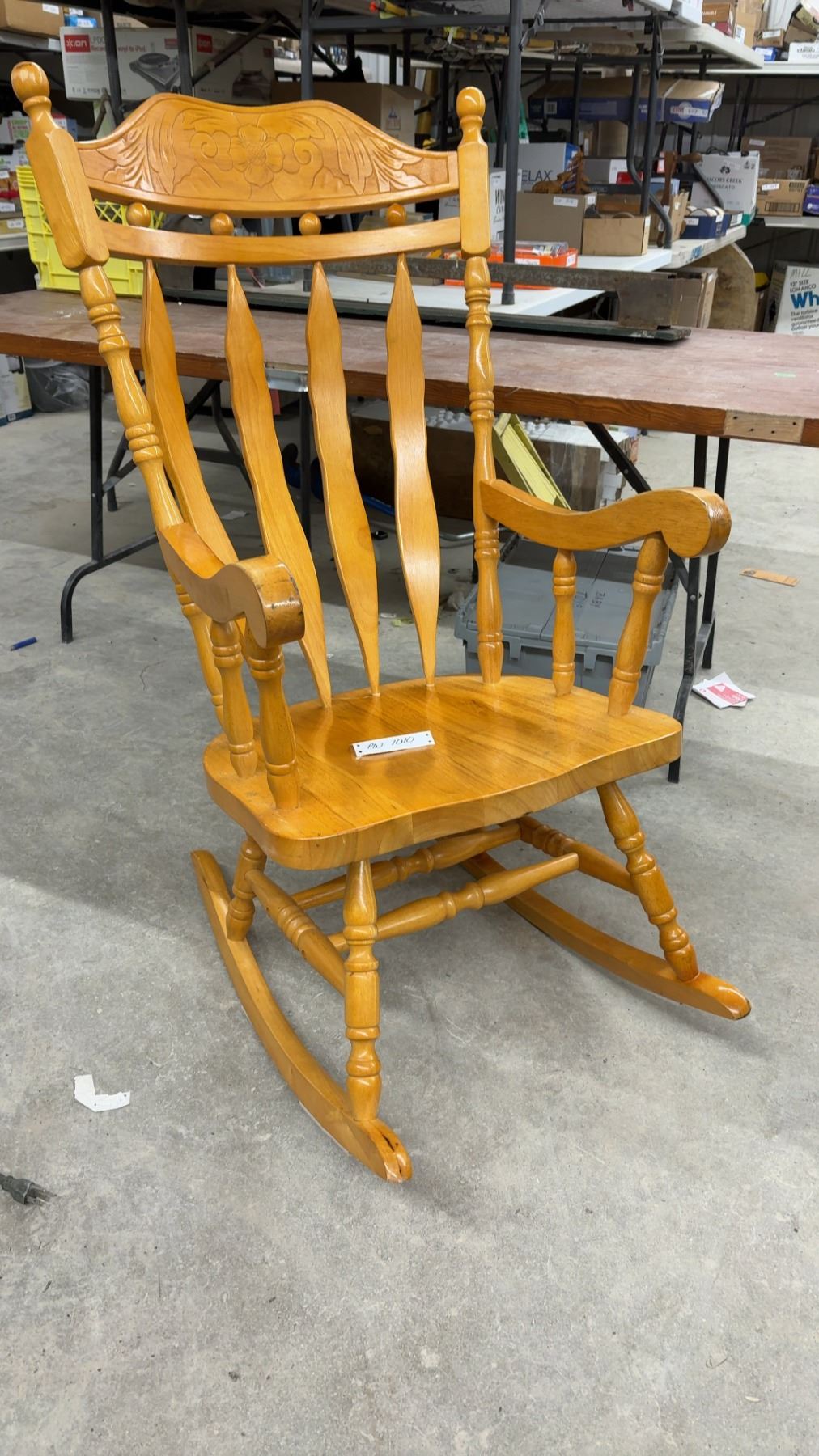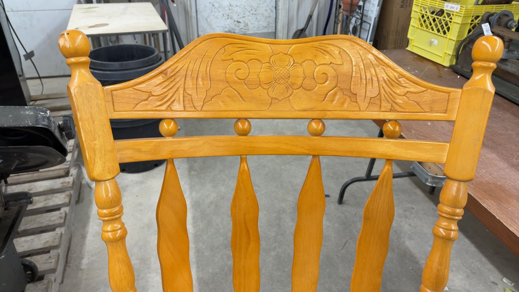 Lot 1010 Wooden Rocking Chair w/ Carved Floral Back and Spindle Details