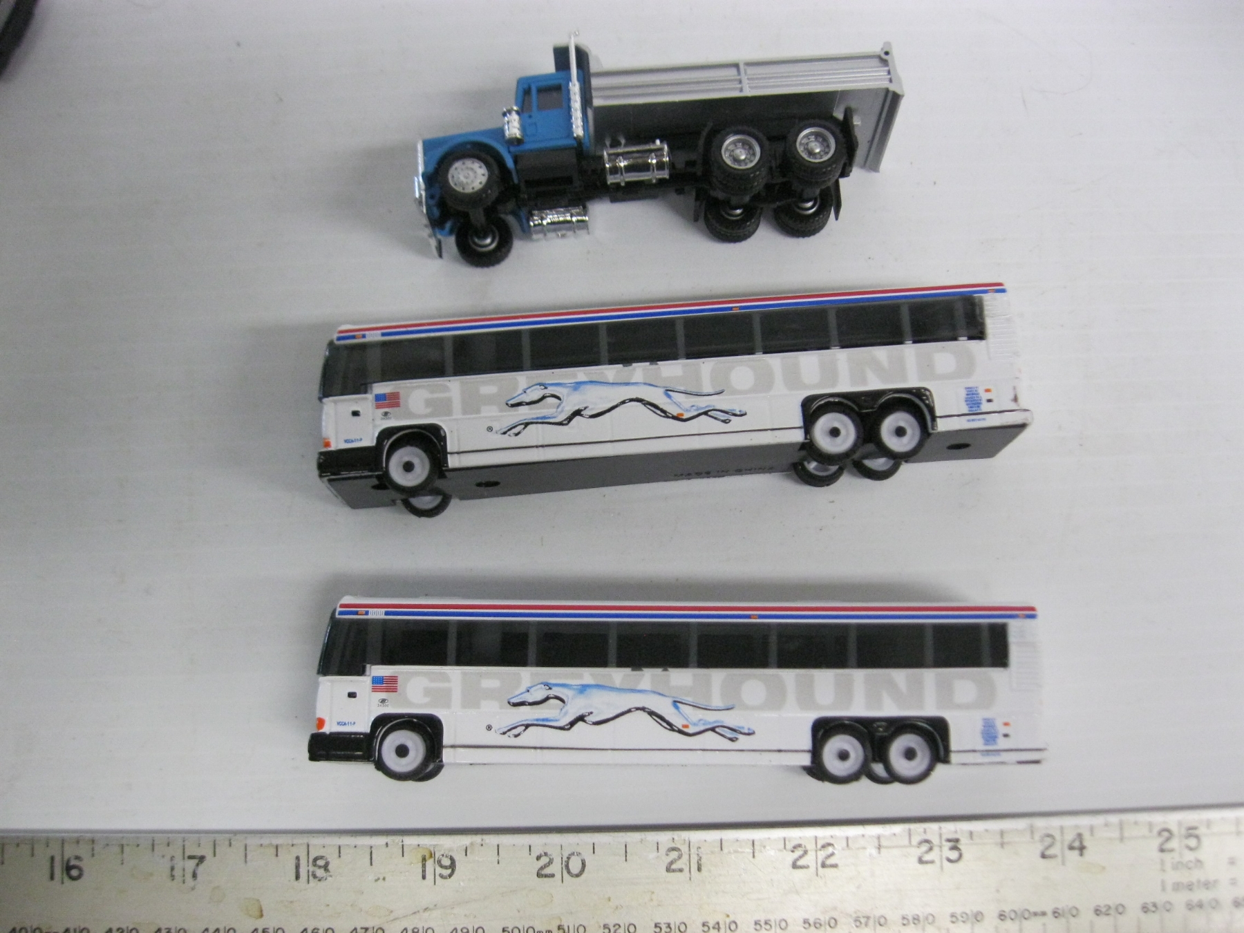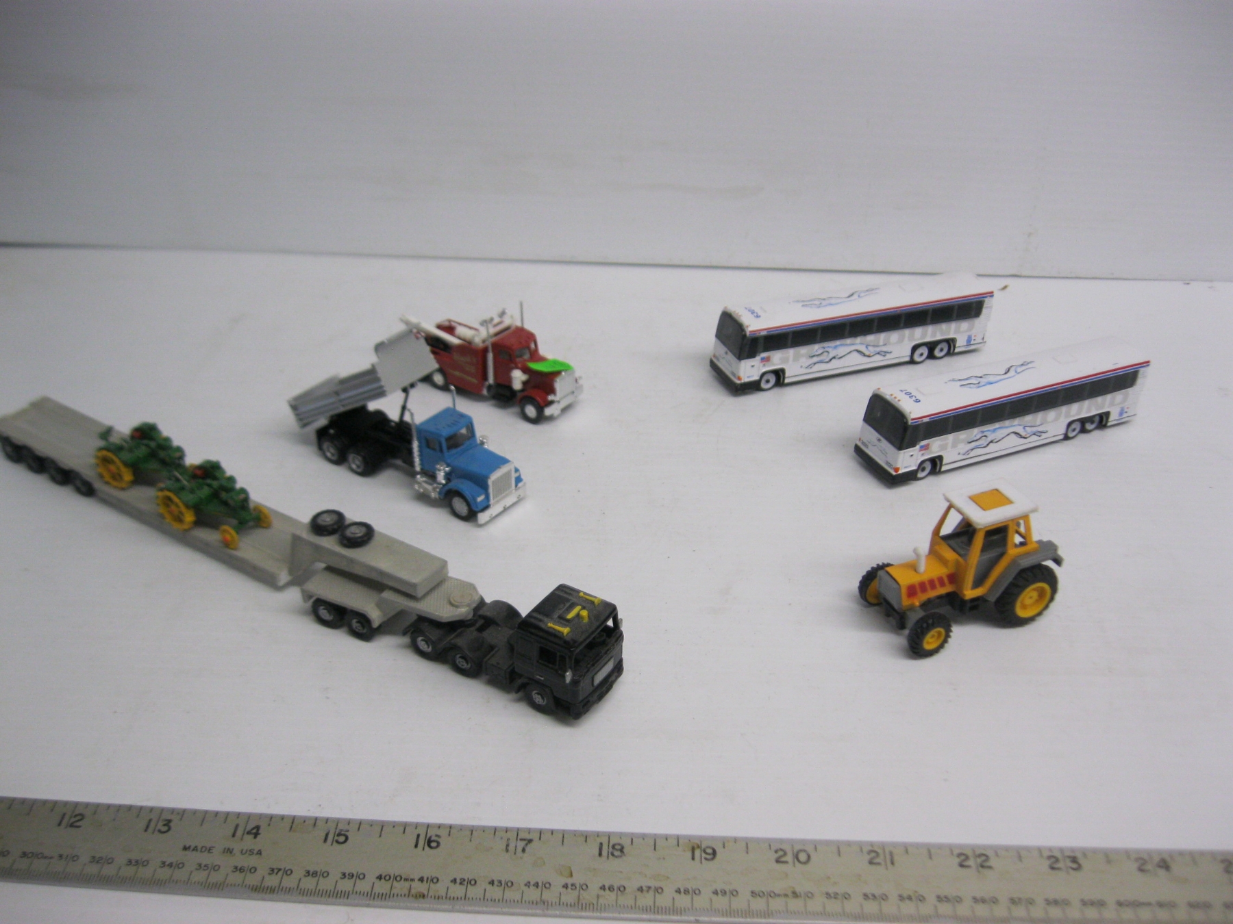 Lot 104 6 HO SCALE BUSES, SEMI TRACTOR, DUMP TRUCK