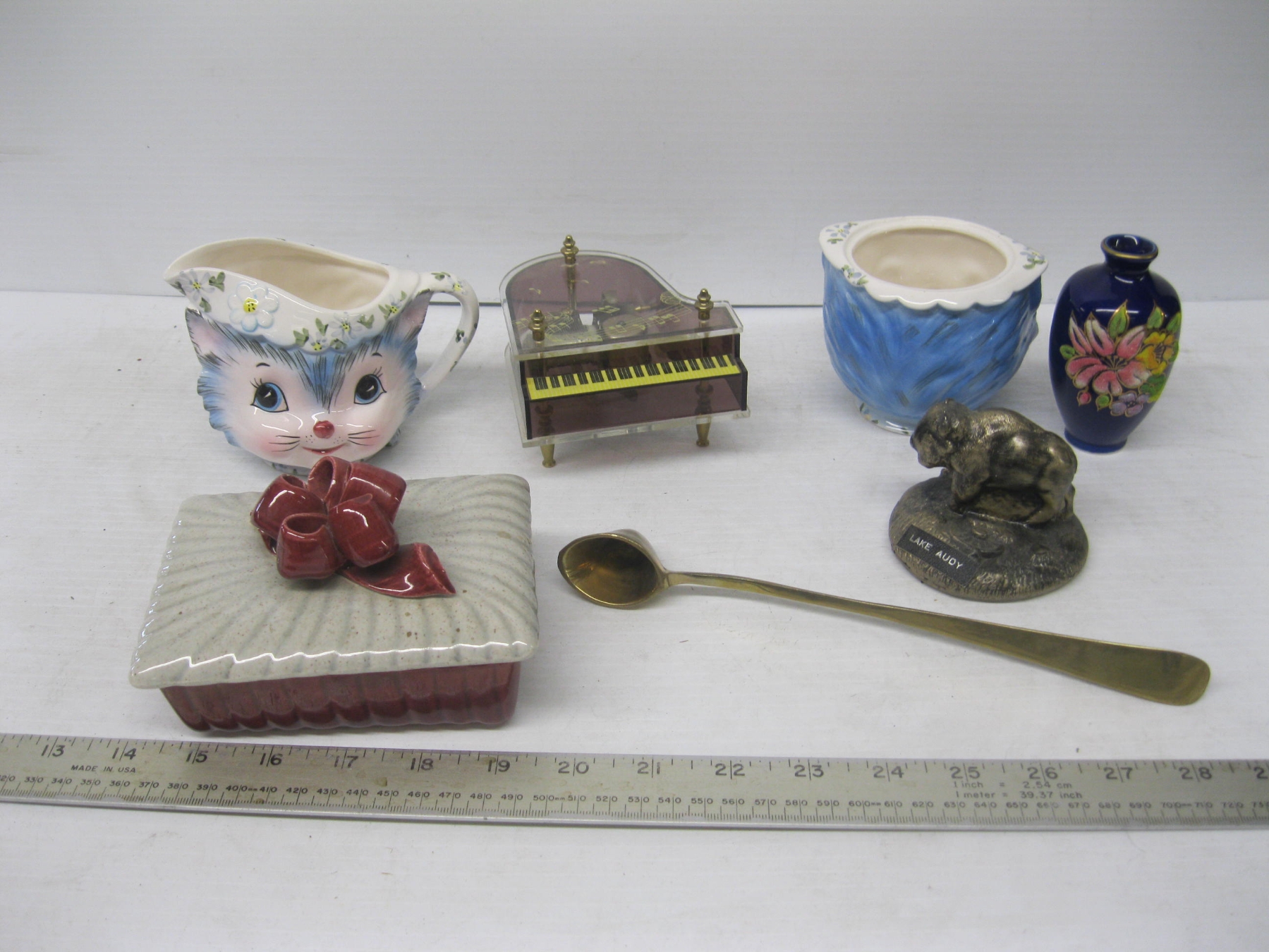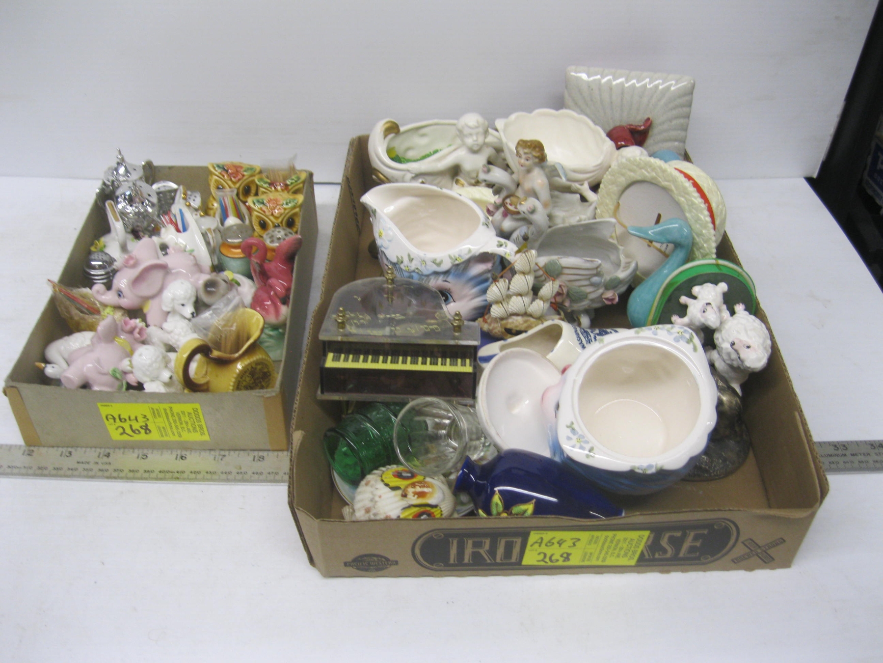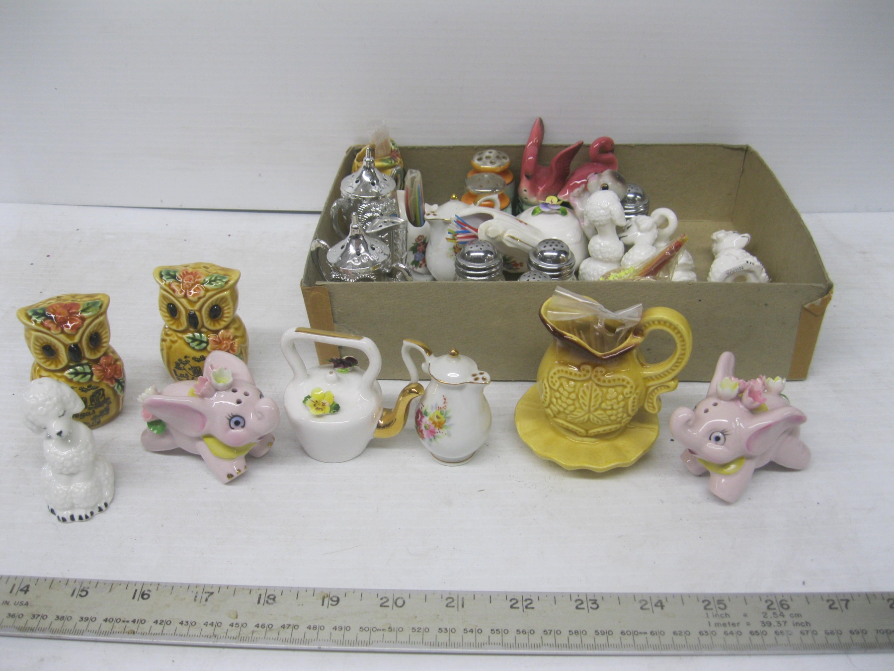 Lot 268 2 BOXES OF MISC. SM. COLLECTABLES, FIGURINES, S&P SHAKERS, ETC.