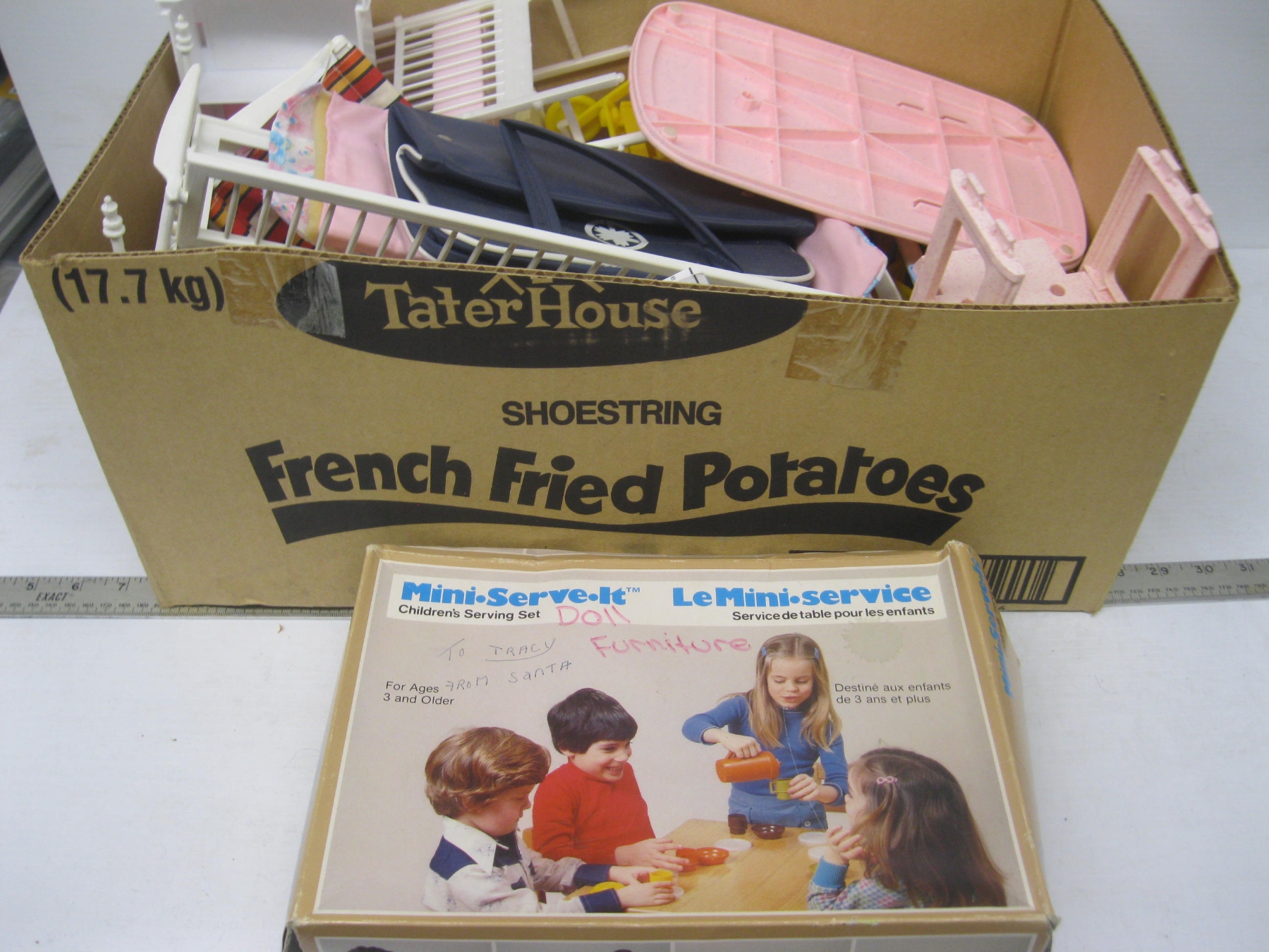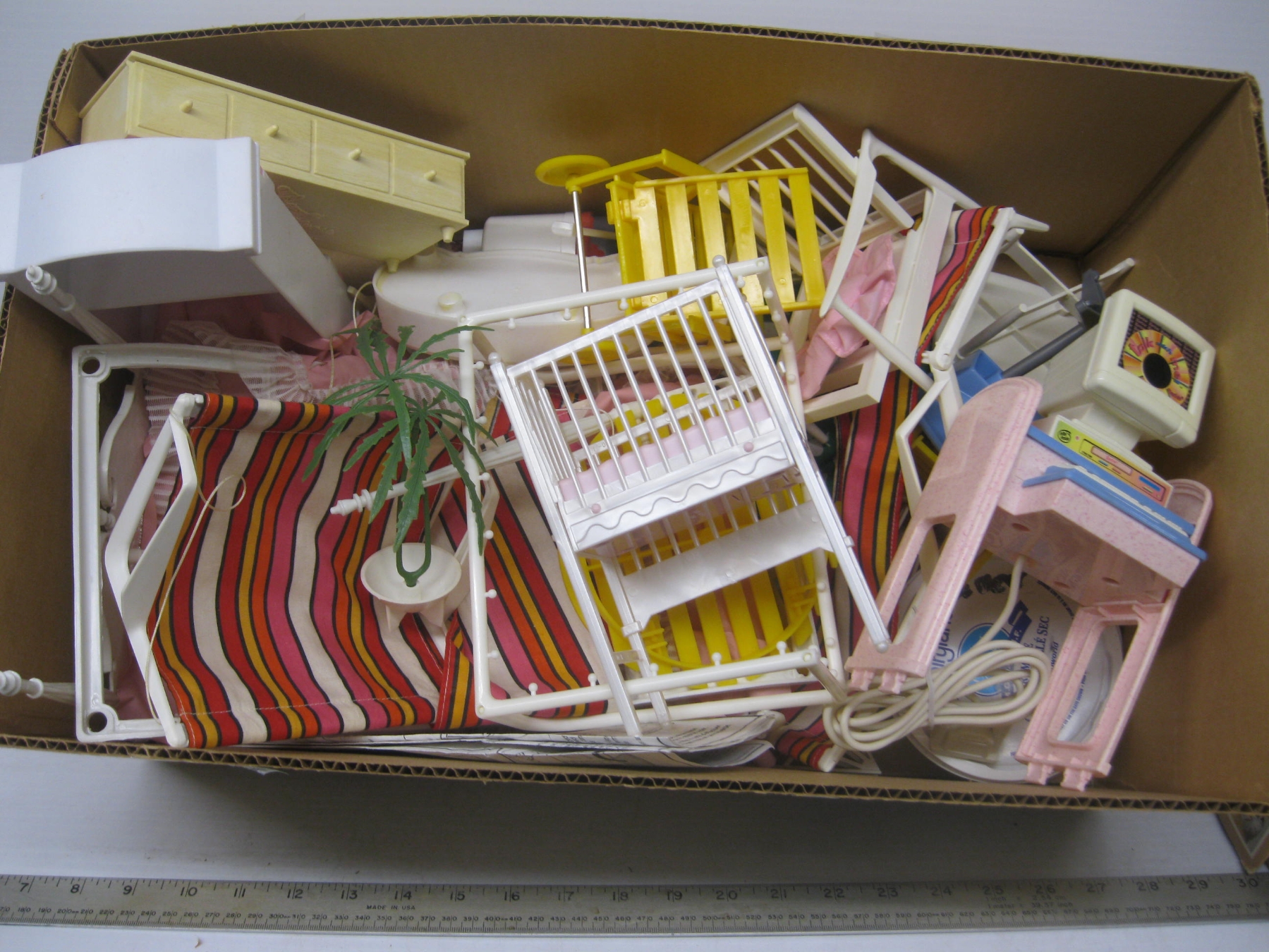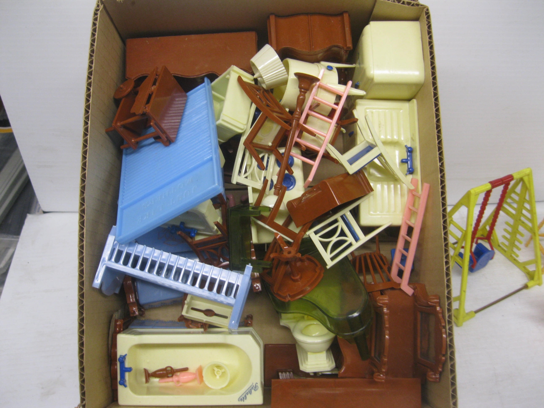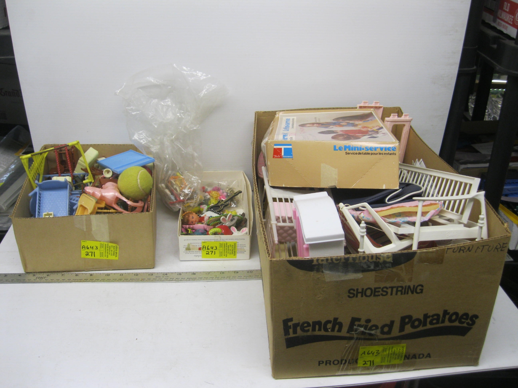 Lot 271 3 BOXES OF MISC. DOLLHOUSE FURNITURE, FIGURINES, COLLECTABLES, ETC.