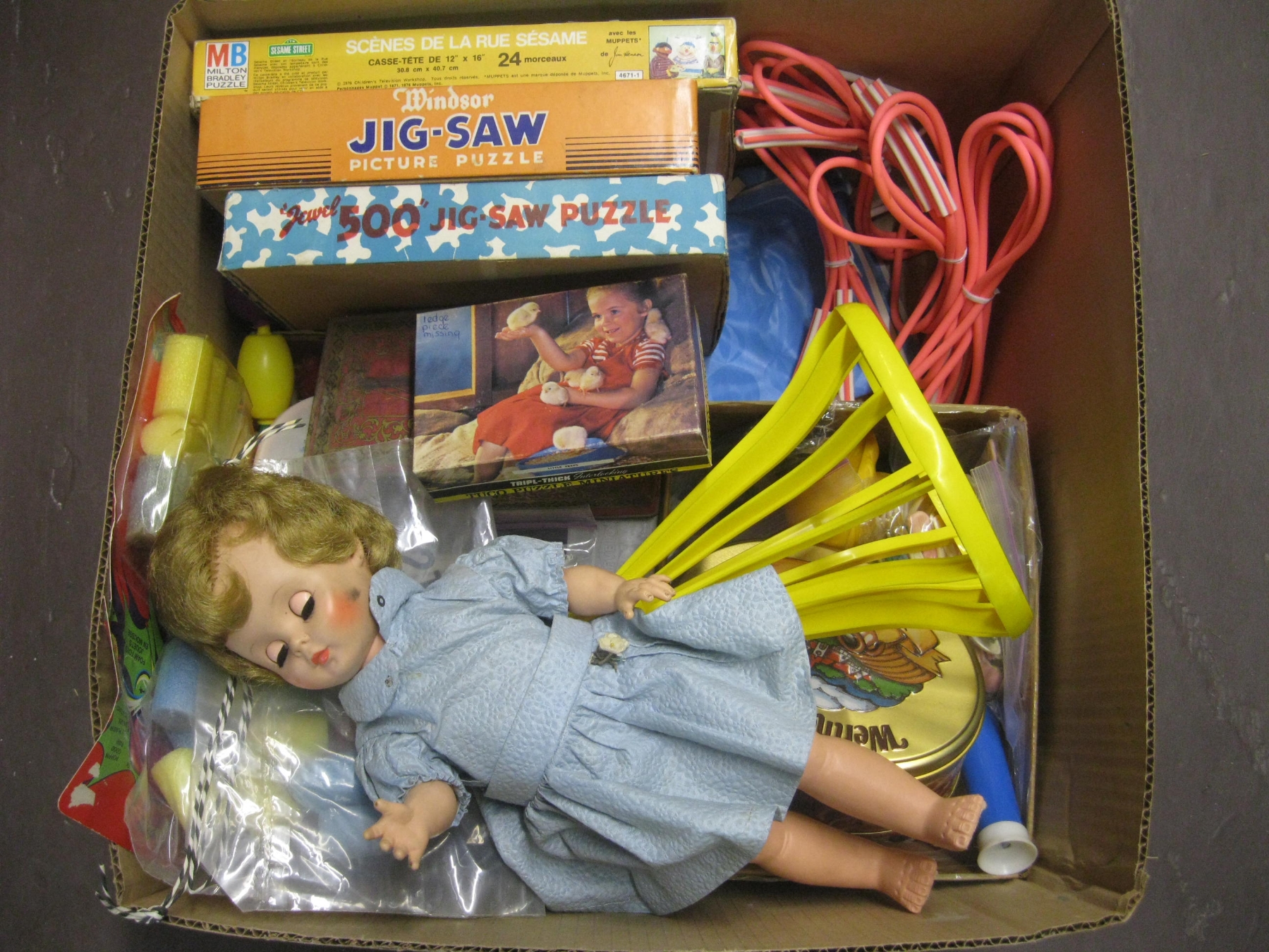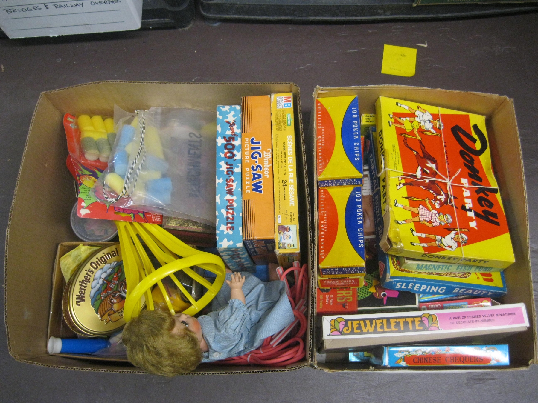 Lot 295 2 BOXES OF MISC. PUZZLES, GAMES, DOLLS, ETC.