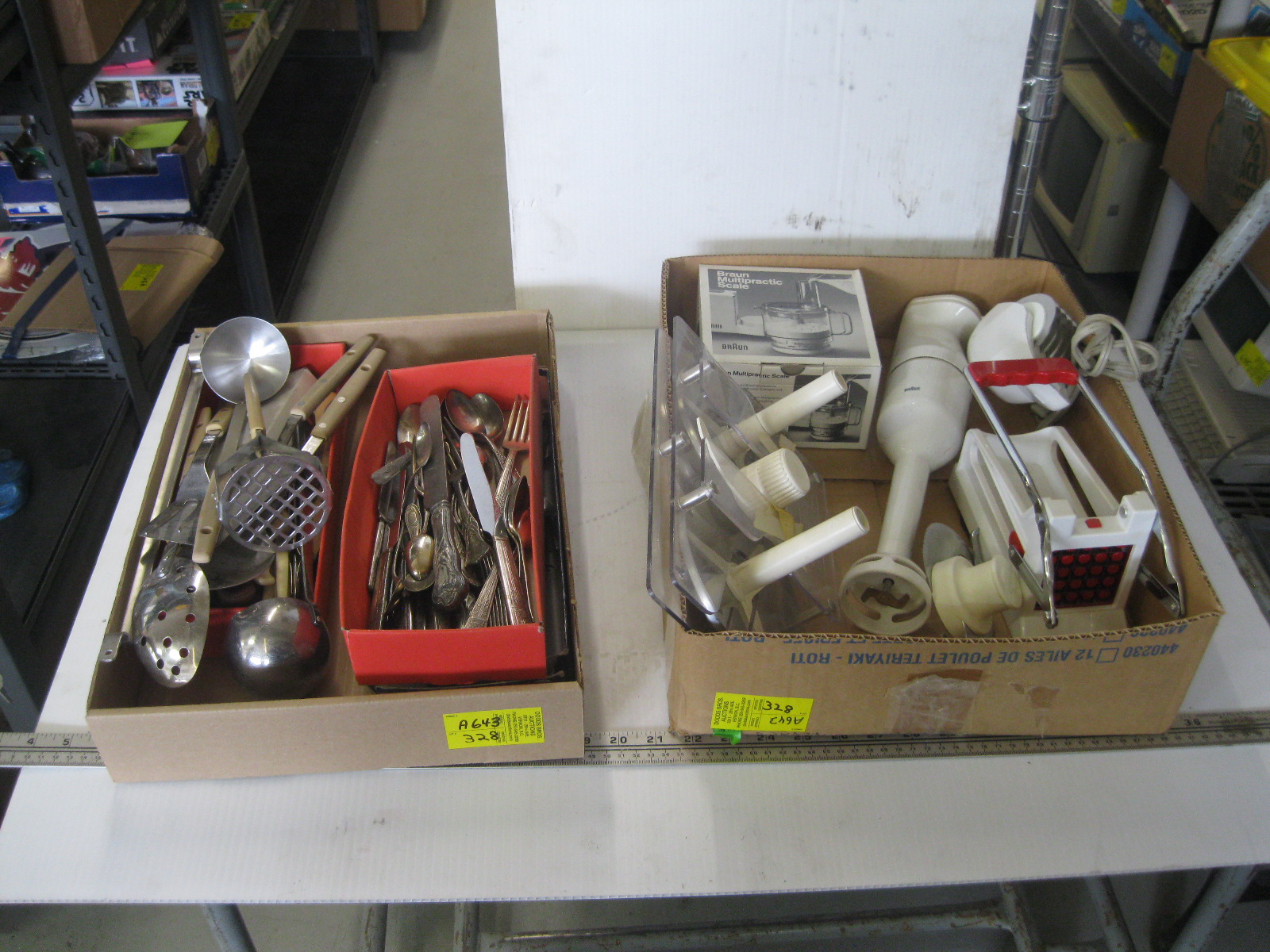 Lot 328 2 BOXES OF MISC. UTENSILS, MIXERS, ETC.