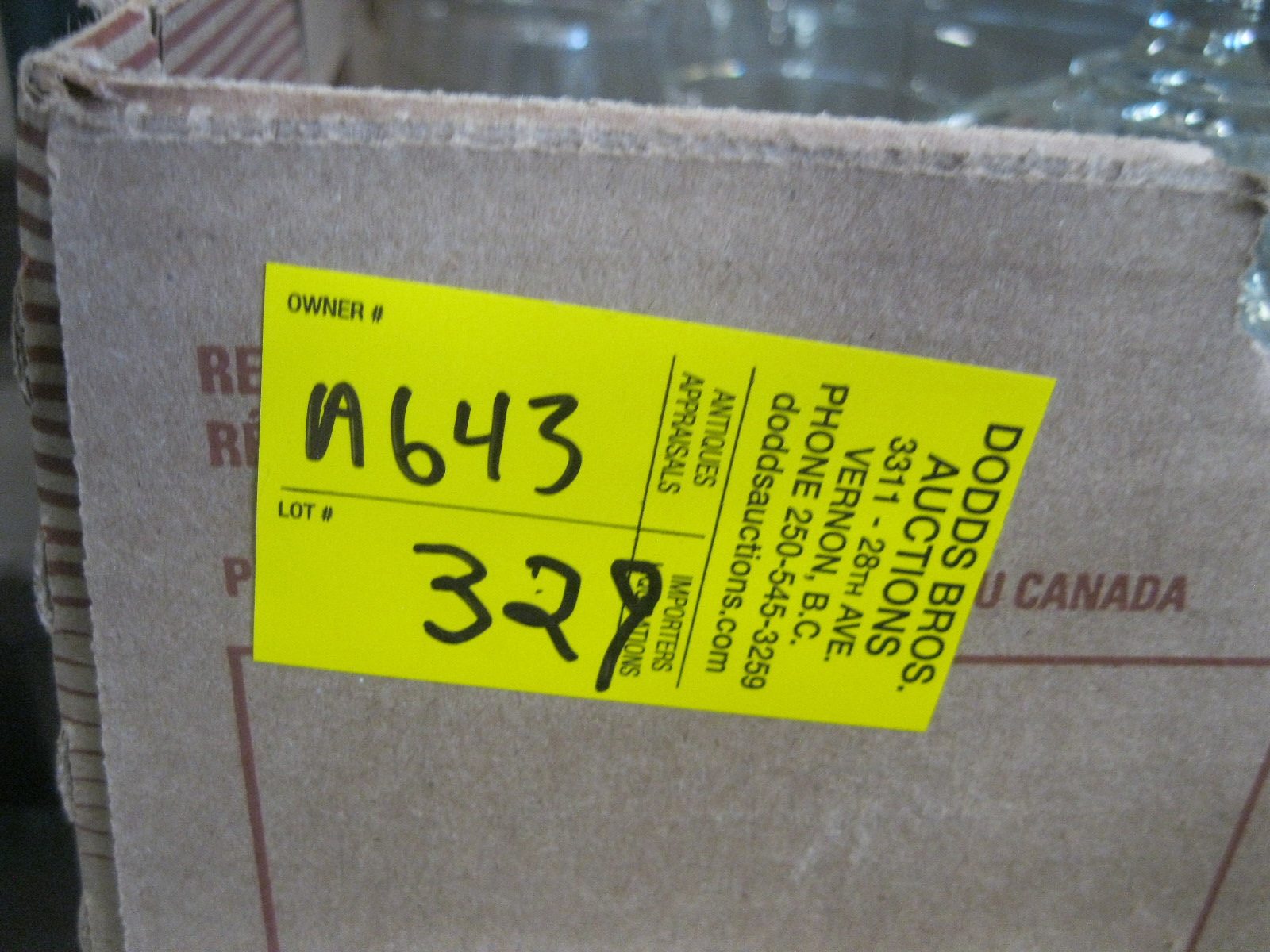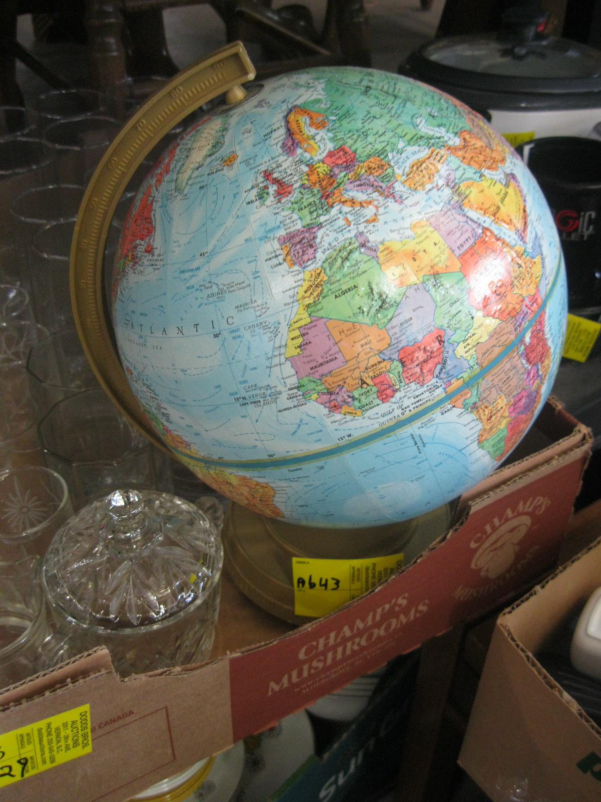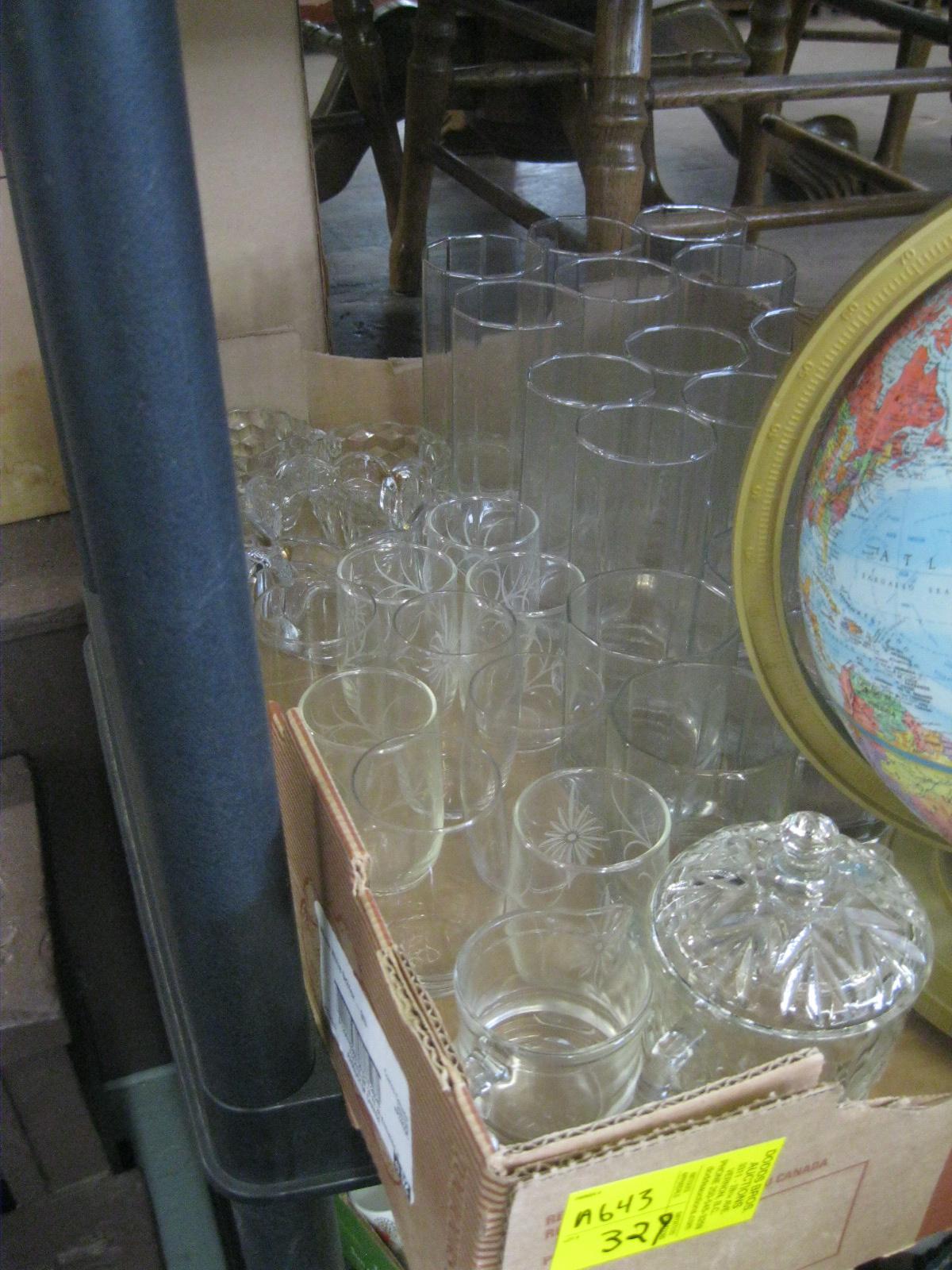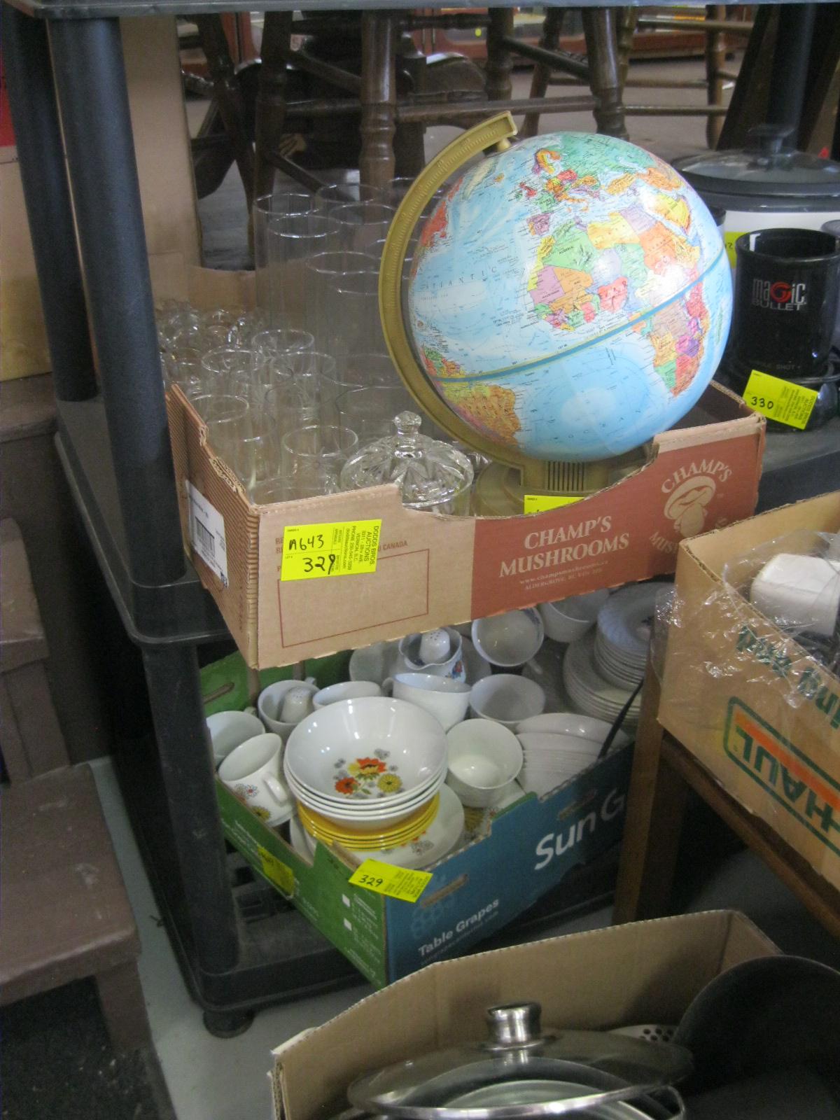 Lot 329 GLOBE & LOT OF GLASSWARE & BOX OF ASST. DISHWARE